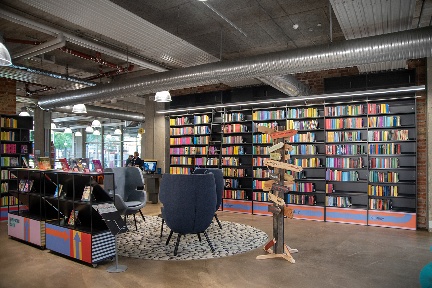 Moai lijkt op de massieve gezichtssculpturen op Paaseiland. De zetel en stoelen hebben een bijzonder en persoonlijk ontwerp dat tegelijkertijd complimenteert en contrasteert met ander bibliotheekmeubilair.