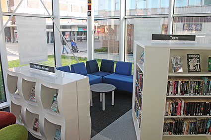 De uitdaging voor ons zusterbedrijf Thedesignconcept was het creëren van een lichte, open, gastvrije en state-of-the-art omgeving die de aspiraties van zowel de bibliotheekservice als het dienstencentrum van het stadskantoor zou omvatten. Thedesignconcept wilde ervoor zorgen dat het publiek aangemoedigd werd om te lezen door de dienstverlenende faciliteiten van het stadskantoor in de ruimte van de bibliotheek te integreren, ook al zijn zij geen traditionele bibliotheekgebruikers.