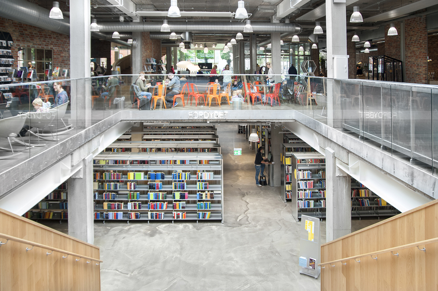 Het belangrijkste doel van de uitgebreide en indrukwekkende renovatie van het oude magazijn naar een moderne bibliotheek is, om een gemeenschappelijk cultuurcentrum te maken voor de burgers. En dat is gelukt! Sinds de opening van de bibliotheek in augustus 2014, zijn er al meer dan 375.000 bezoekers langs geweest- aanzienlijk meer dan dat de bibliotheek had op zijn vorige locatie.