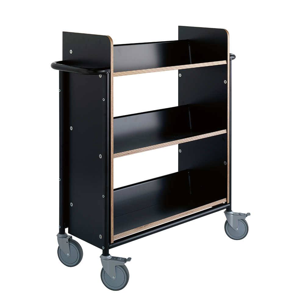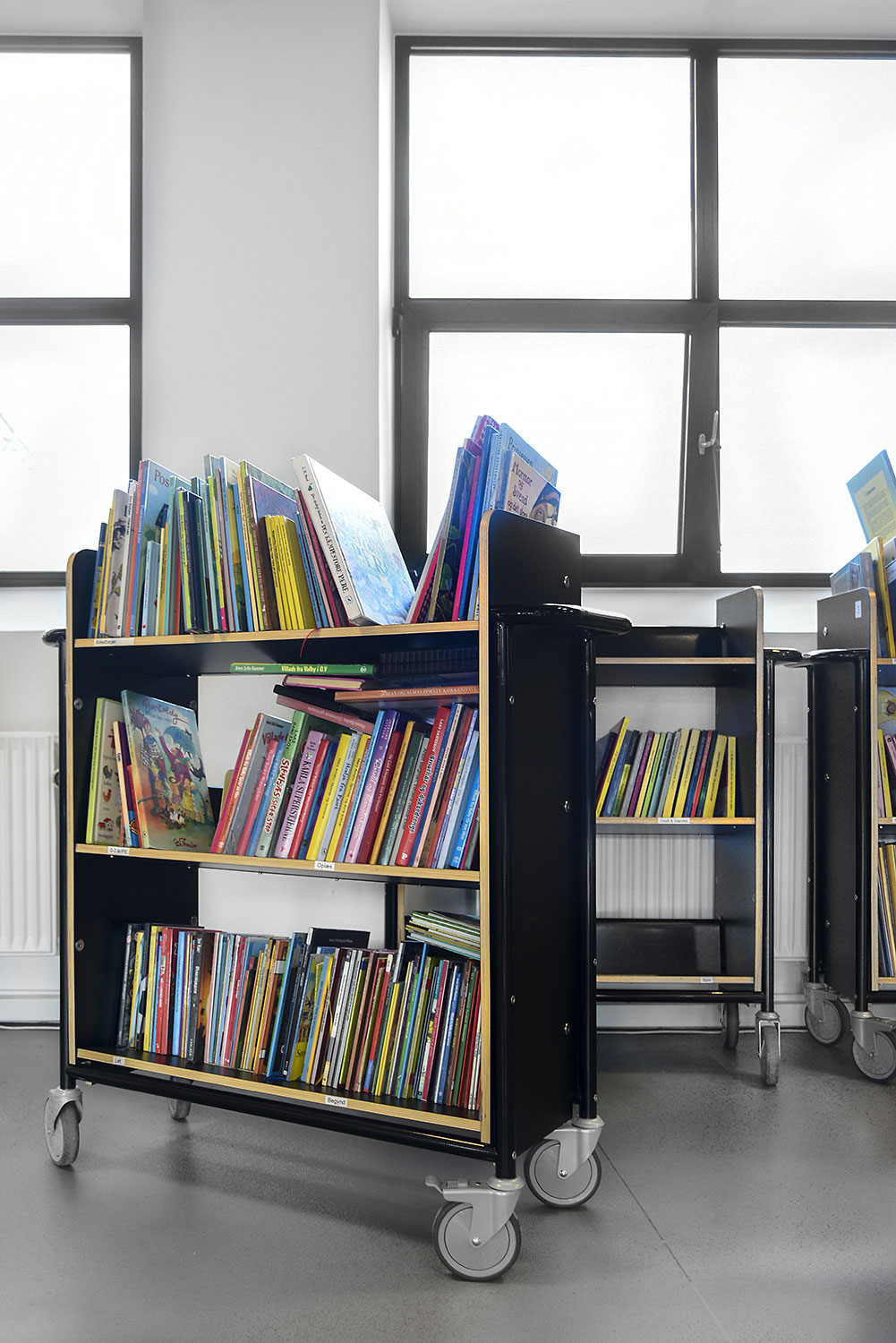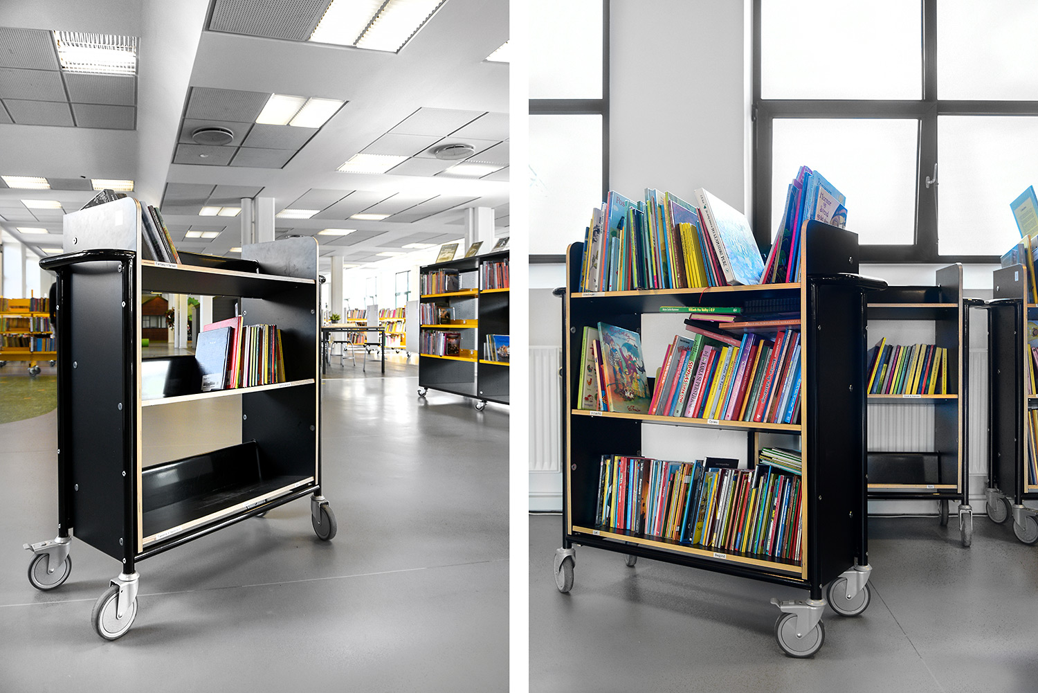 Doordat er een grote afstand is tussen de legplanken is deze boekenwagen uitermate geschikt voor grotere boeken en klasseermappen.