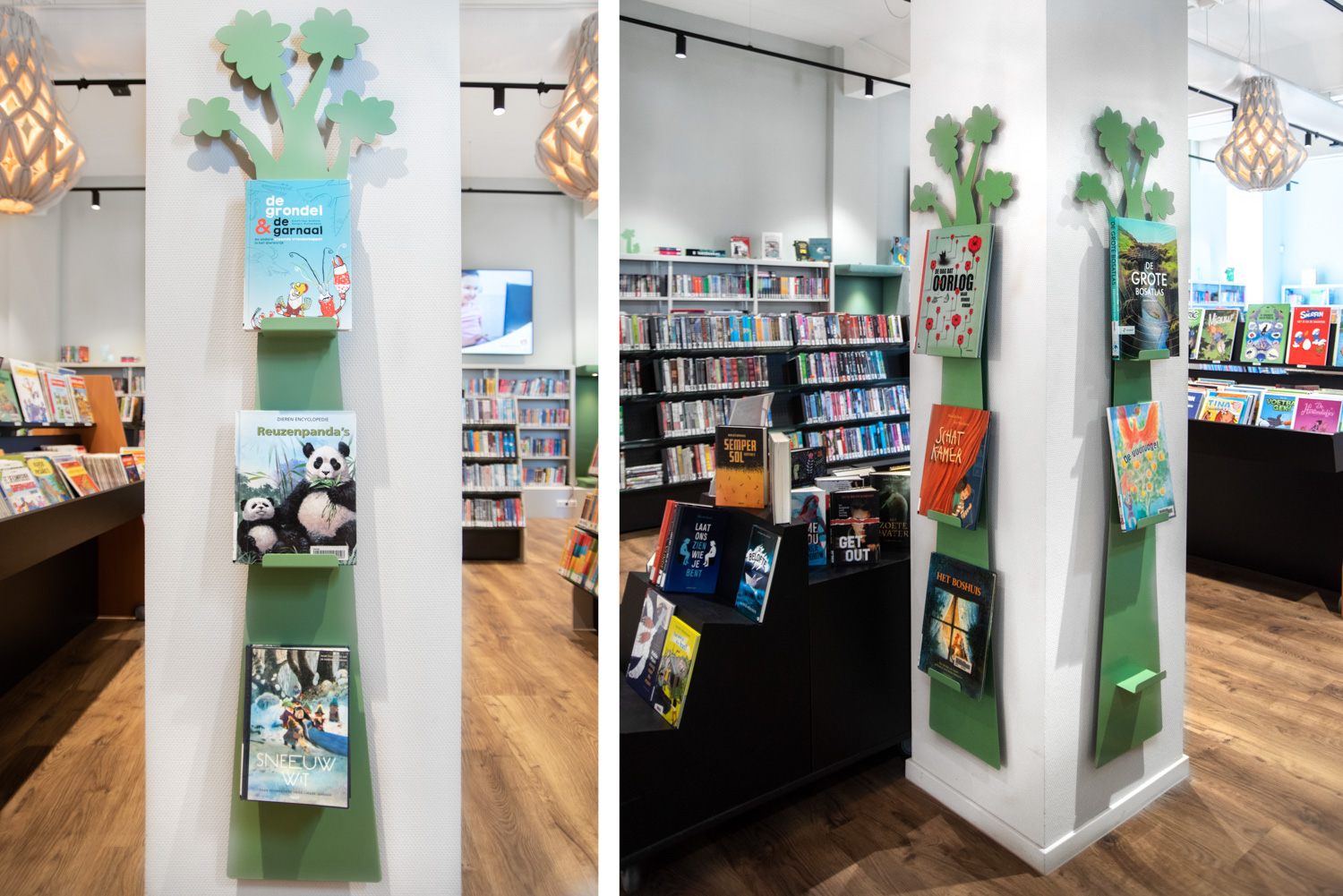 Displays voor boeken en andere media die zowel decoratief als nuttig zijn. Muurdisplay voor frontale presentatie van boeken.