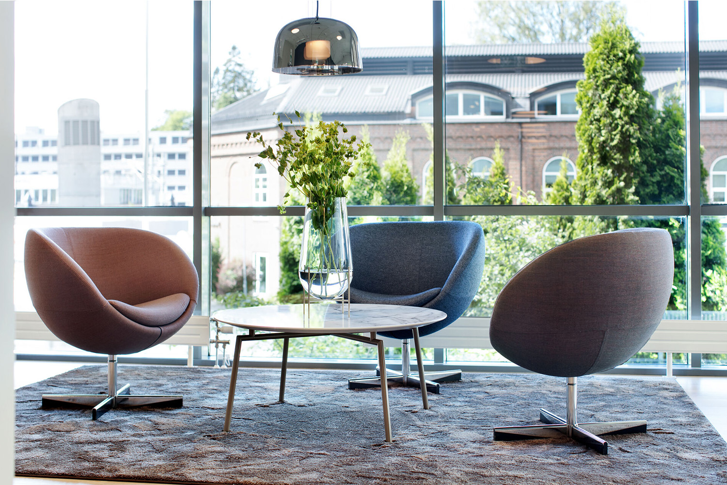 De bolvorm biedt een uitstekende zitervaring en past perfect in de bibliotheek dankzij zijn zachte en typerende ontwerp.