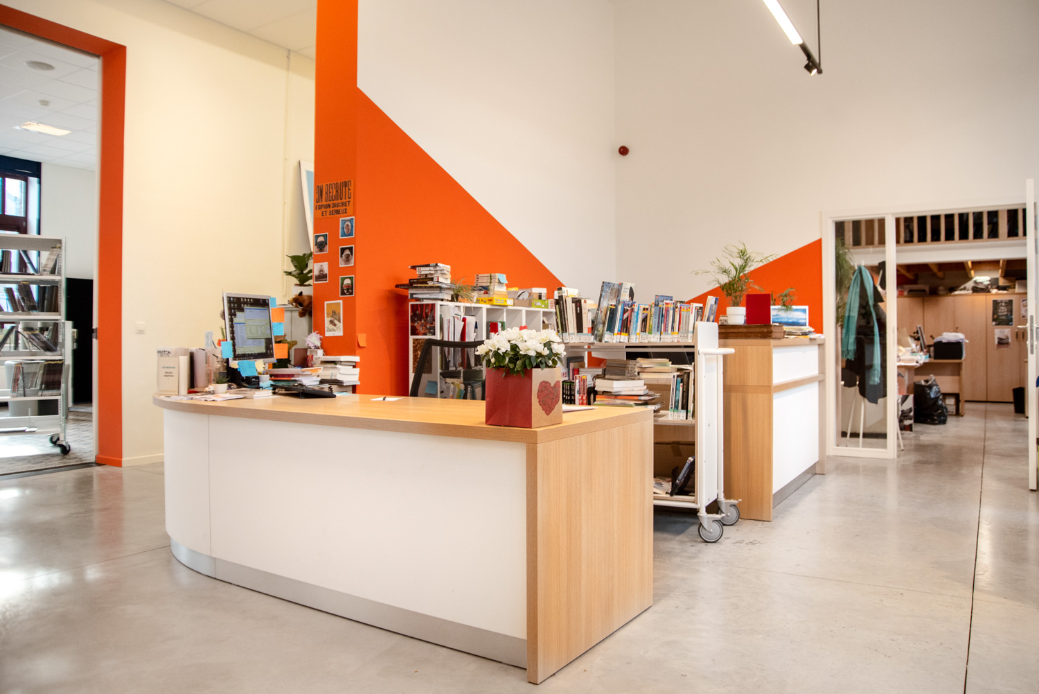 Madame Quiévreux, hoofd van het cultureel centrum en de bibliotheek van Celles: "De bibliotheek is ontworpen om de circulatie van bezoekers te vergemakkelijken volgens specifieke behoeften. Zo werd bijvoorbeeld een babyhoek met fauteuils voor ouders in de buurt van de prentenboeken ingericht. Bijzondere aandacht is besteed aan de toegankelijkheid. De bibliotheek is ingericht met het oog op een logische opstelling van de deelcollecties. Het meubilair is uitgevoerd in een neutraal kleurenpallet zodat met kleuraccenten kan gespeeld worden met accessoires en de kleuren van de muren. De lezers zijn opgetogen: het is veel beter dan voorheen. »