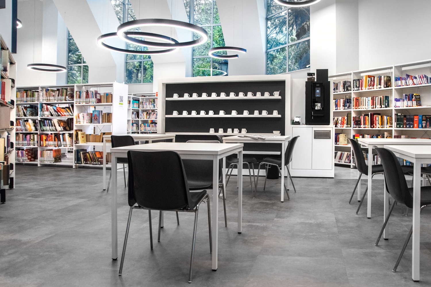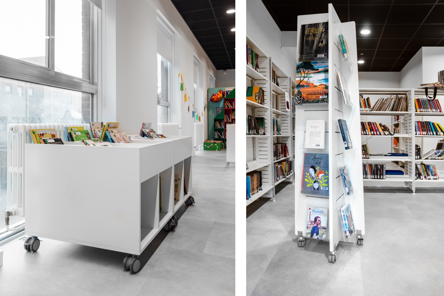 Bibliothecaris Sandra Maes: “We namen interieurarchitecten onder de arm. Ze luisterden naar wat we wilden bereiken en gaven mee vorm en advies. De collecties staan nu logischer en klantvriendelijker opgesteld. De leeszaal is een gezellige plek geworden om te vertoeven. De gekozen kleuren en verlichting geven rust, terwijjl licht en kleur voor meer openheid zorgen.”