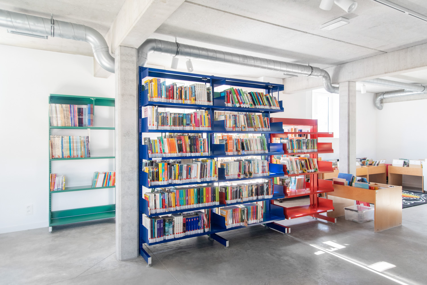 Bibliothecaris Joëlle Petitjean: "De inrichting lijkt door ons ruime aanbod nogal druk, toch is het hier luchtiger dan op de oude locatie. Bijna de helft van onze lezers zijn kinderen, de kinderafdeling is dan ook uitnodigend en op hun maat ingericht.”