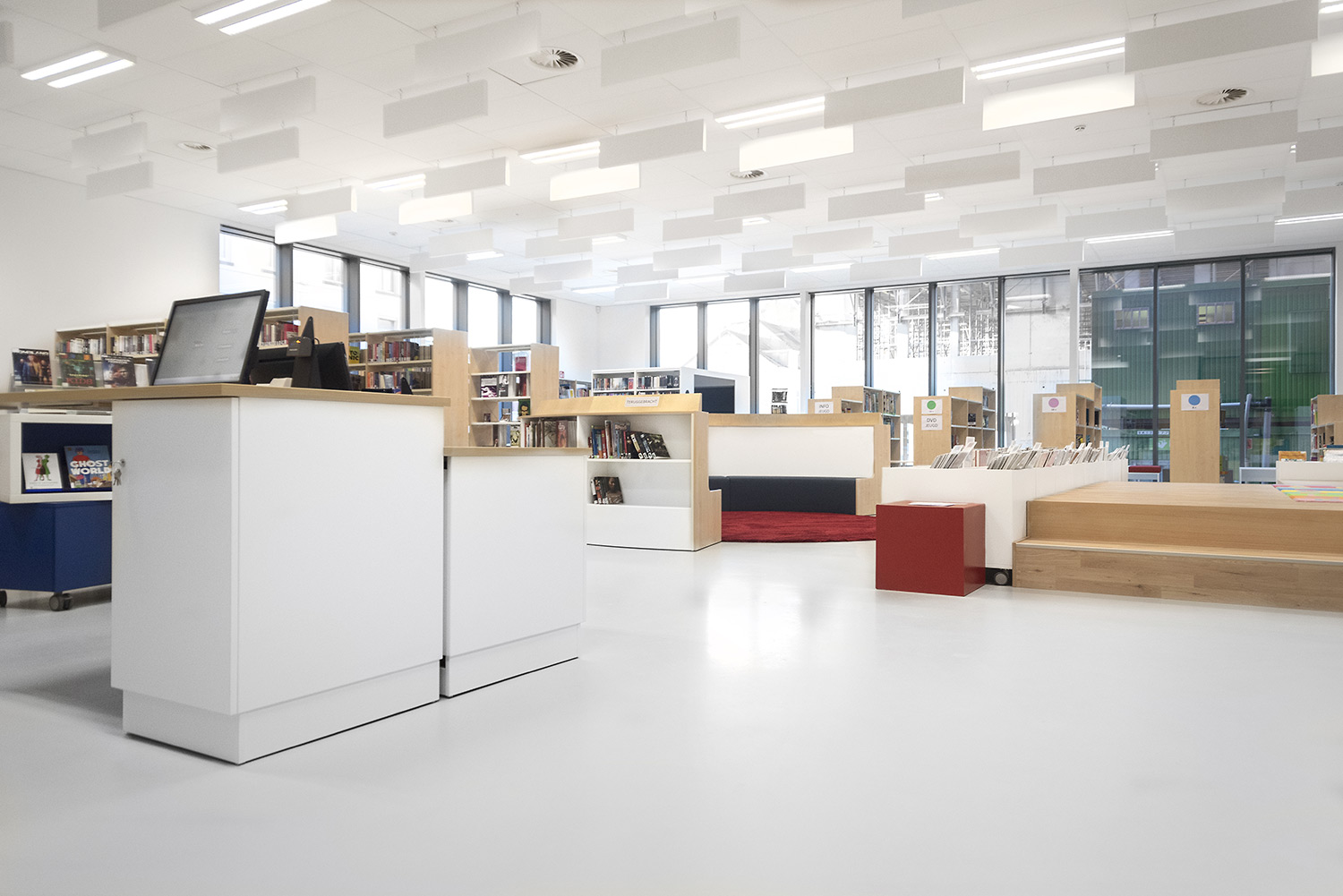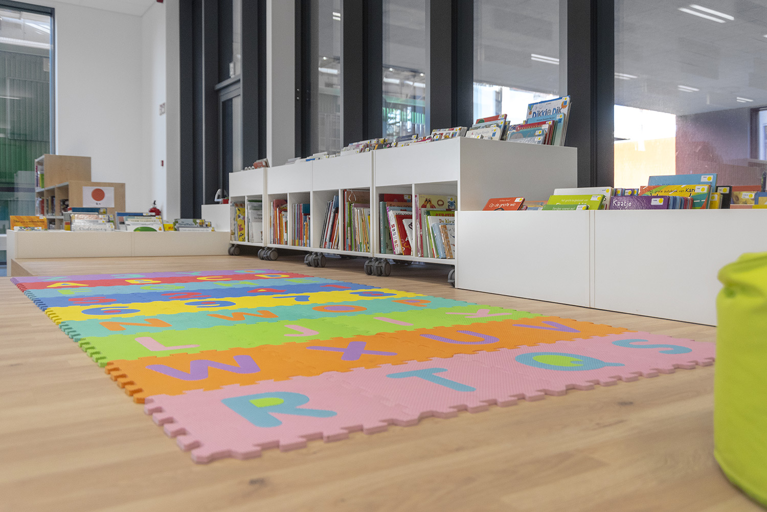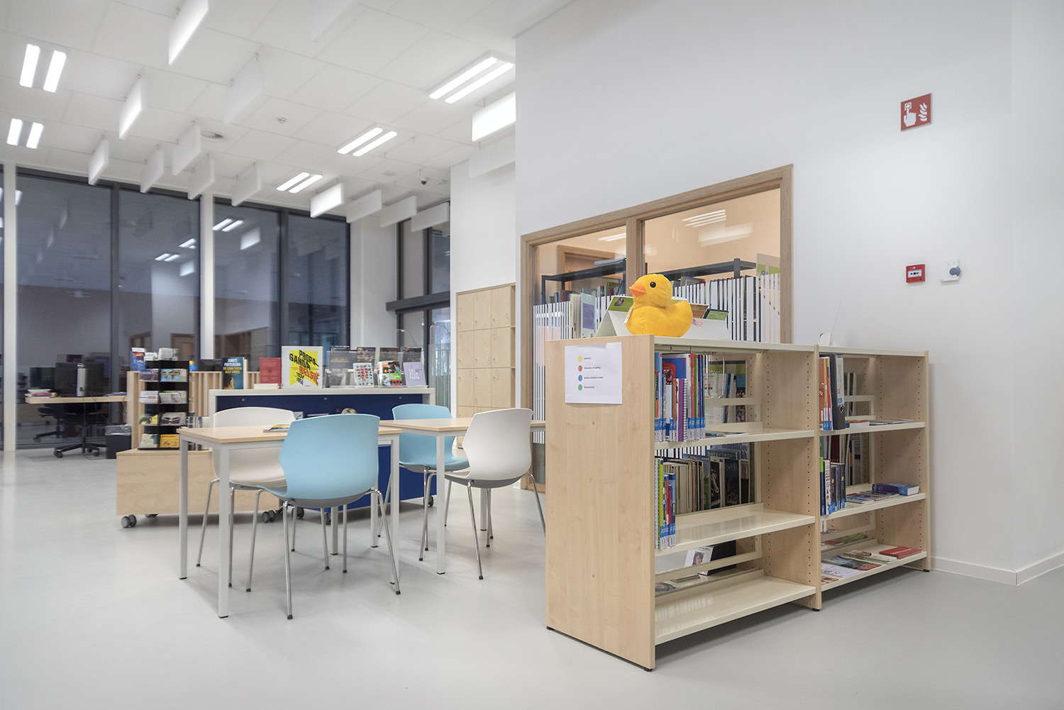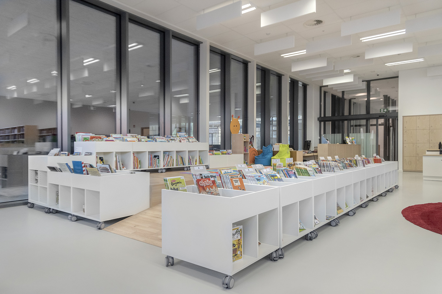 Bibliothecaris Nathalie Cools: "We kozen voor duidelijke zones: de babyhoek met een podium, de tienerhoek met de Cocoon en centraal de grote voorleescirkel. Kleuraccenten halen we uit de collectie zelf en door vrolijke toetsen zoals bijvoorbeeld een speelmat. De lezers zijn zeer tevreden over de nieuwe bibliotheek. De collectie komt goed tot haar recht en de bib wordt, als een onzichtbare entiteit, je tweede thuis. Wij kozen voor Schulz voor de bewezen kwaliteit en omdat de stijl van Schulz aanleunt bij de bibliotheek die we wilden vormgeven."