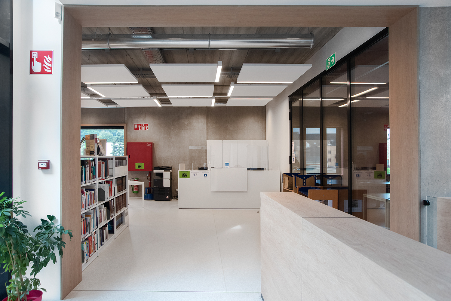 Silvia Maria Rossi - Chief Technical Officer: “In het digitale tijdperk ondergaat de bibliotheek, als openbare ruimte, een ware revolutie. Het is momenteel een van de snelst evoluerende openbare plaatsen. De bibliotheek wordt steeds meer een plaats van sociaal leven, veel heterogener dan men zou denken. Om deze reden is het interieur opgevat als open-space ruimtes, afgebakend en met elkaar verbonden door op maat gemaakte houten scheidingswanden / rekken of glazen "aquaria".