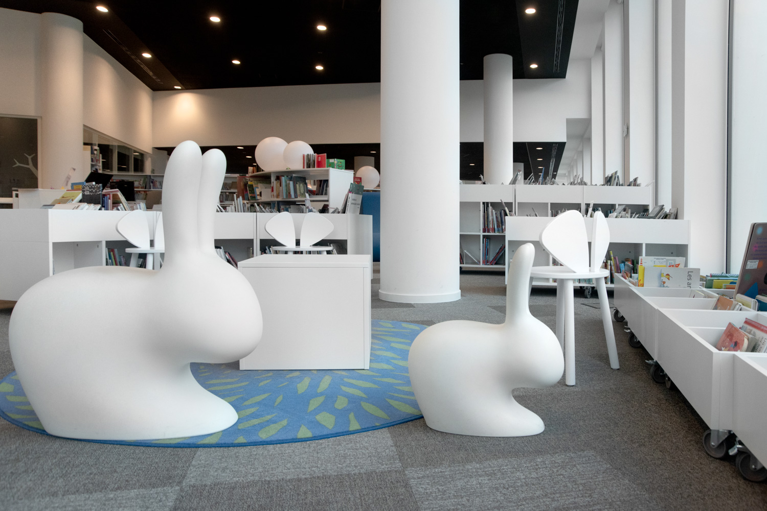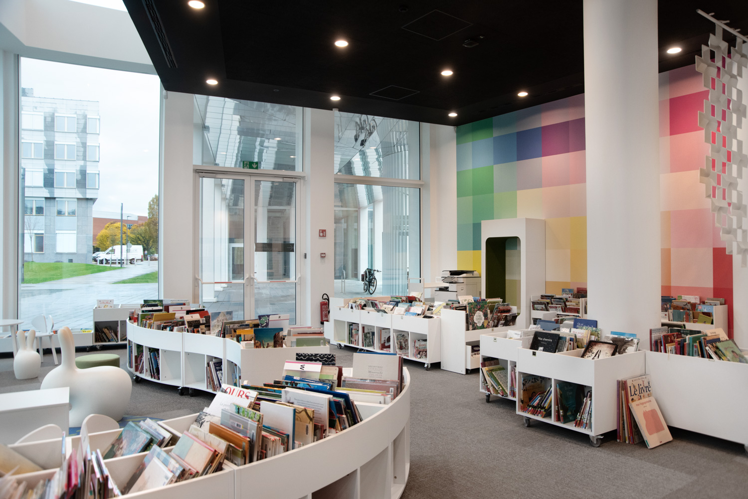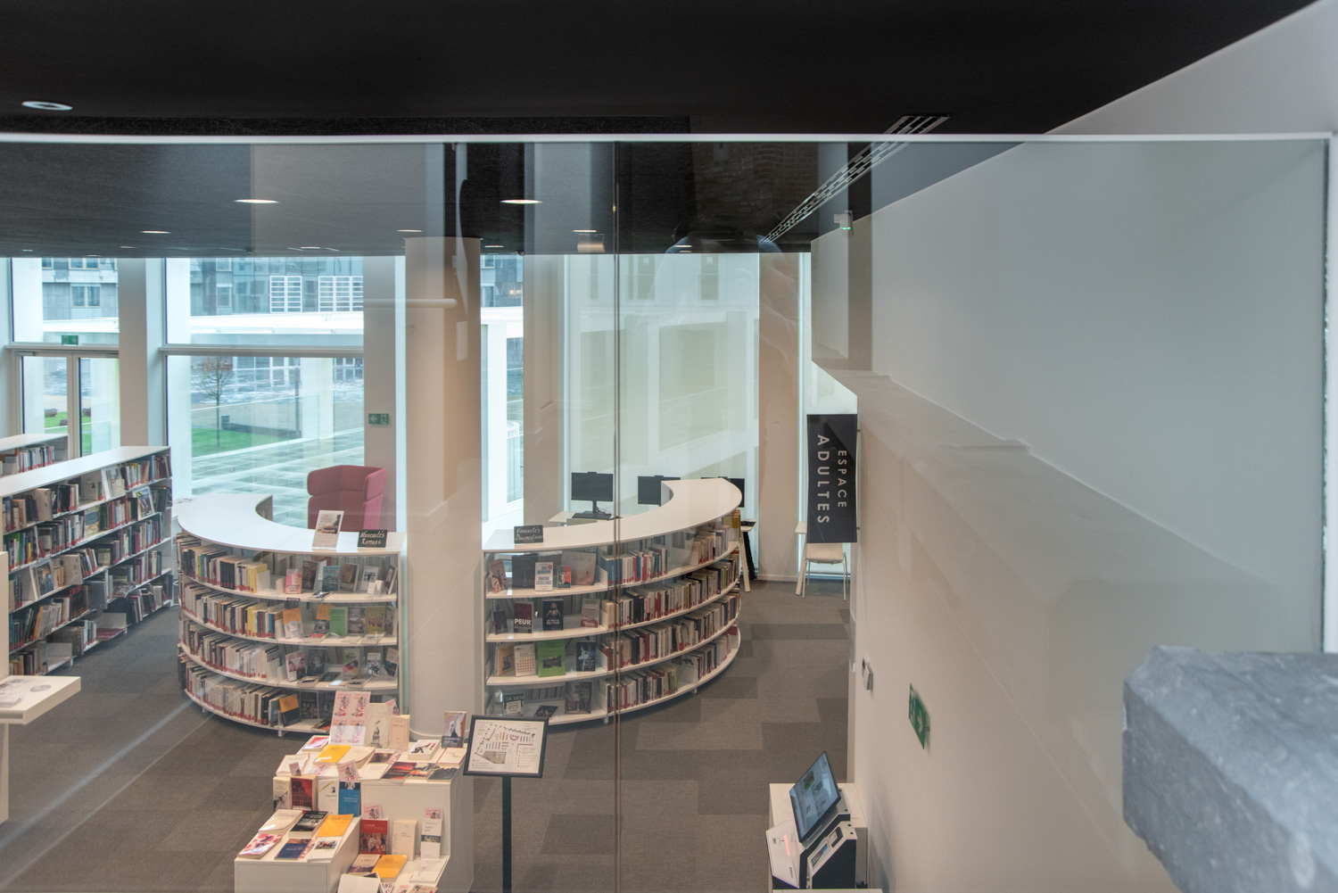 Naast de traditionele zones voor collecties vindt de bezoeker nu ook ruimtes voor meditatie, lezen en werken, een vertelhut en een spelotheek waar ter plaatse gespeeld kan worden. Dankzij geavanceerde technologische voorzieningen kunnen de bibliothecarissen zich volledig richten op ontvangst, advies en begeleiding, zowel voor individuele bezoekers als voor diverse groepen.