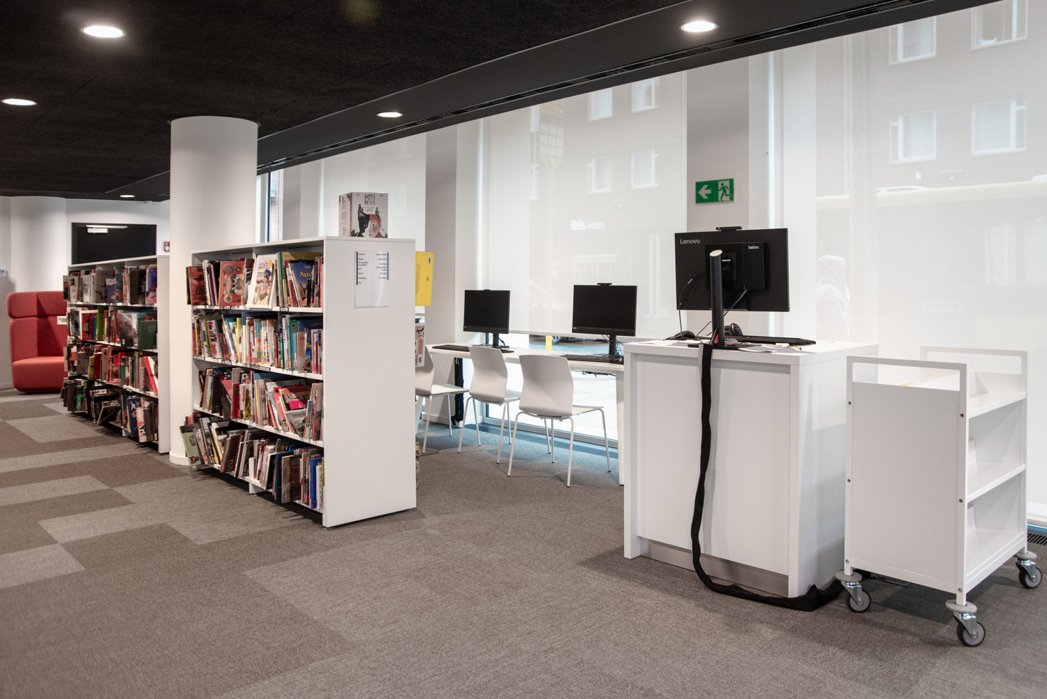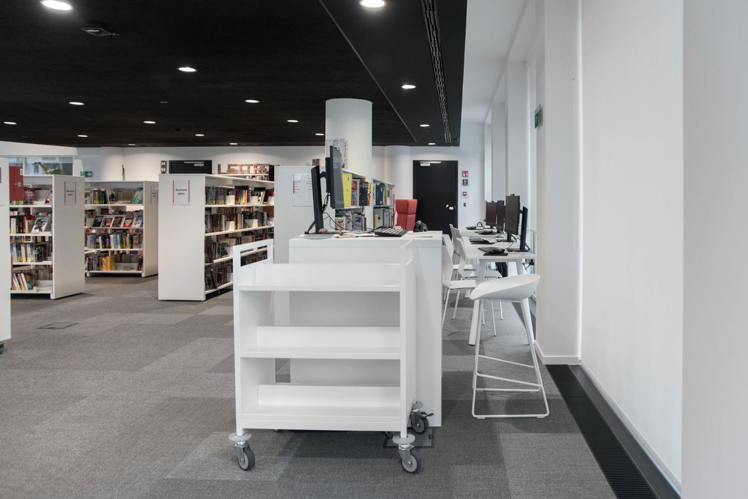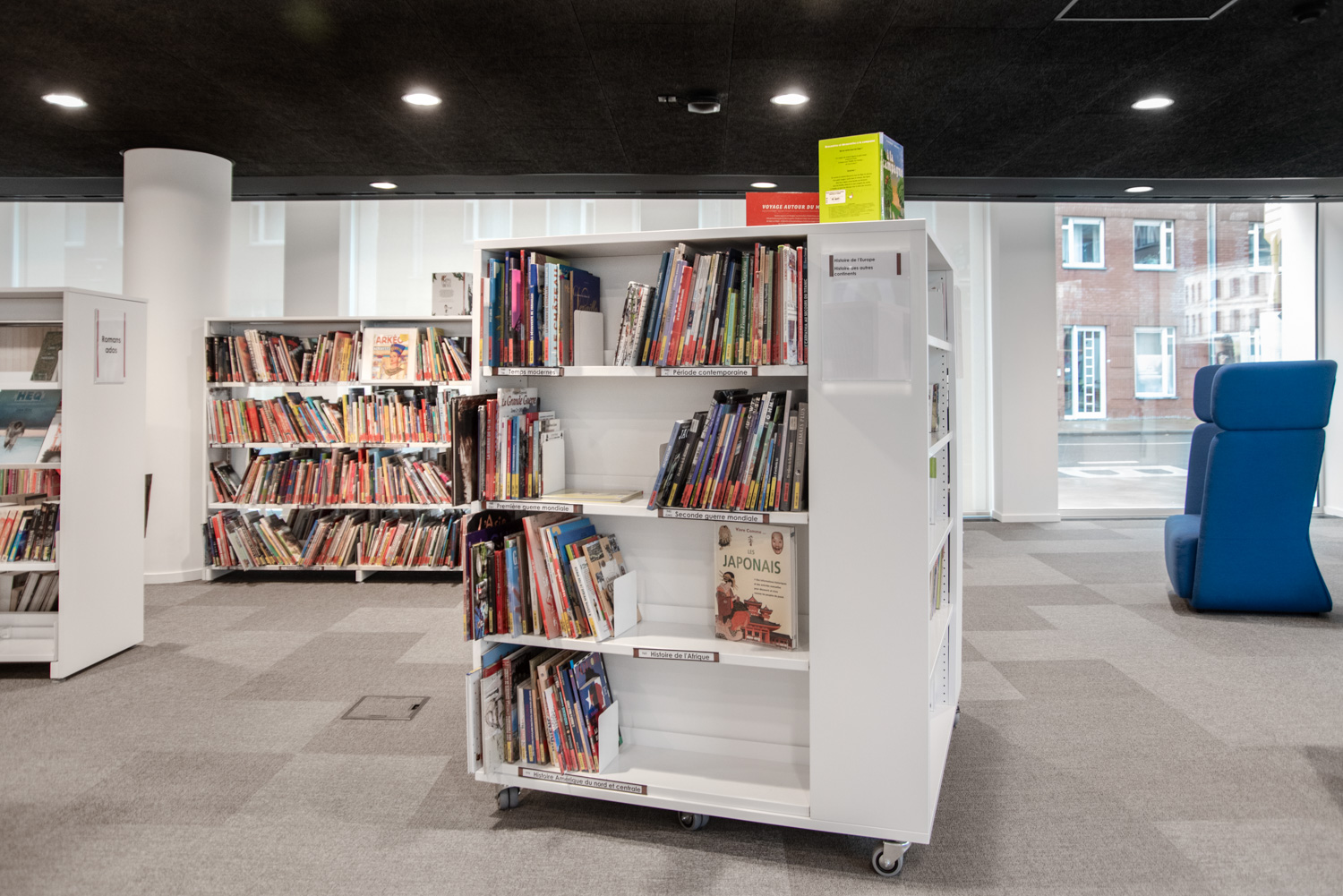 Naast de traditionele zones voor collecties vindt de bezoeker nu ook ruimtes voor meditatie, lezen en werken, een vertelhut en een spelotheek waar ter plaatse gespeeld kan worden. Dankzij geavanceerde technologische voorzieningen kunnen de bibliothecarissen zich volledig richten op ontvangst, advies en begeleiding, zowel voor individuele bezoekers als voor diverse groepen.