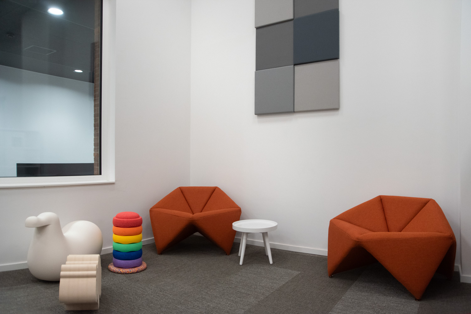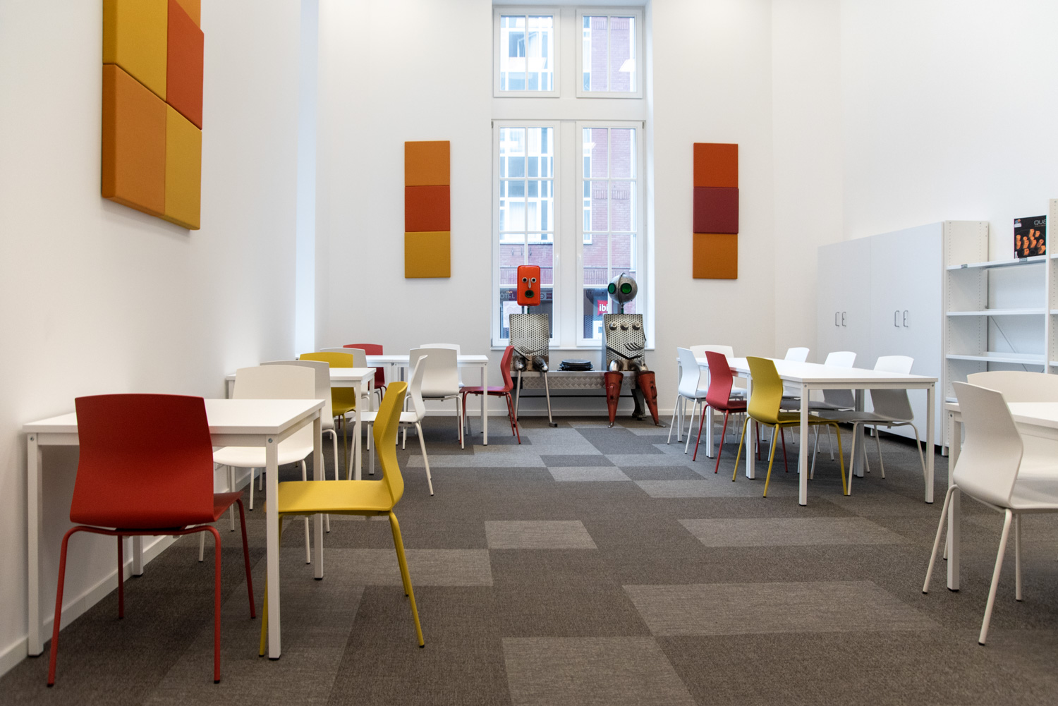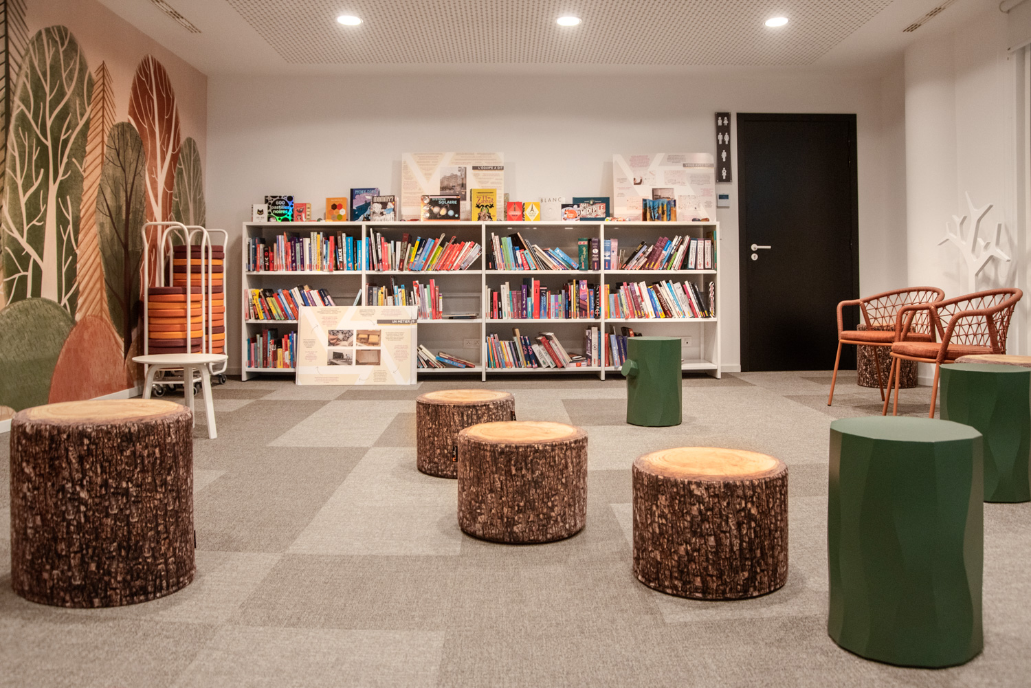 Omdat La Célestine een gastvrije en inclusieve derde plek wil zijn, is ze voor iedereen toegankelijk. De inrichting is zorgvuldig gekozen: stoelen met armleuningen voor ouderen, speelse zitjes voor kinderen en informatiebalies in plaats van traditionele uitleenbalies, zodat bezoekers zich welkom en comfortabel voelen.