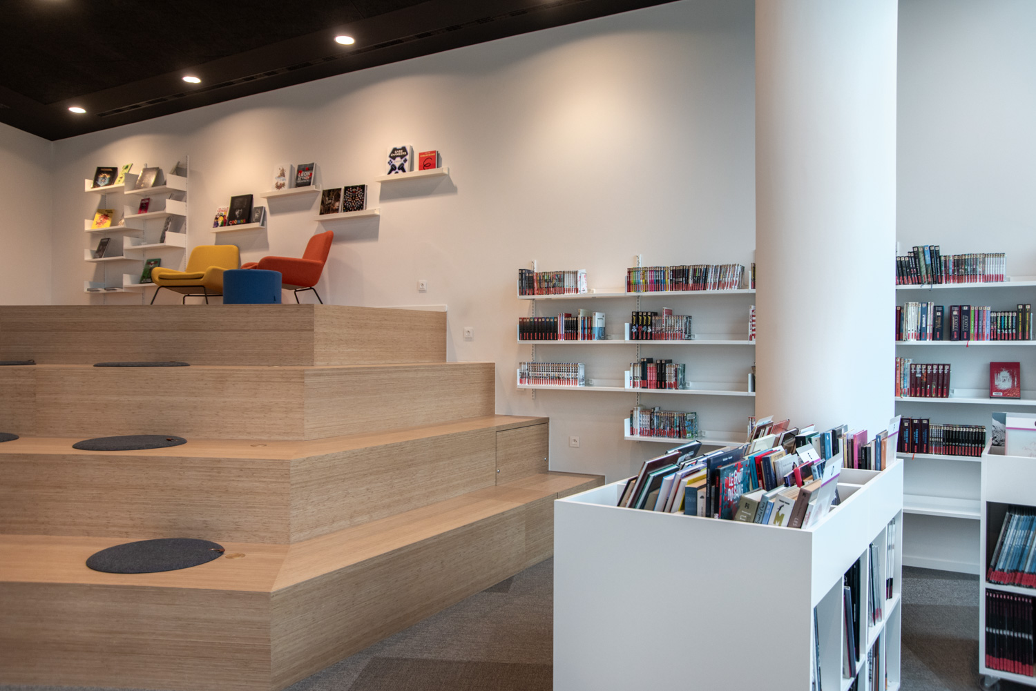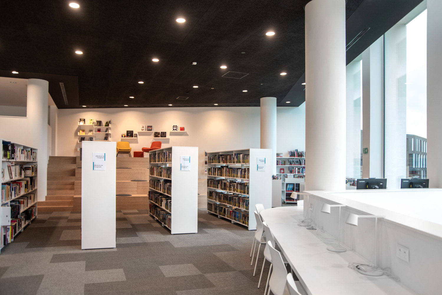 Bibliothecaris Catherine De Biourge is enthousiast: “De nieuwe bib is een groot succes. We verwelkomen veel bezoekers, aangetrokken door de sfeer, het mooie licht, het comfort, de veelzijdigheid van de ruimtes, de toegankelijkheid van het personeel en de uitbreiding van onze activiteiten en diensten.”