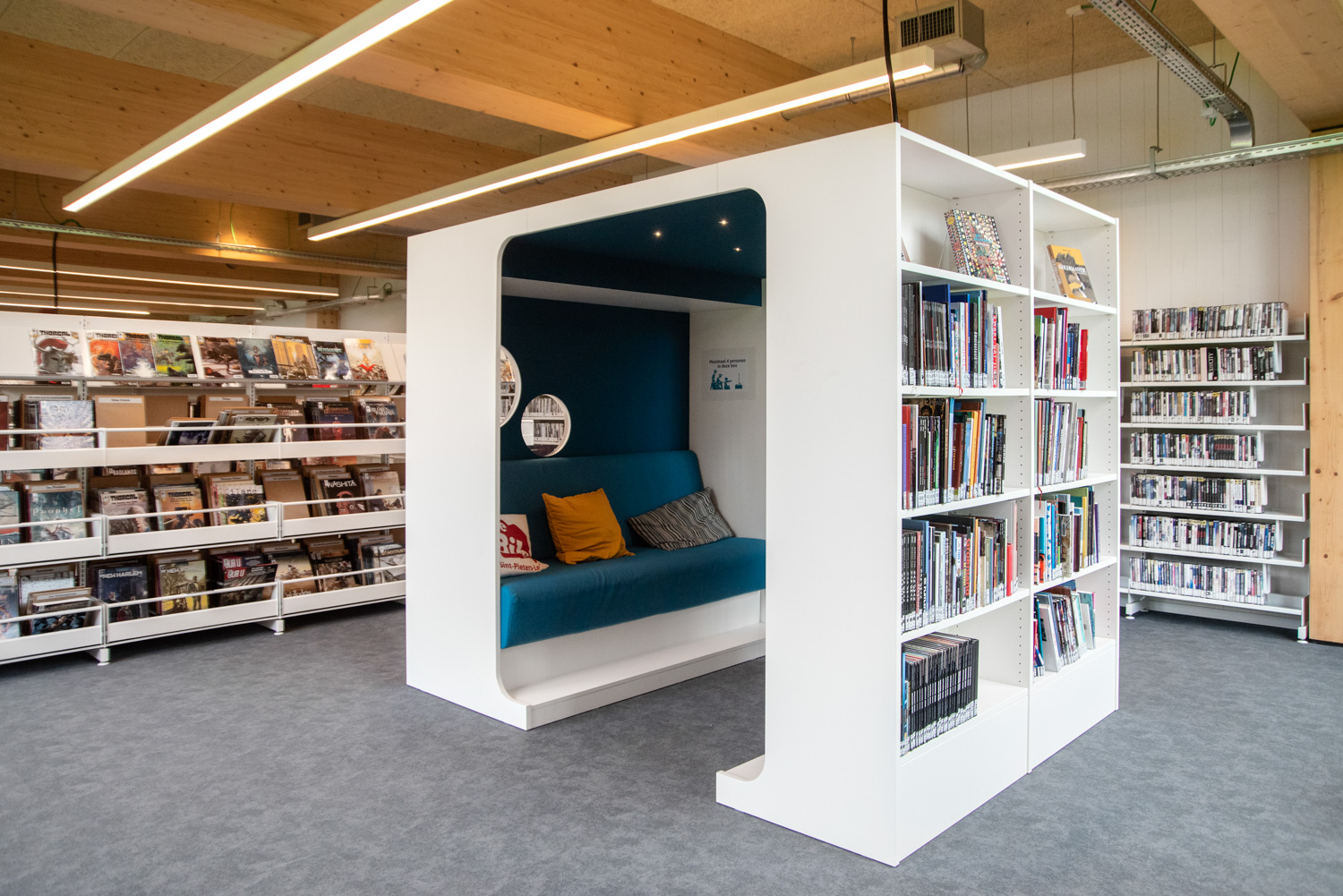 Schulz Benelux verzorgde de binneninrichting van de bibliotheekruimtes en bureaus, met rekmeubilair, zit- en bureaumeubels en maatwerk.