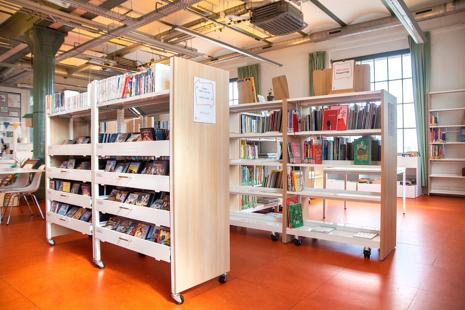 De nieuwe inrichting sluit perfect aan bij het karakter van Bib Vorst : een gezellige, toegankelijke familiebibliotheek op maat van de buurt.