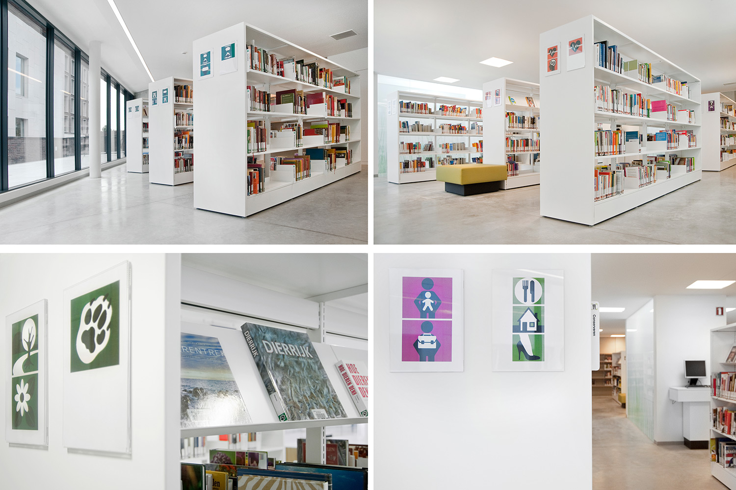 Producten die in de Openbare bibliotheek Wilrijk, België gebruikt worden