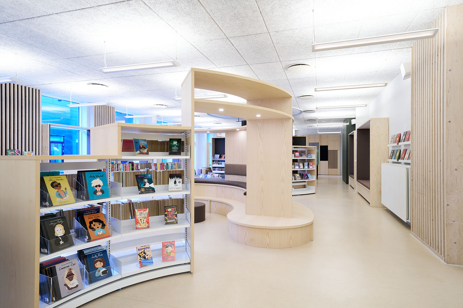 De bibliotheek van de International School in Billund is een levendige leeromgeving waar design, functionaliteit en sfeer naadloos samenkomen. Het project laat zien hoe een bibliotheek het natuurlijke ontmoetingspunt van een school kan worden – een plek waar kinderen en jongeren worden geïnspireerd om te leren, te lezen en nieuwsgierig te blijven.