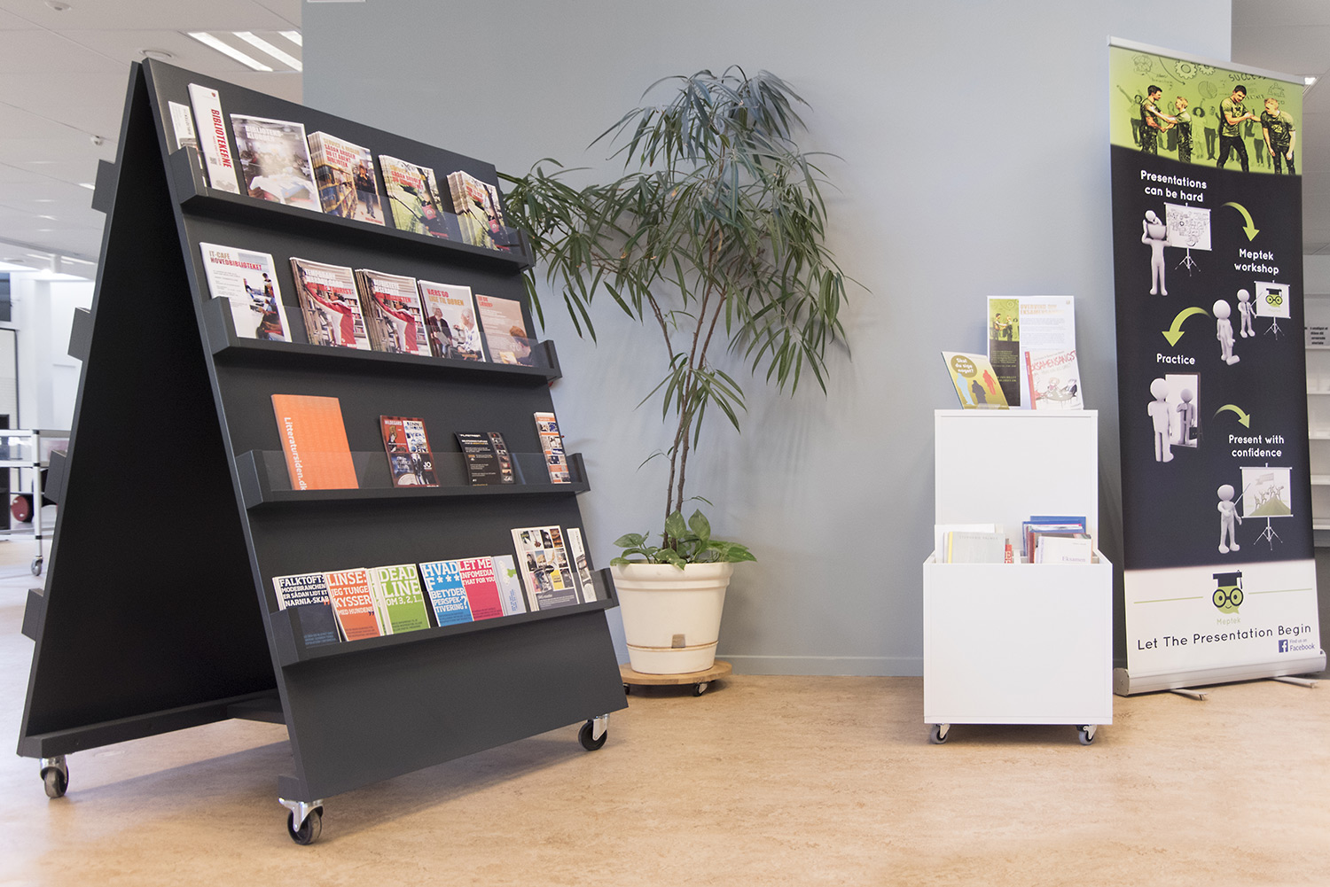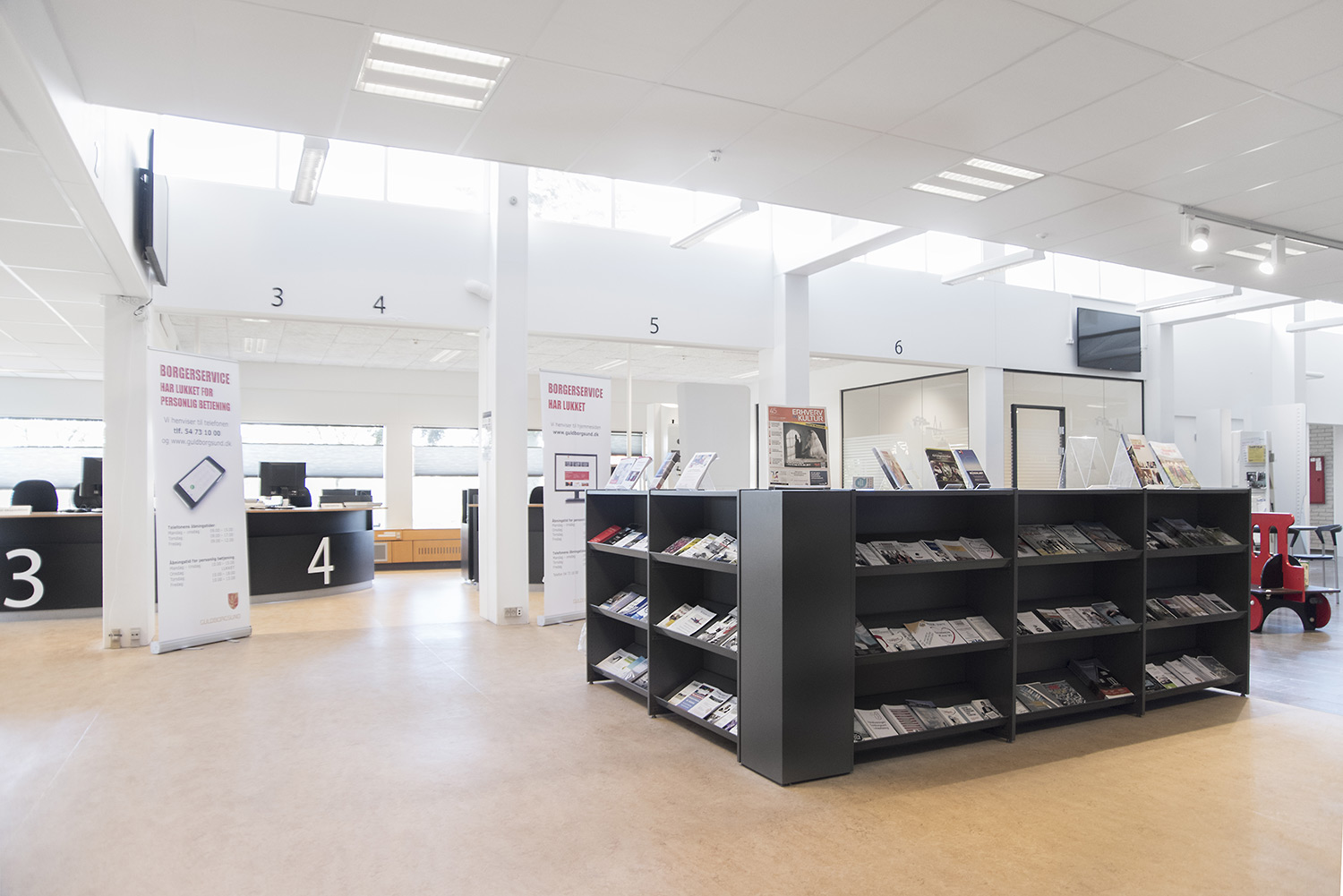 Producten die in de Openbare bibliotheek Guldborgsund, Denemarken gebruikt worden