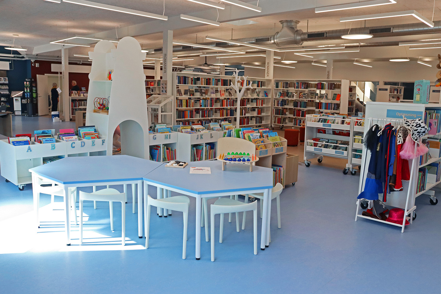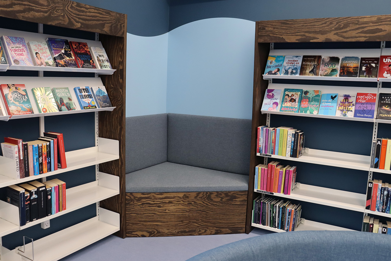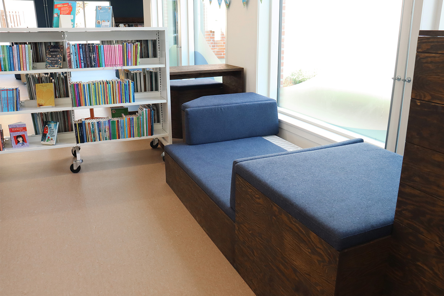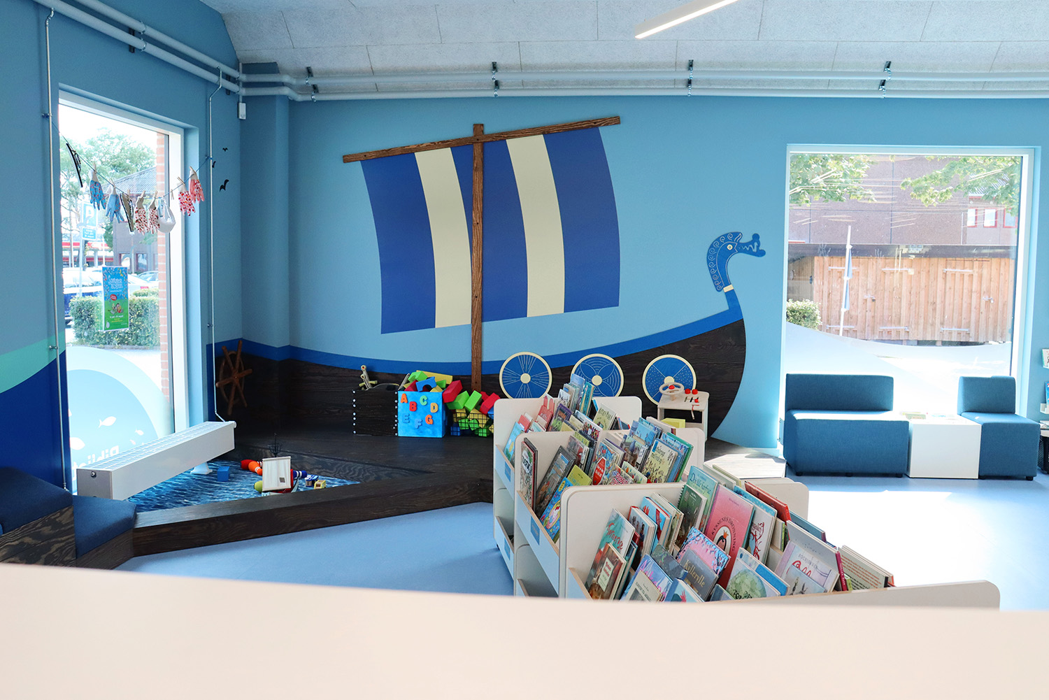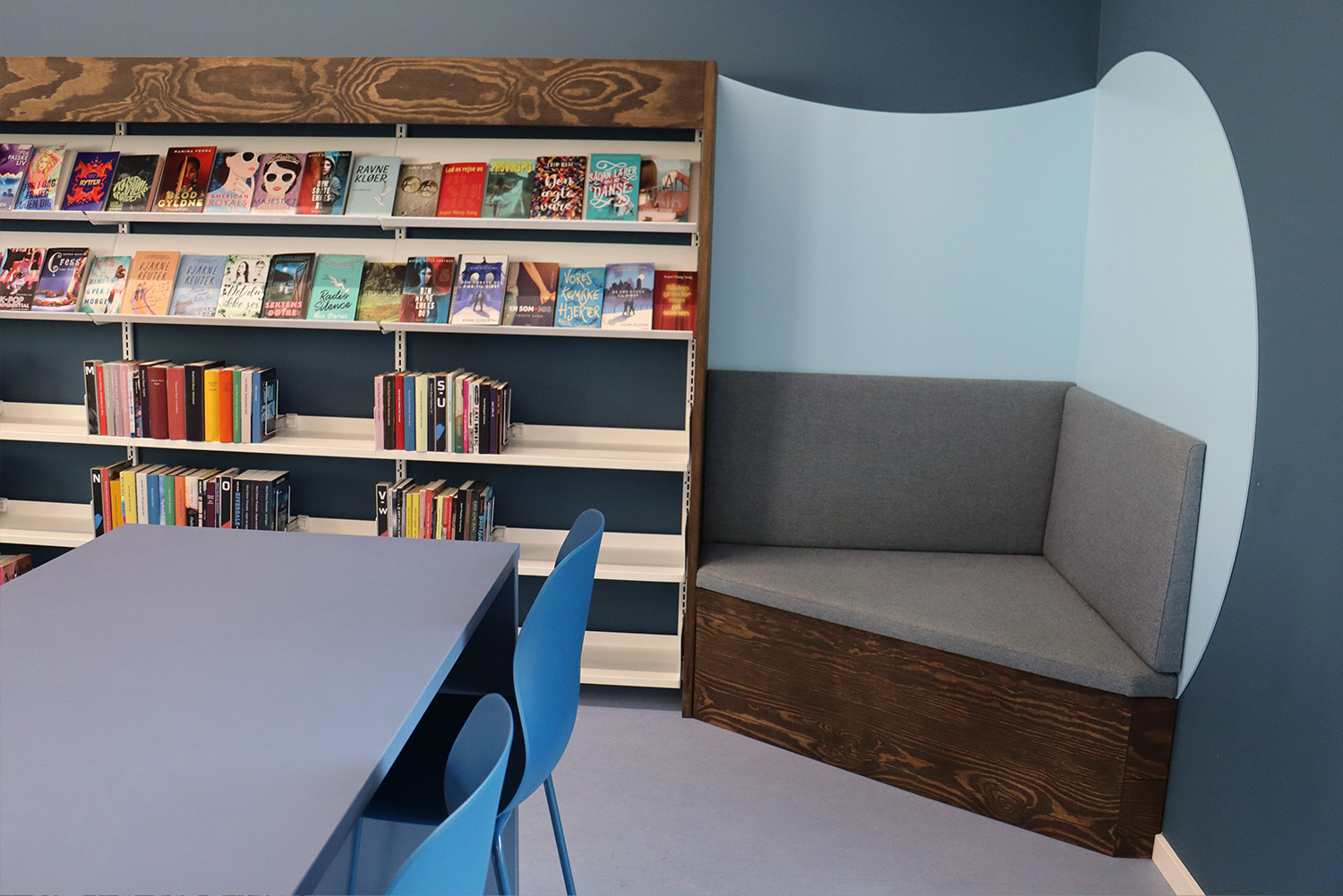 Het op maat gemaakte ontwerp is geïnspireerd op het maritieme erfgoed van Kerteminde, met het Ladby-schip als absolute blikvanger omtrent het thema. Het rustgevende kleurenpalet van wit en blauw creëert een uitnodigende sfeer voor bezoekers van alle leeftijden. De bibliotheek is zorgvuldig onderverdeeld in verschillende zones, gaande van rustige leesplekken tot dynamische creatieve ruimtes en een totaal nieuwe kinderbibliotheek. Deze weldoordachte indeling zorgt ervoor dat iedereen een plek vindt om te leren en inspiratie op te doen.