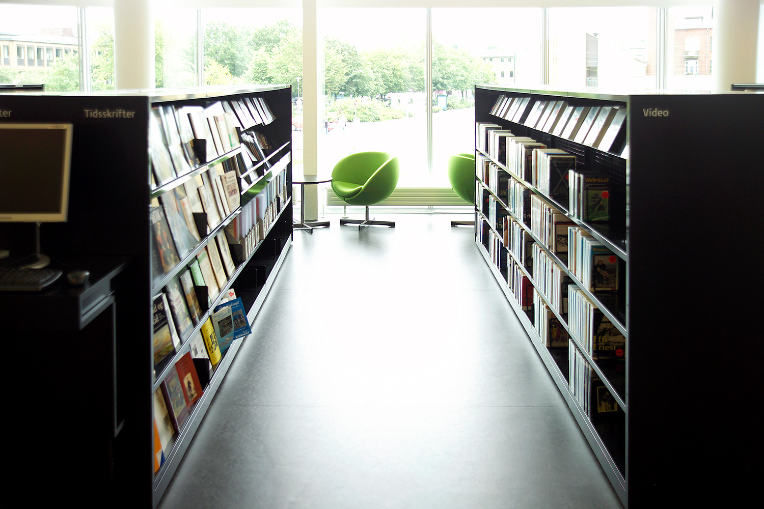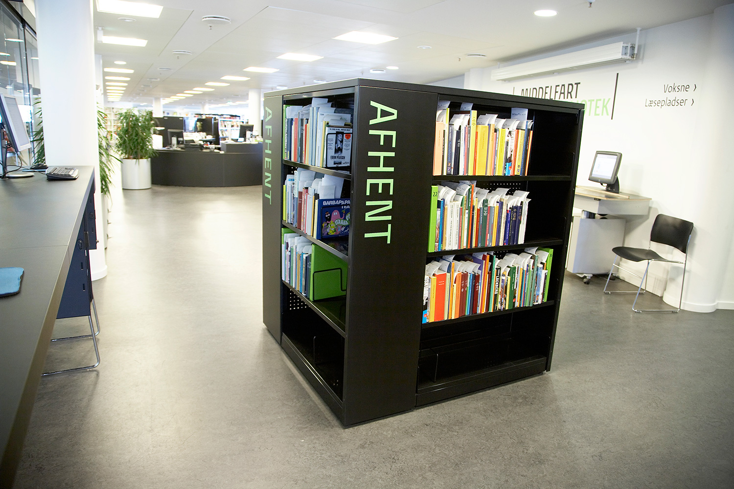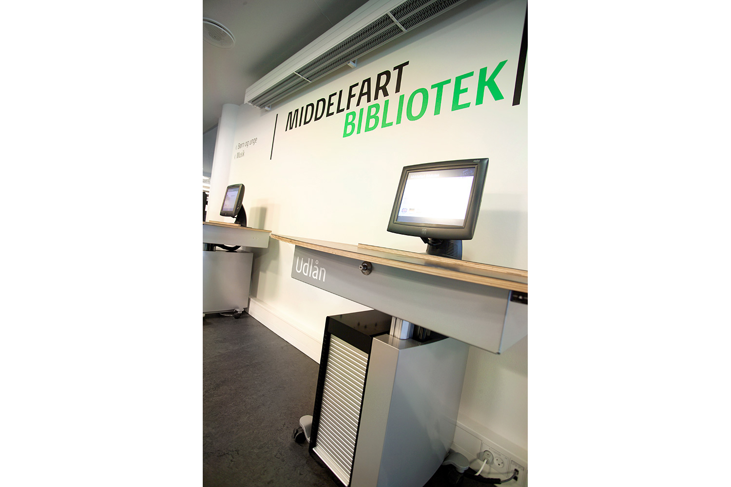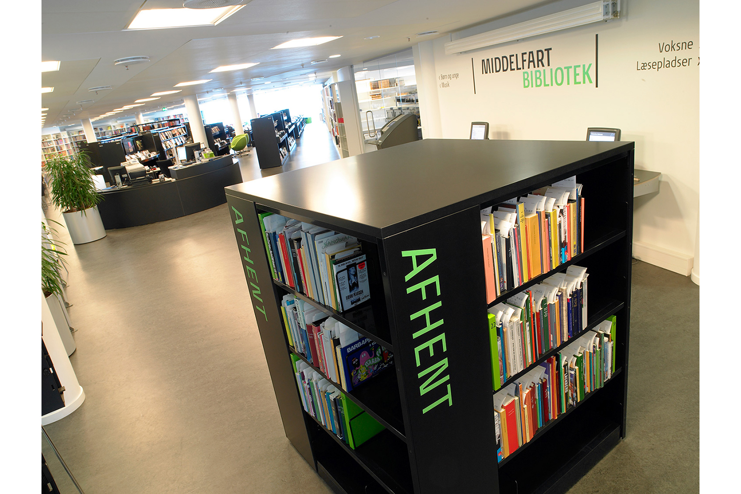 Producten die in de Openbare bibliotheek Middelfart, Denemarken gebruikt worden