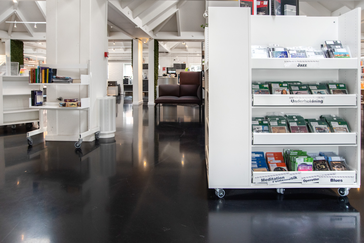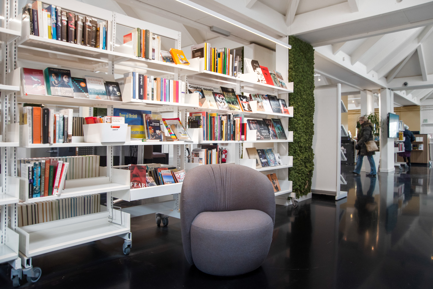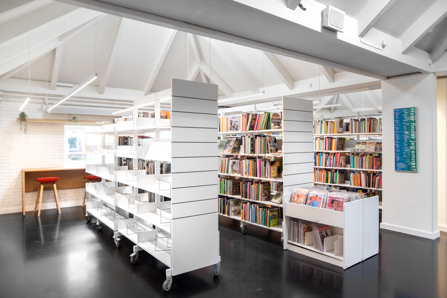 De bibliotheek van Vallensbæk werd in 2022 gerenoveerd en maakt vandaag optimaal gebruik van de beschikbare ruimte, met een groter ruimtegevoel in de bib als resultaat.