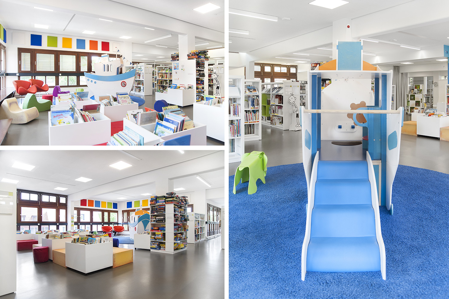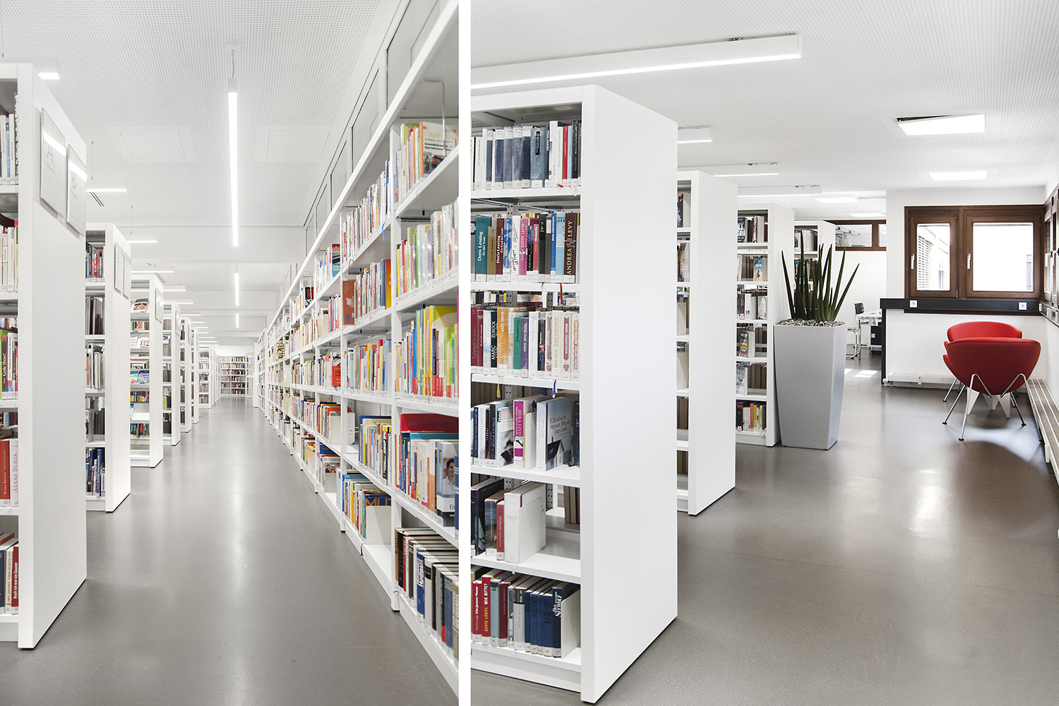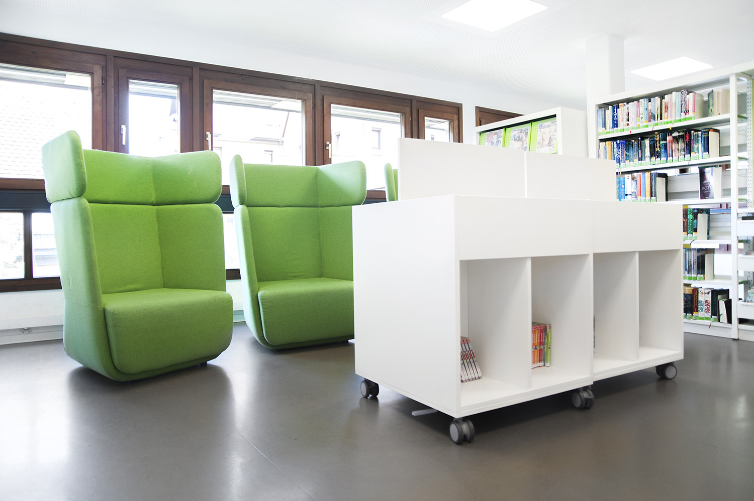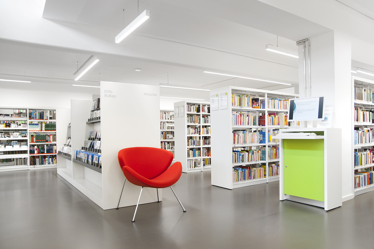 De bibliotheek bevindt zich in het hart van de historische stad Bietigheim. In deze historische instelling was het belangrijk om een oase van rust te creëren, maar ook een moderne omgeving waar gebruikers zich comfortabel voelen. De bibliotheek werd gecreëerd voor alle soorten gebruikers en brengt jong en oud samen onder één dak. Een voorbeeld van een groot succes is de kinderenzone waar de kinderen hun fantasie kunnen ontwikkelen terwijl de ouders de lounge kunnen gebruiken.