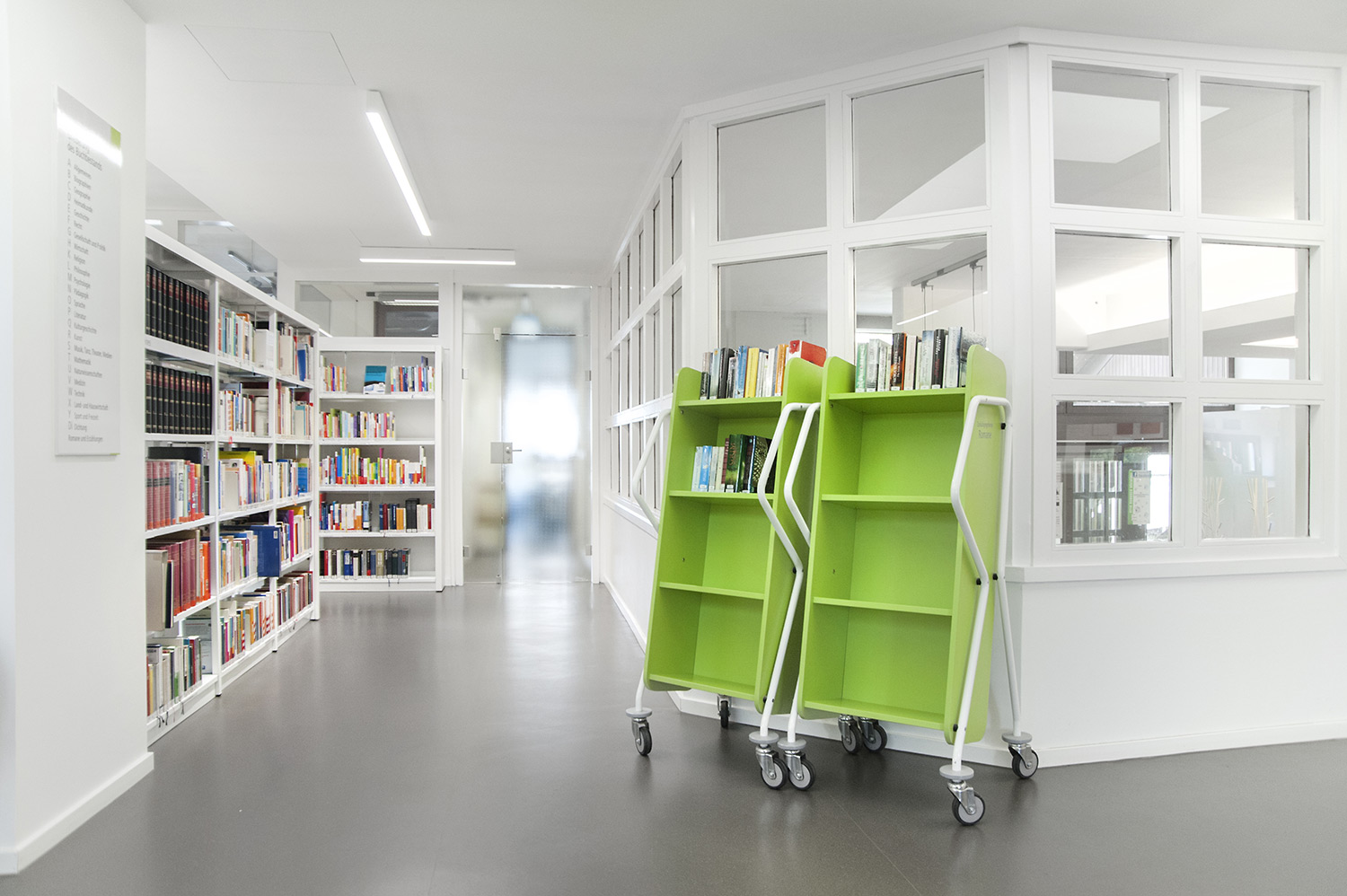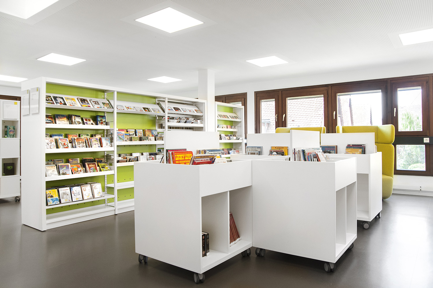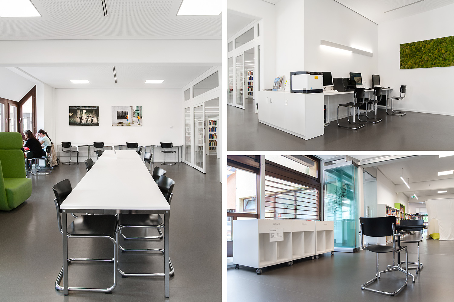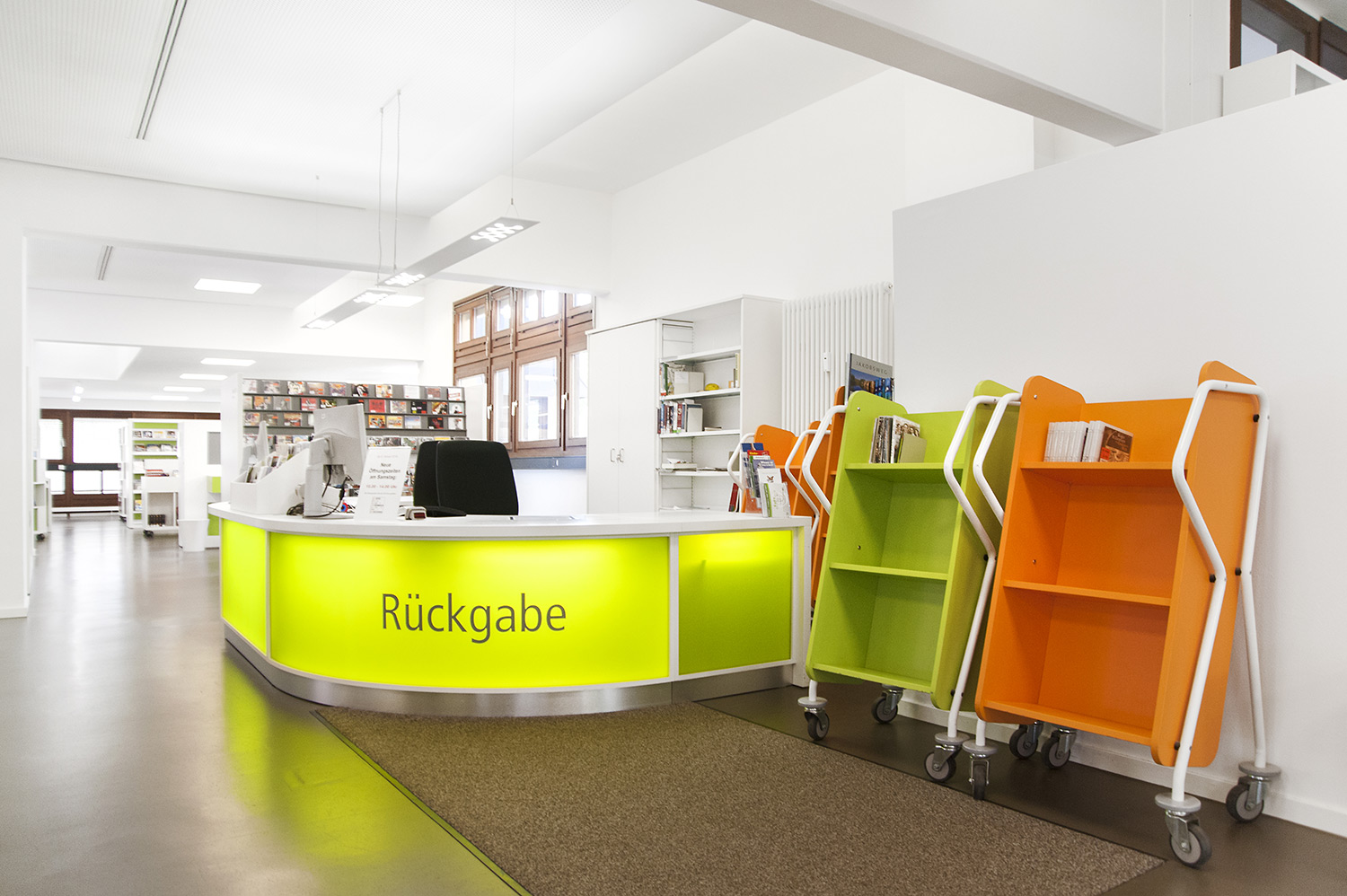 De bibliotheek bevindt zich in het hart van de historische stad Bietigheim. In deze historische instelling was het belangrijk om een oase van rust te creëren, maar ook een moderne omgeving waar gebruikers zich comfortabel voelen. De bibliotheek werd gecreëerd voor alle soorten gebruikers en brengt jong en oud samen onder één dak. Een voorbeeld van een groot succes is de kinderenzone waar de kinderen hun fantasie kunnen ontwikkelen terwijl de ouders de lounge kunnen gebruiken.