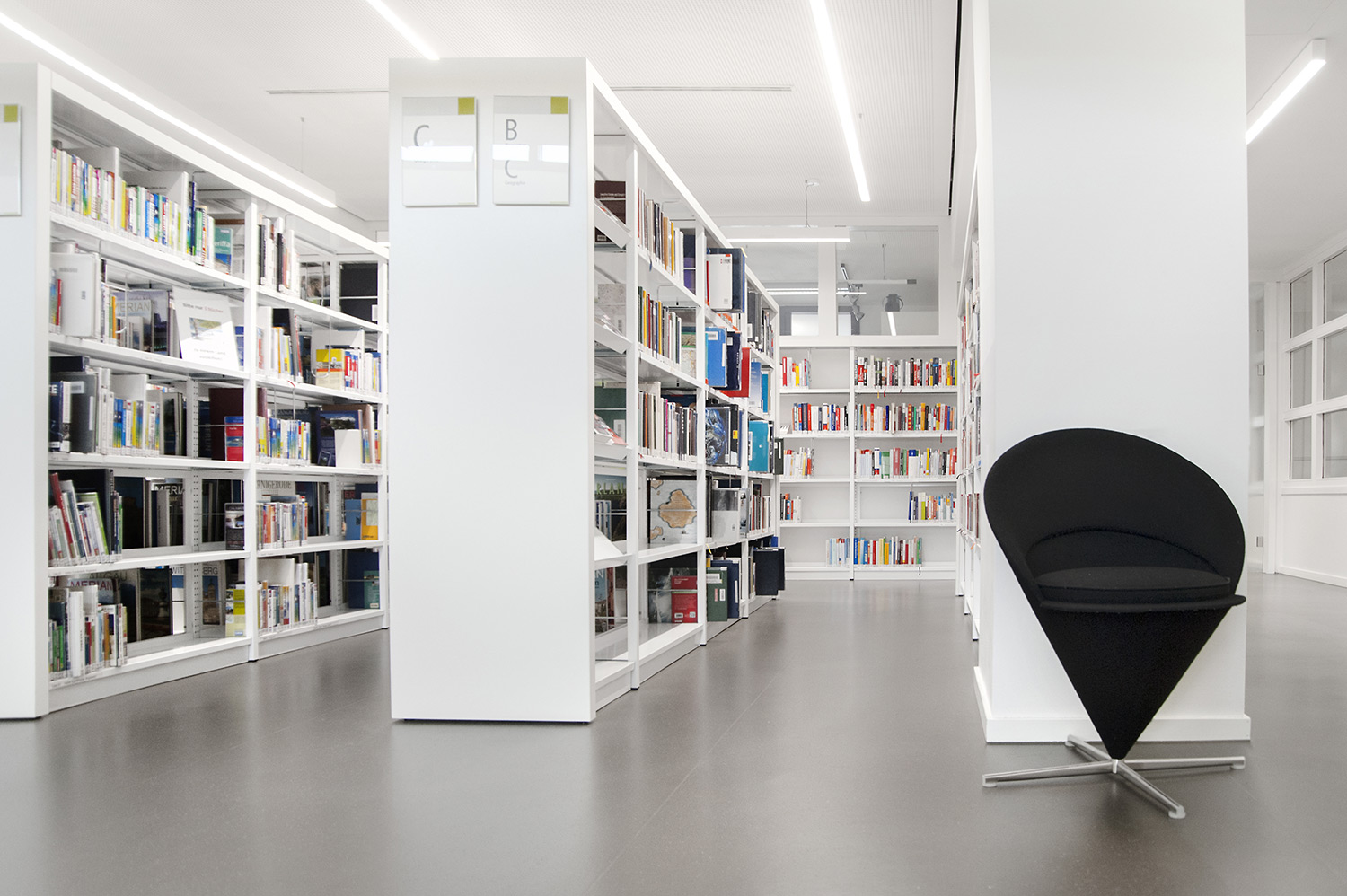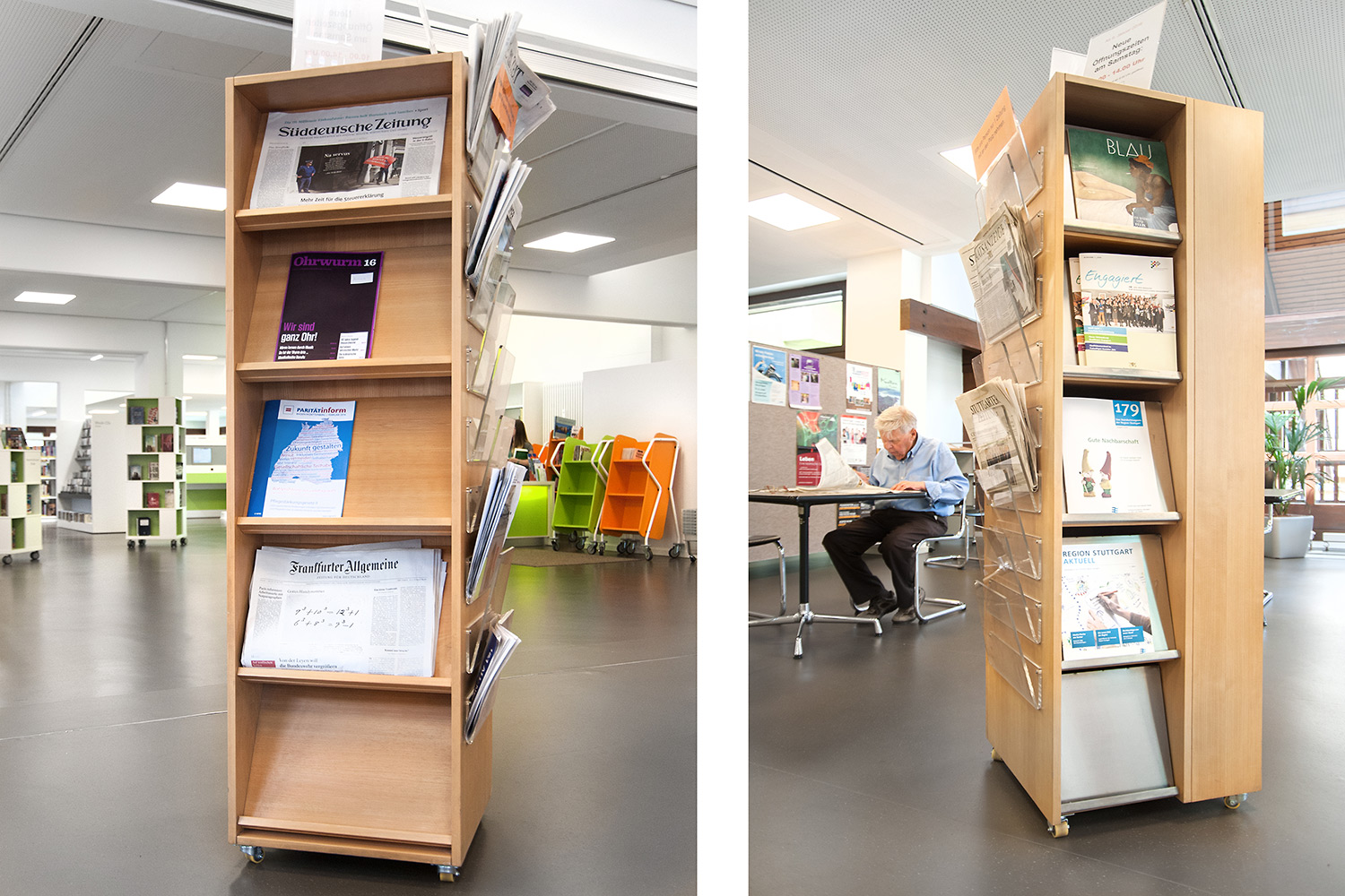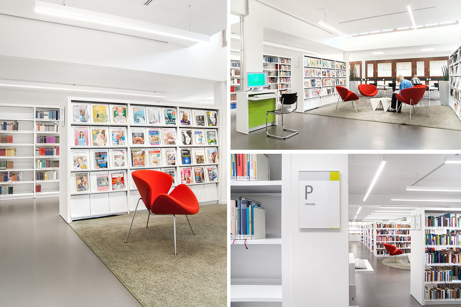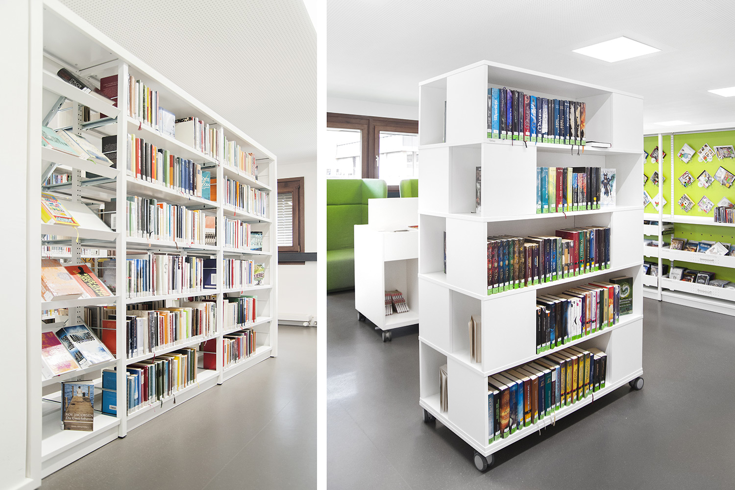 De bibliotheek bevindt zich in het hart van de historische stad Bietigheim. In deze historische instelling was het belangrijk om een oase van rust te creëren, maar ook een moderne omgeving waar gebruikers zich comfortabel voelen. De bibliotheek werd gecreëerd voor alle soorten gebruikers en brengt jong en oud samen onder één dak. Een voorbeeld van een groot succes is de kinderenzone waar de kinderen hun fantasie kunnen ontwikkelen terwijl de ouders de lounge kunnen gebruiken.