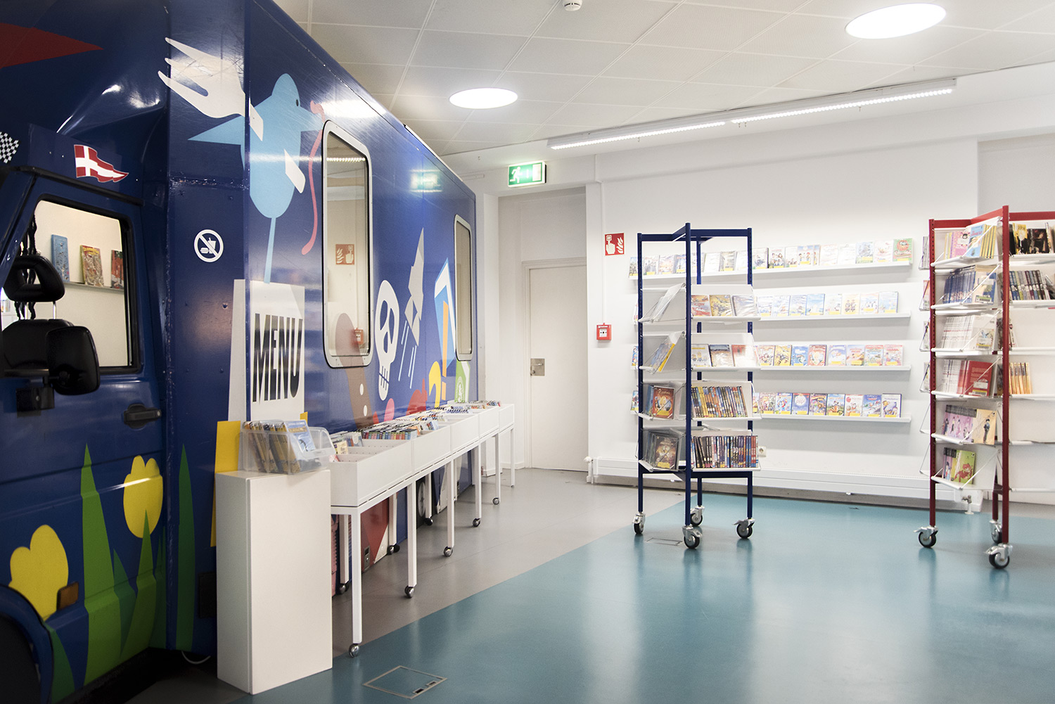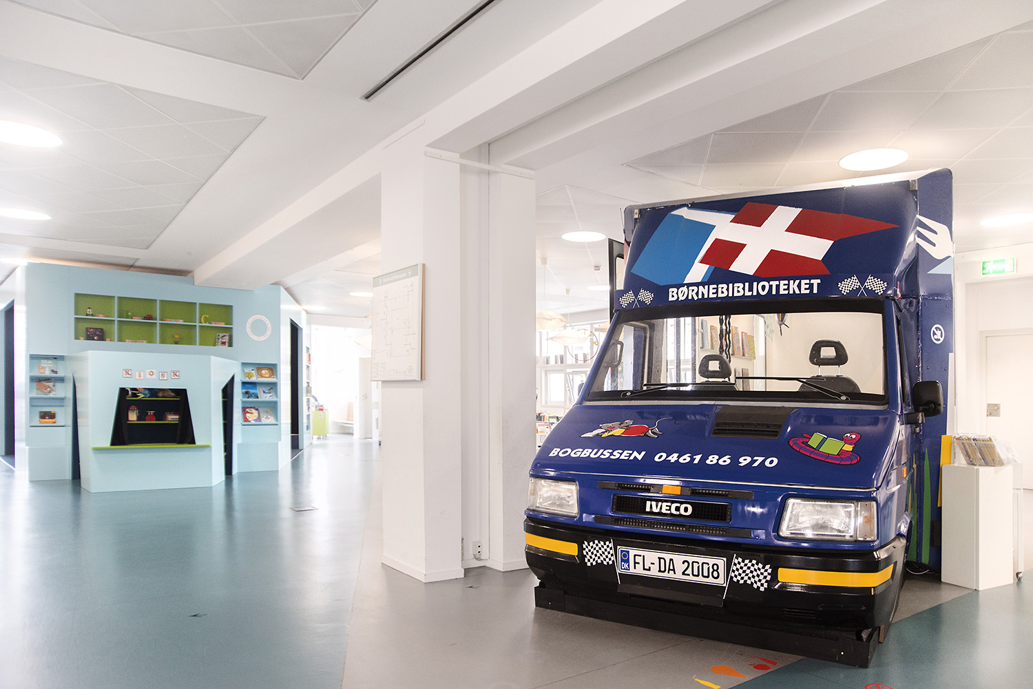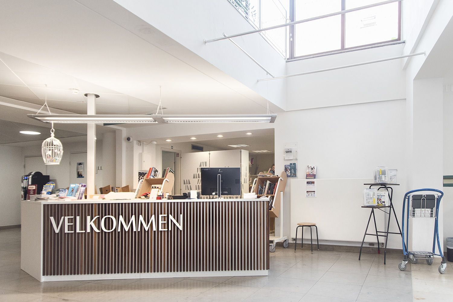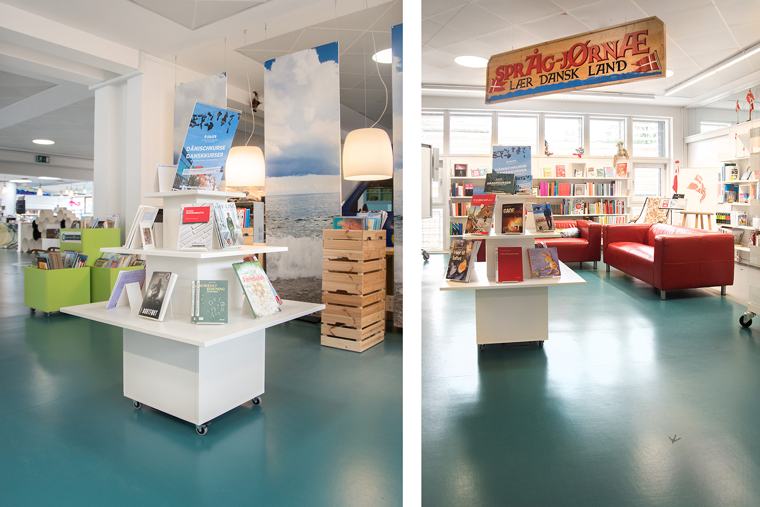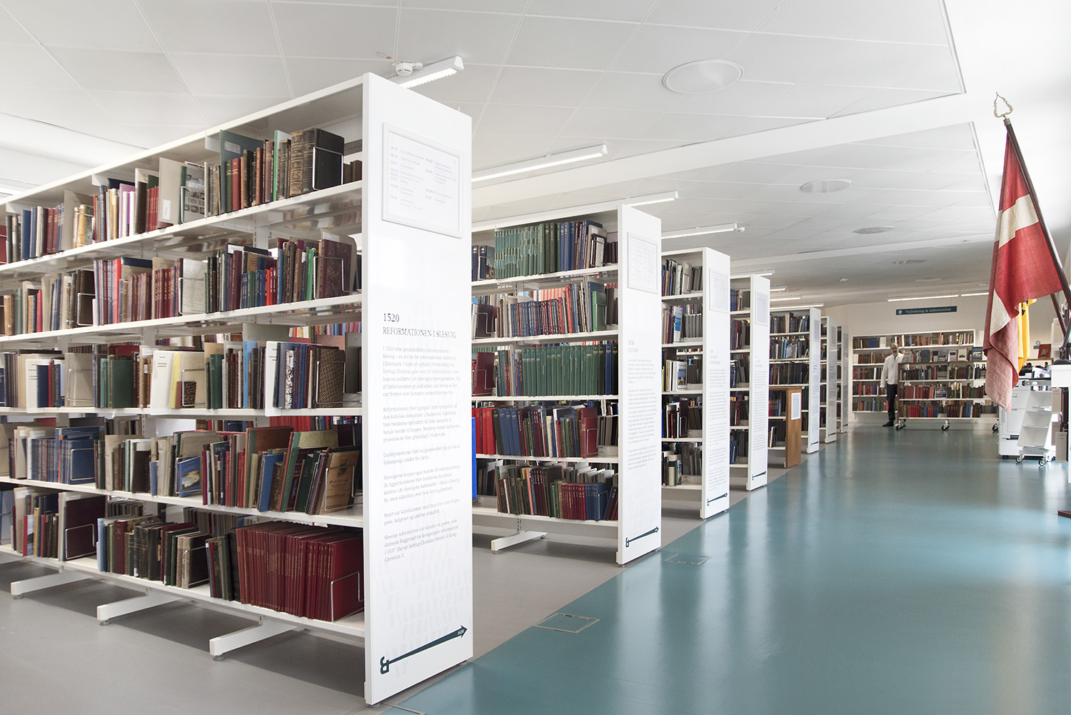 Producten die in de Deense openbare bibliotheek, Flensburg, Duitsland gebruikt worden