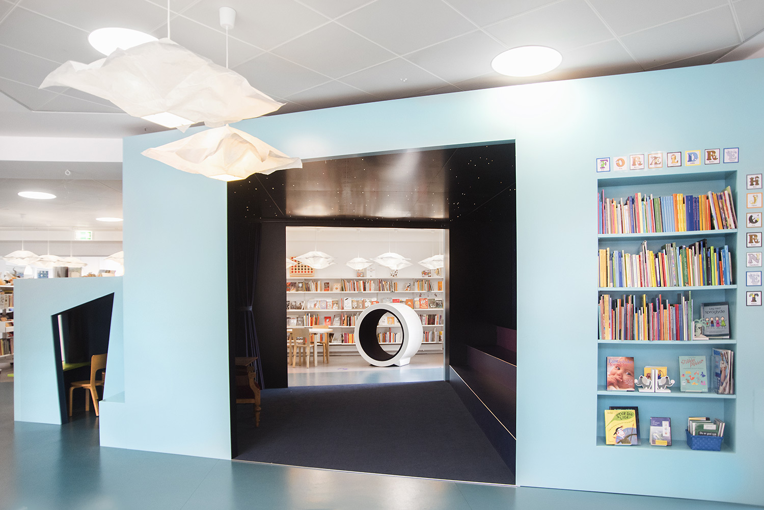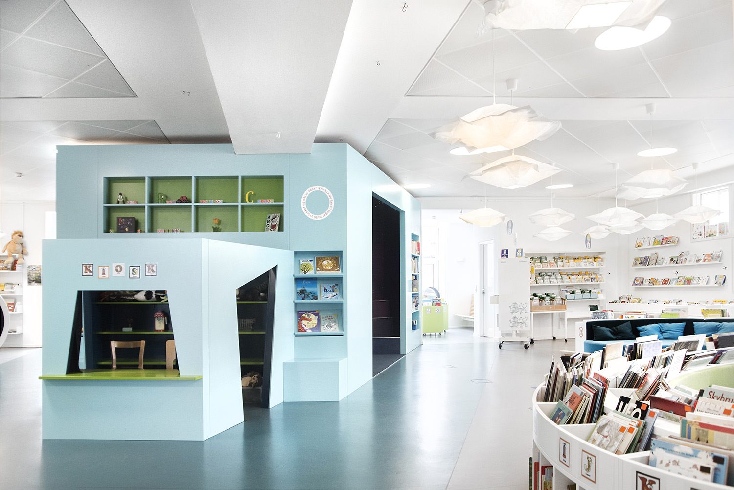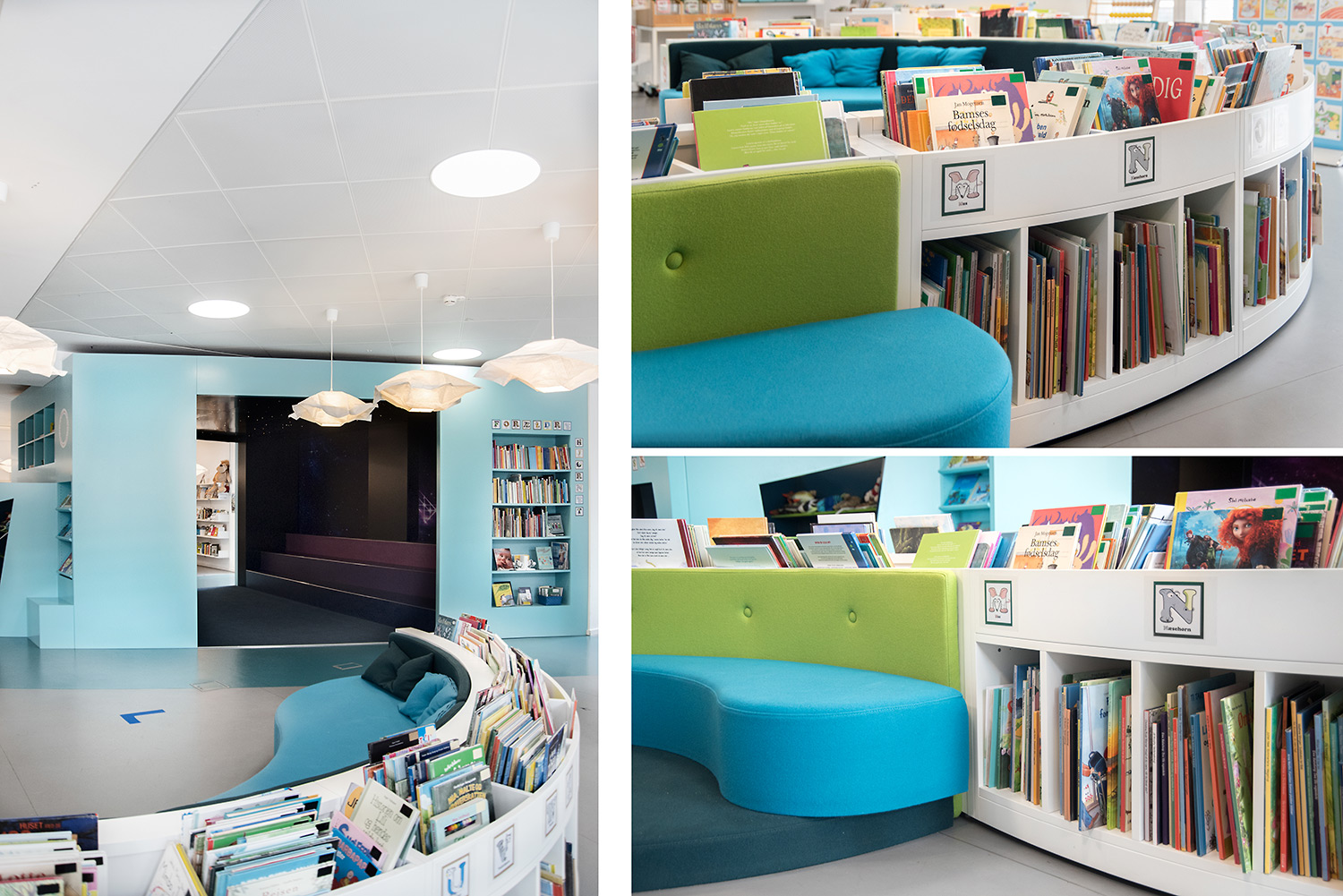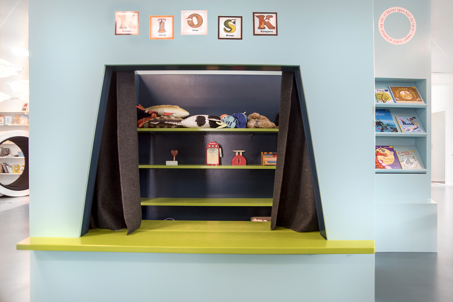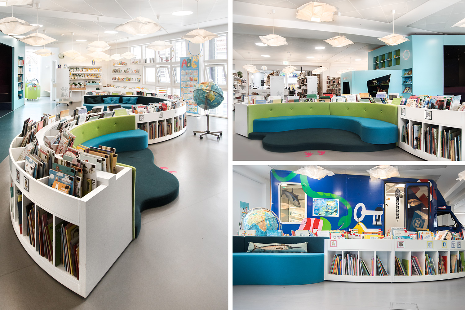 Producten die in de Deense openbare bibliotheek, Flensburg, Duitsland gebruikt worden