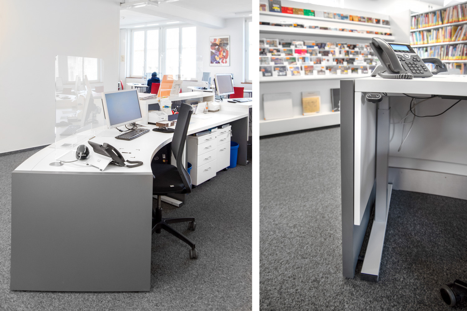 Op de eerste verdieping van de bibliotheek van Freiburg werd een eerste gebogen en in hoogte verstelbare Inform balie geïnstalleerd.