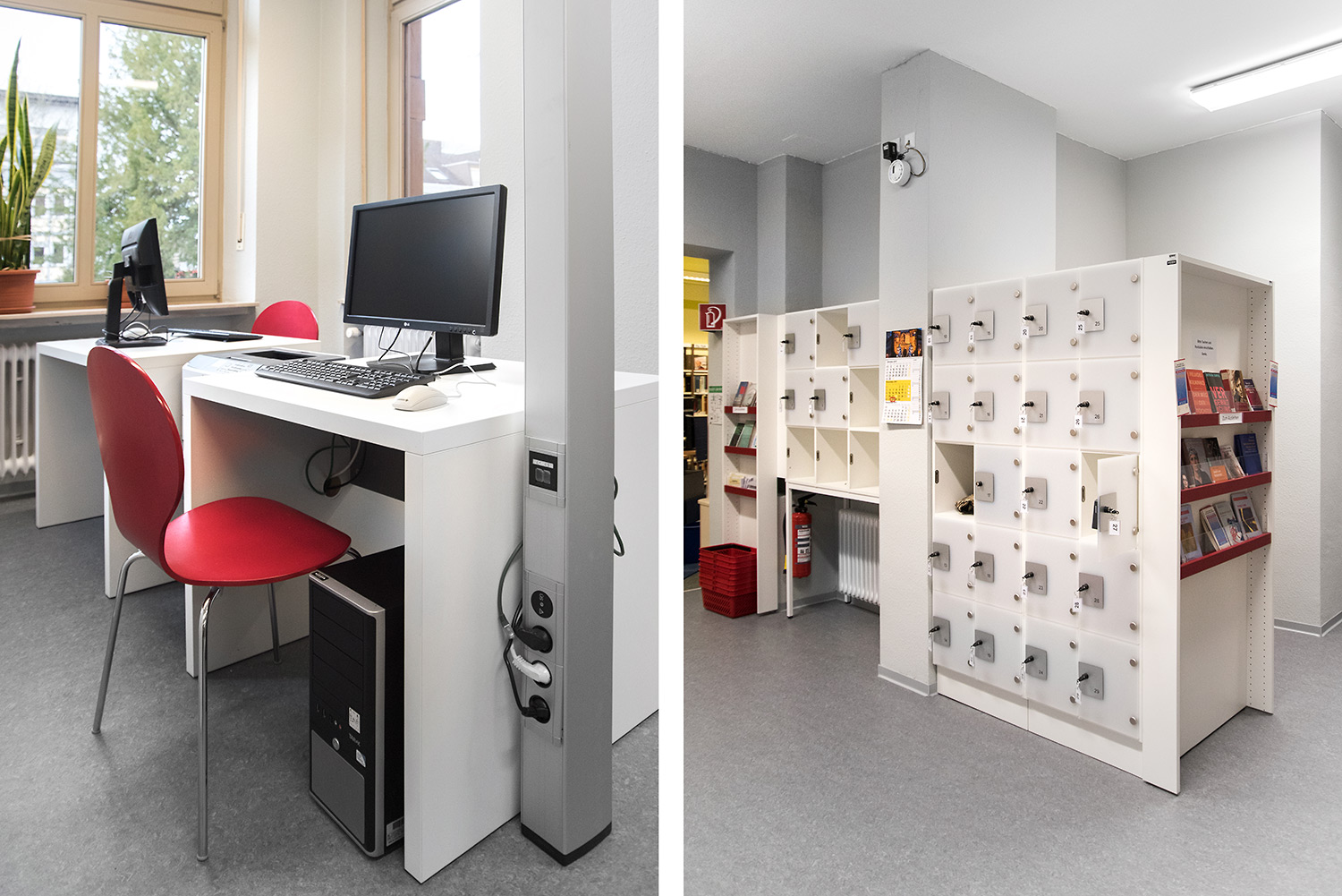 Producten die in de Openbare bibliotheek Speyer, Duitsland gebruikt worden