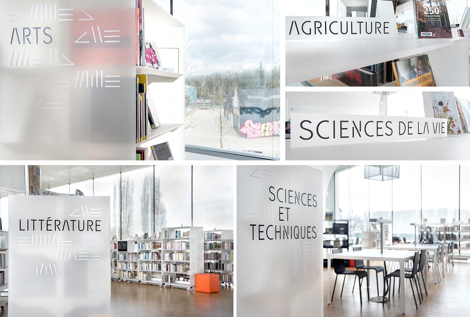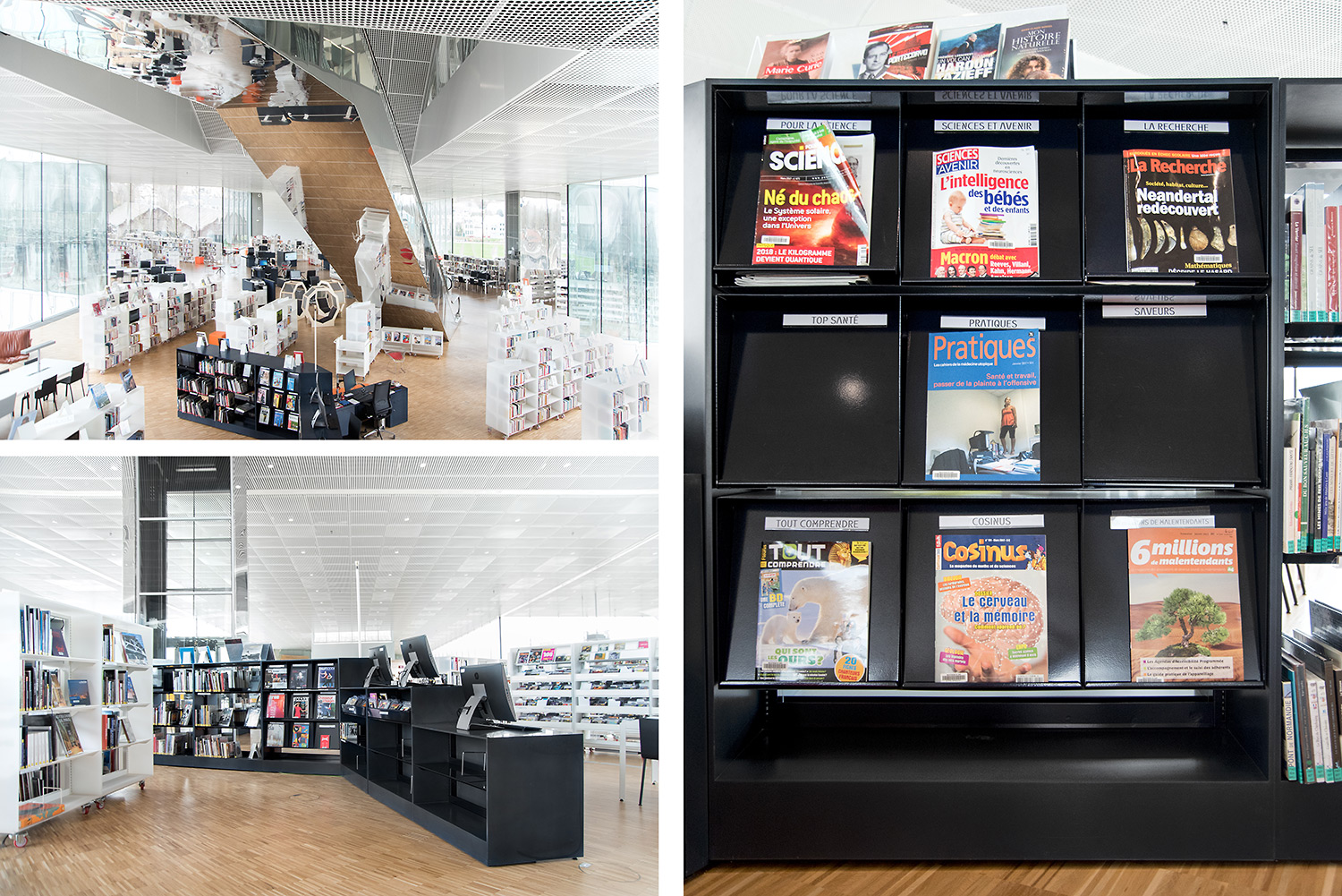 Producten die in de Openbare bibliotheek Alexis de Tocqueville, Caen-la-Mer, Frankrijk gebruikt worden