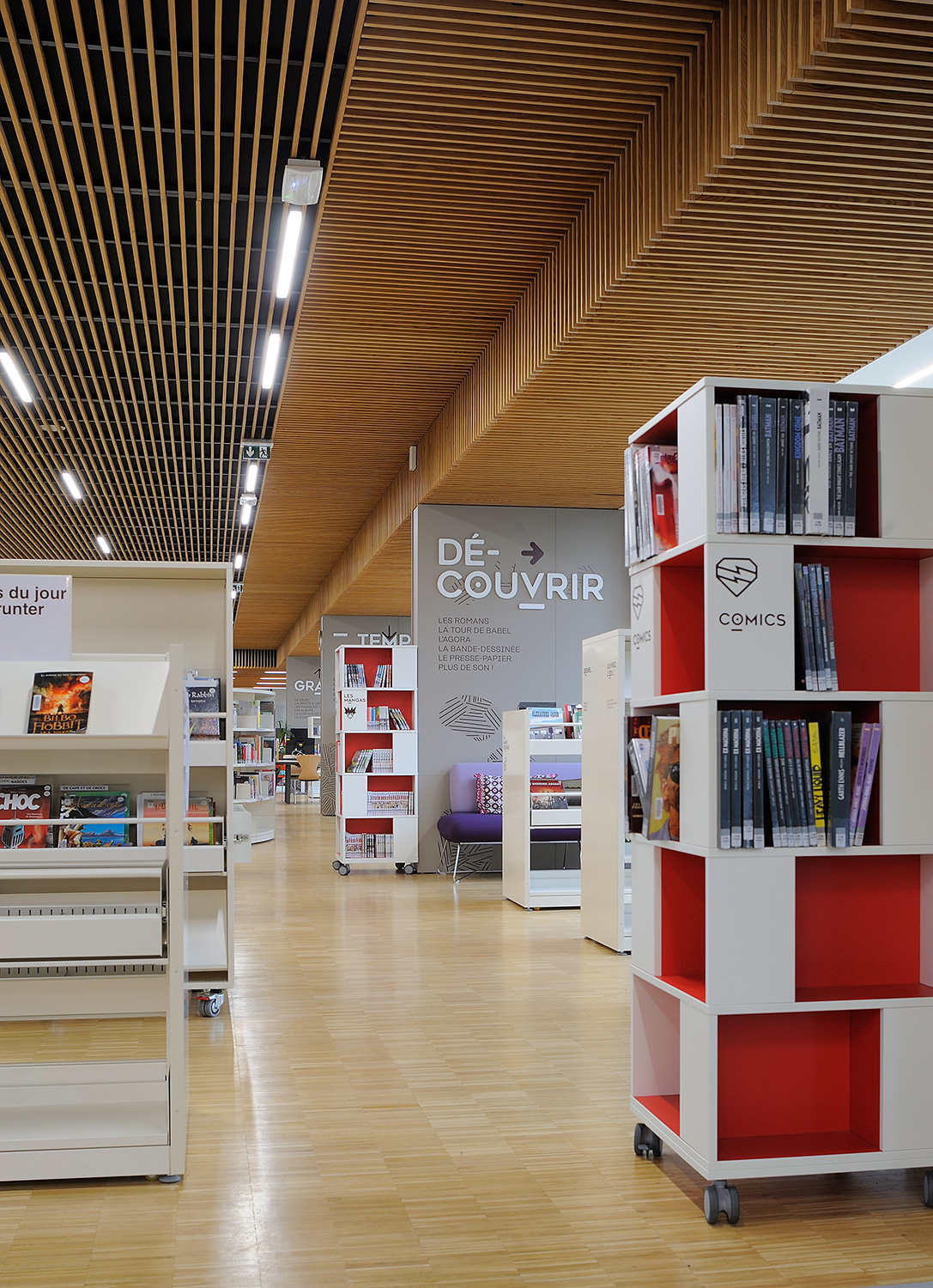 Producten die in de Openbare bibliotheek Gerland, Lyon, Frankrijk gebruikt worden