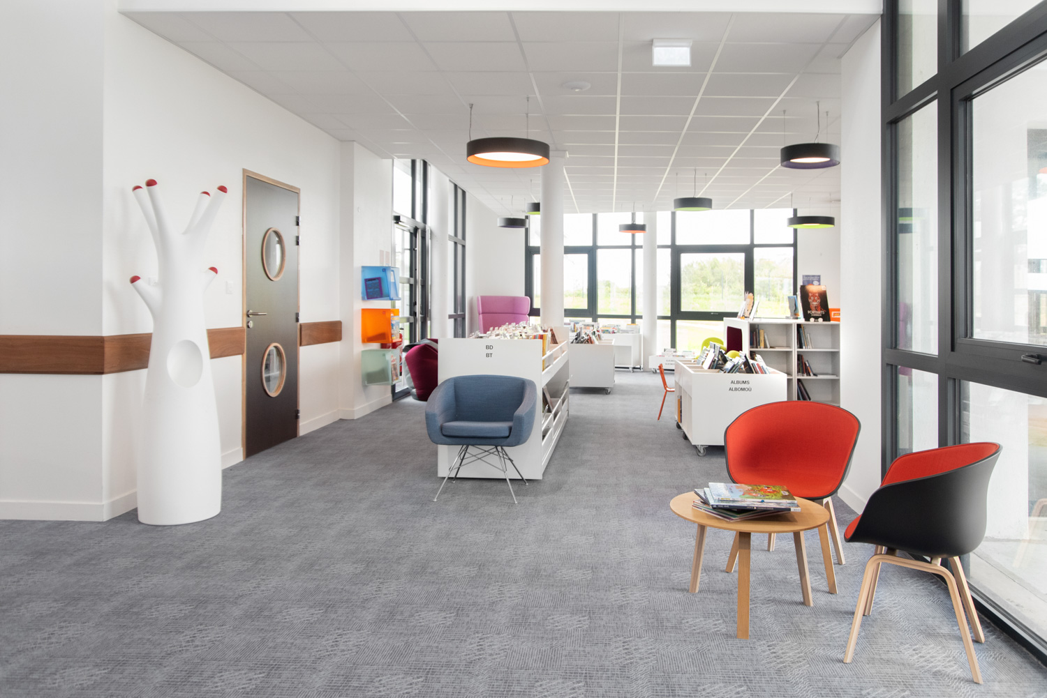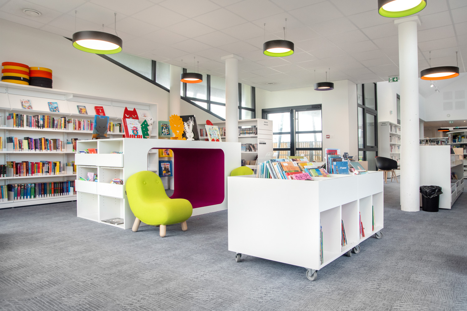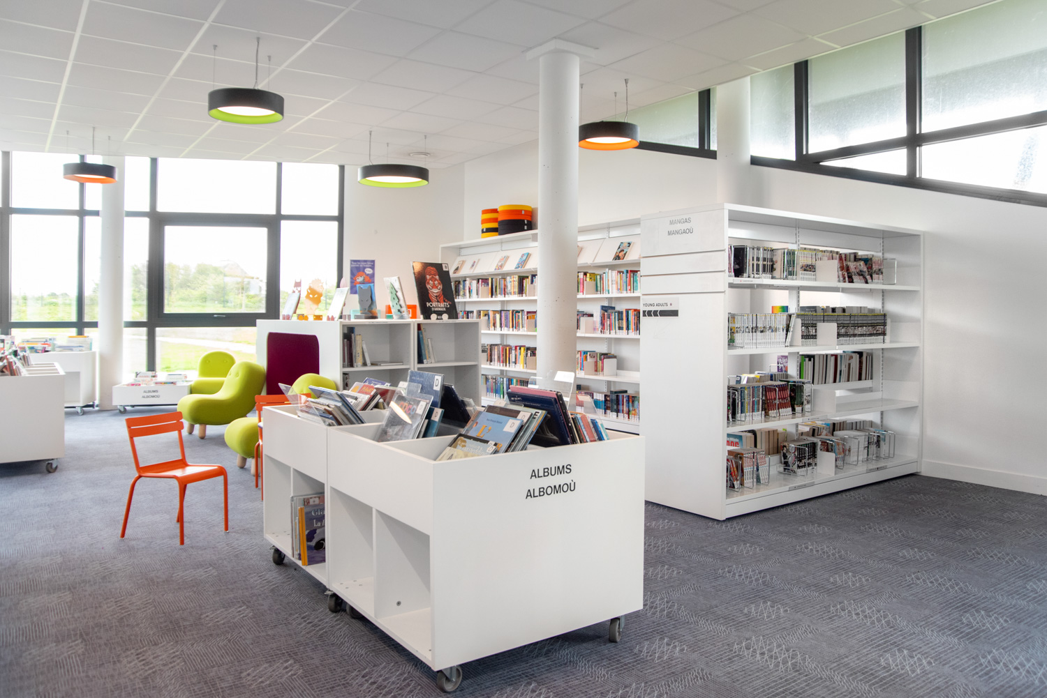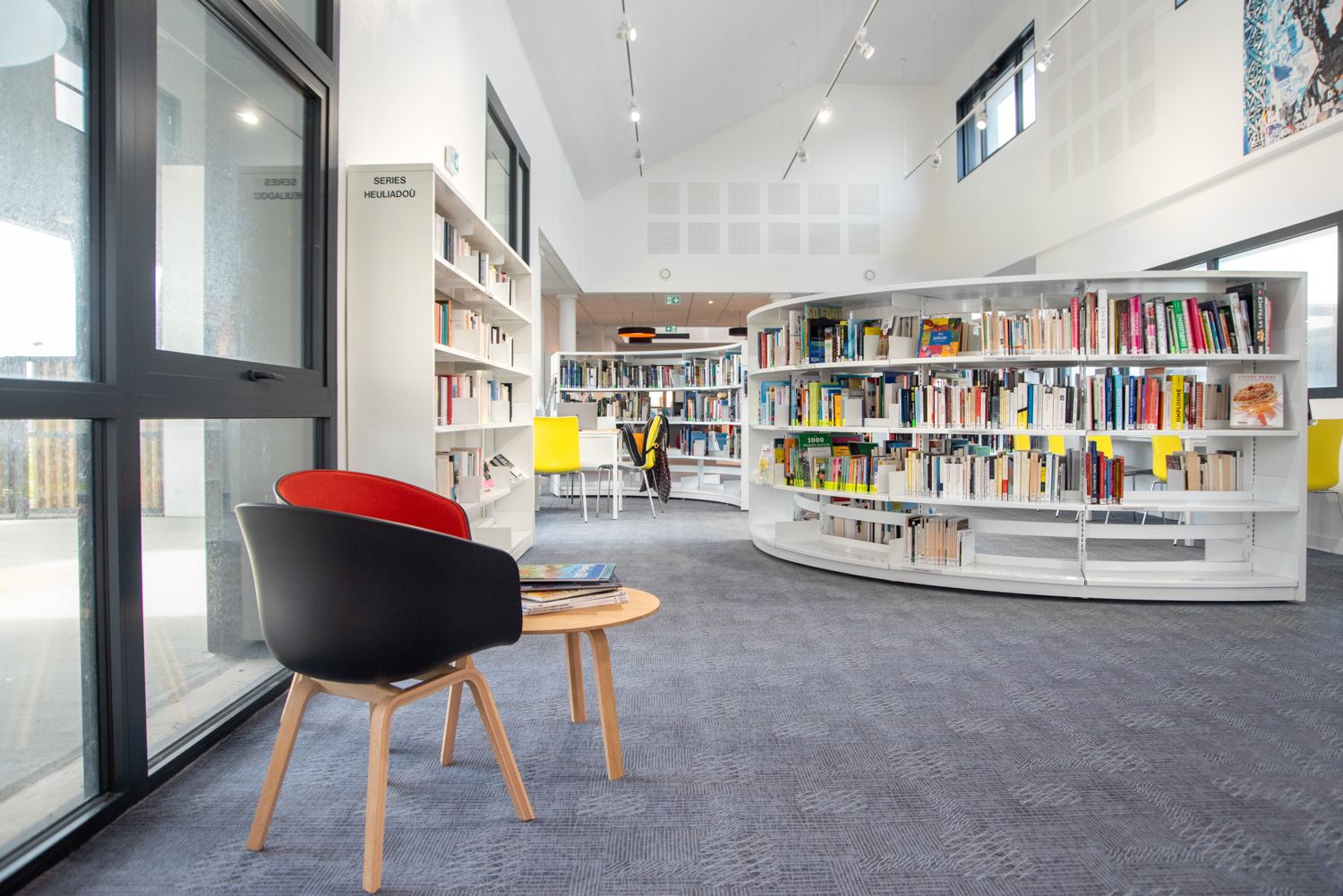 De René Quillivic-mediatheek van Plouhinec opende in december 2020 haar deuren. De bib met bijna 10.000 boeken werd voorzien van origineel meubilair, waaronder Cocoon elementen in de kinderafdeling en gebogen rekkensystemen in de volwassenenafdeling.