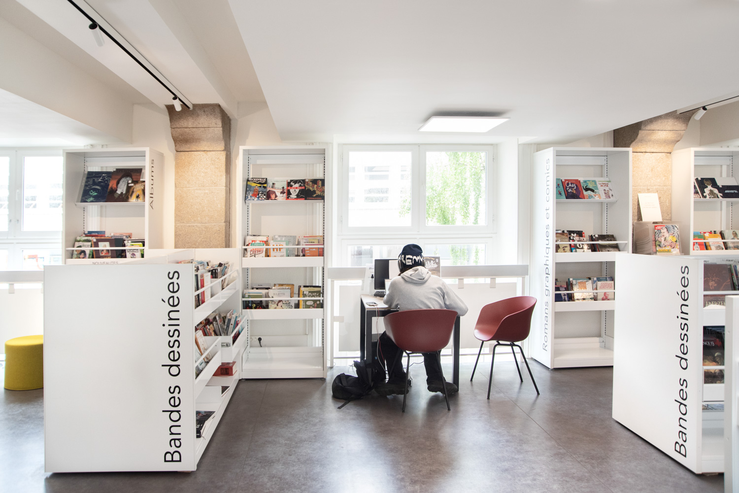 Na anderhalf jaar van werkzaamheden kon de André Malraux-mediatheek in Saint-Brieuc in december 2019 haar deuren weer openen.
