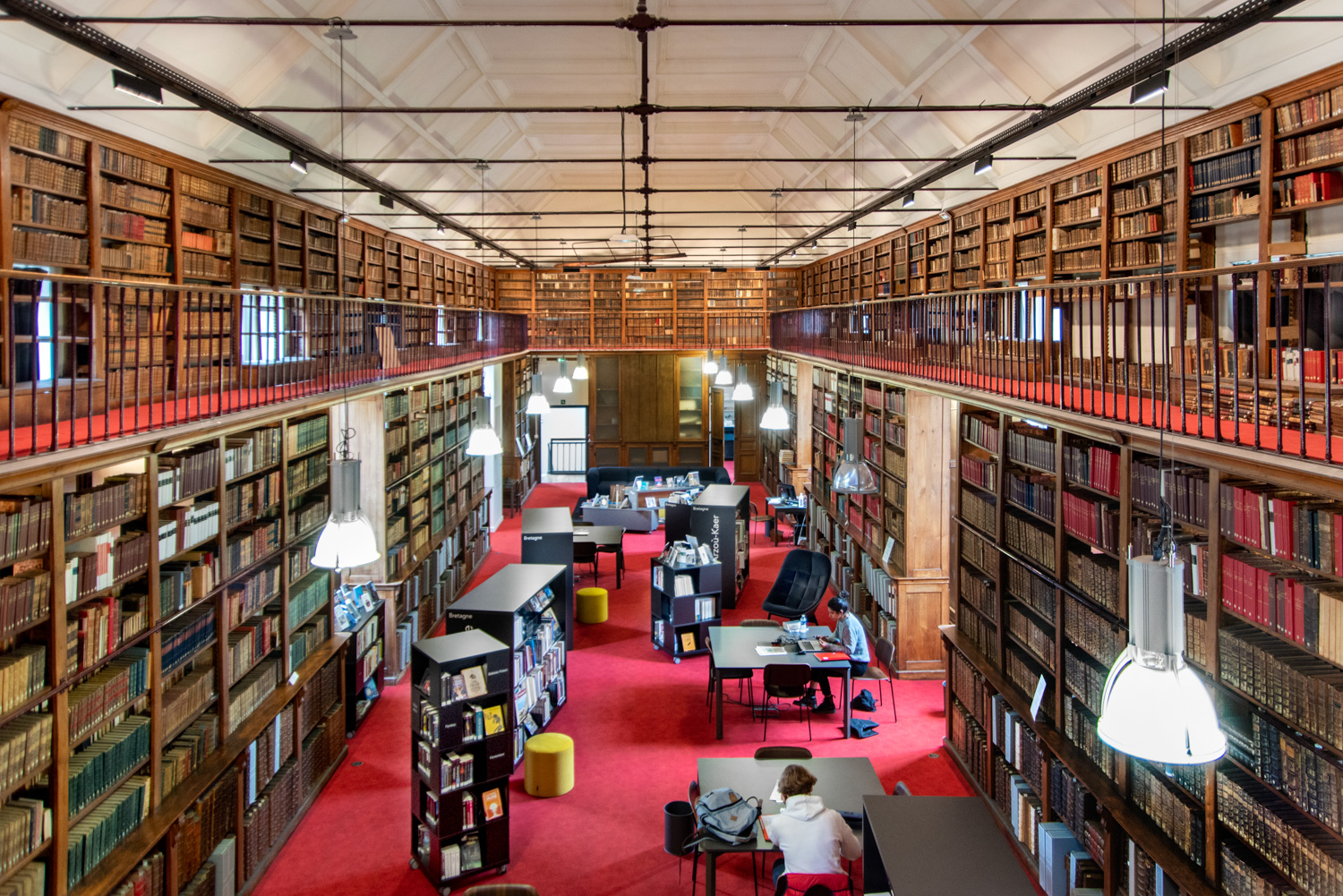 De bibliotheek strekt zich uit over drie verdiepingen en biedt plaats aan 55.000 boeken. De heringerichte ruimte voelt vandaag ruimer en gezelliger aan. Het hele gebouw werd voorzien van meubilair uit ons 60/30 Classic London gamma, inclusief gebogen rekkensystemen op de gelijkvloerse verdieping. Een bezoekje aan de erfgoedruimte op de tweede verdieping wordt warm aanbevolen. Naast de vrijstaande zwarte rekken die contrasteren met het rode tapijt, zijn vooral de hoge authentieke eiken rekken tegen de muren echte eyecatchers.
