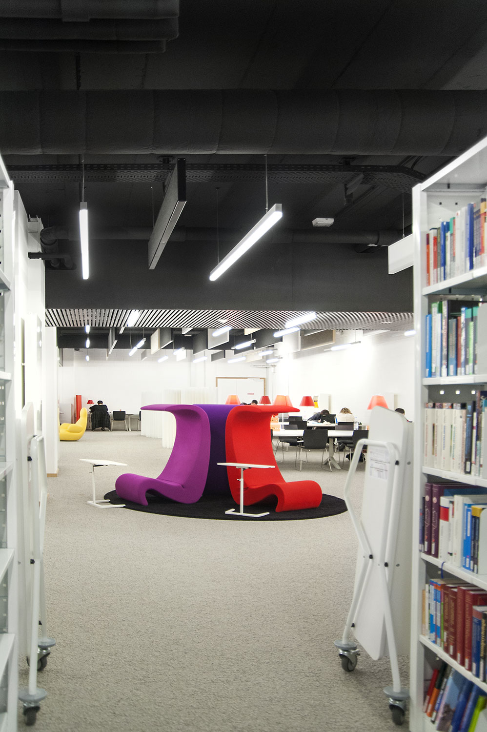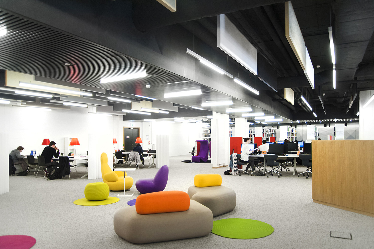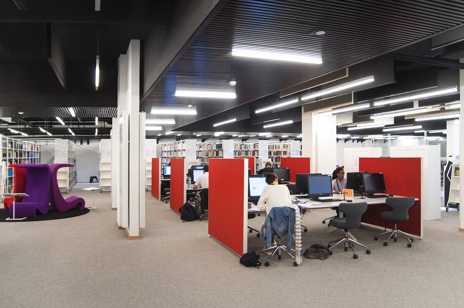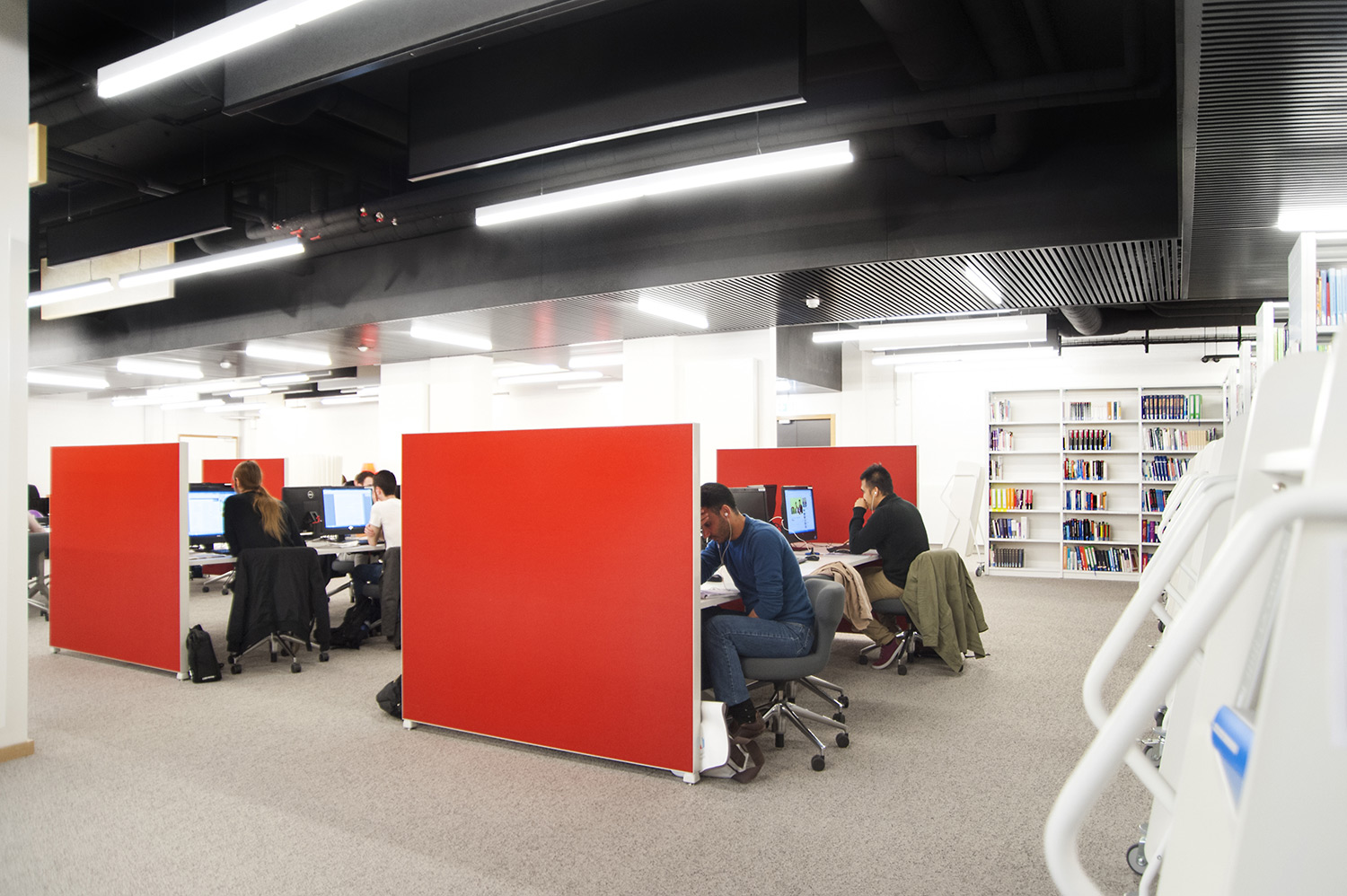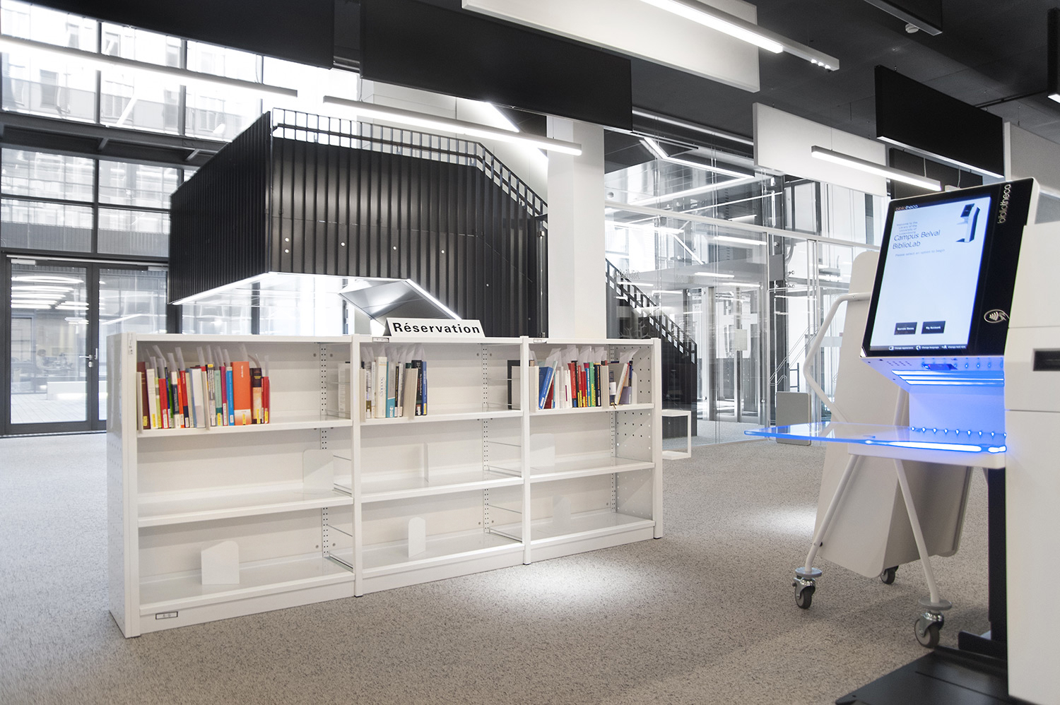 Hoewel het om tijdelijke huisvesting van de universiteitsbibliotheek van Campus Belval gaat, werd de ruimte nauwgezet ingericht volgens de noden en wensen van de studenten