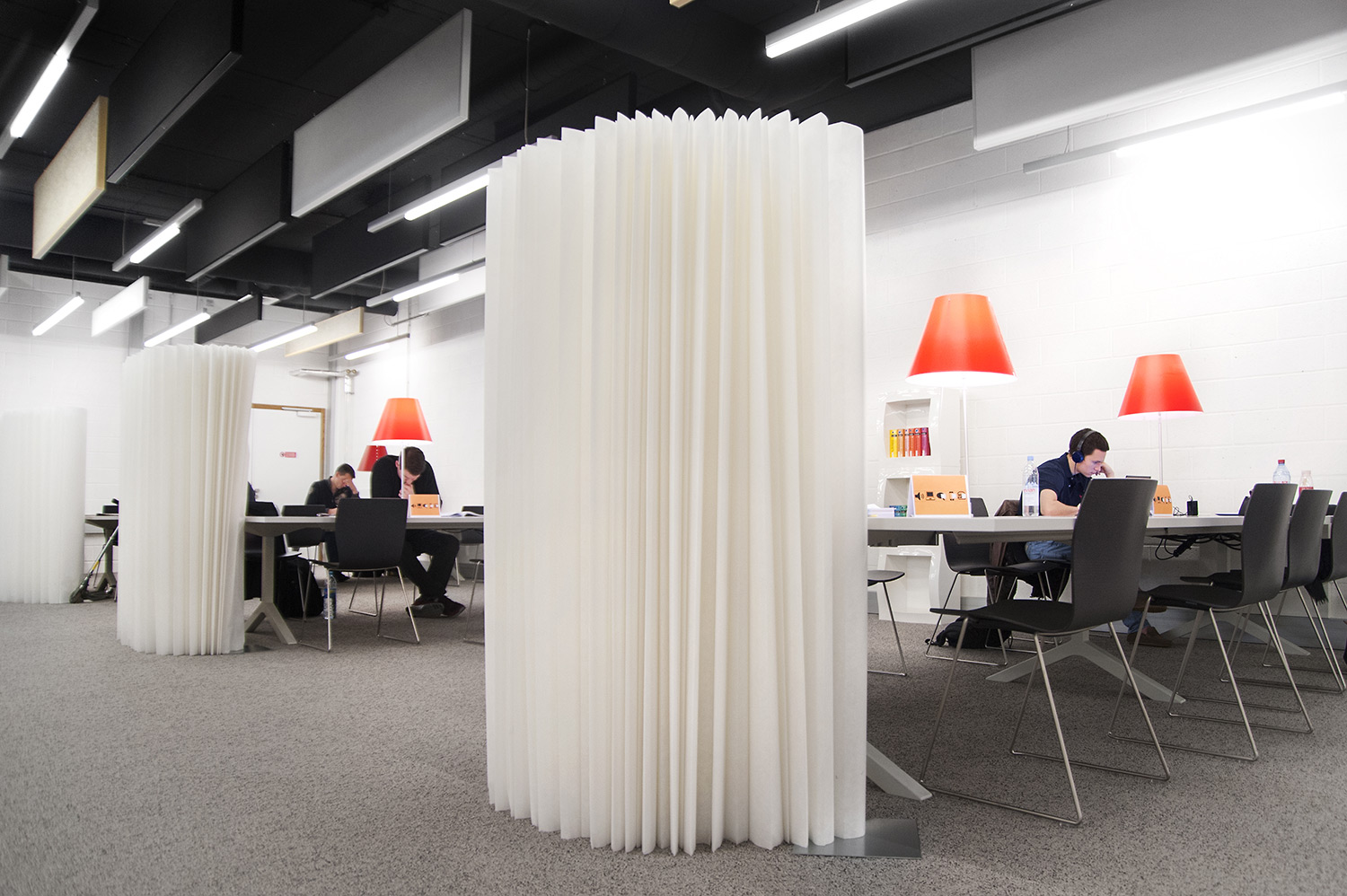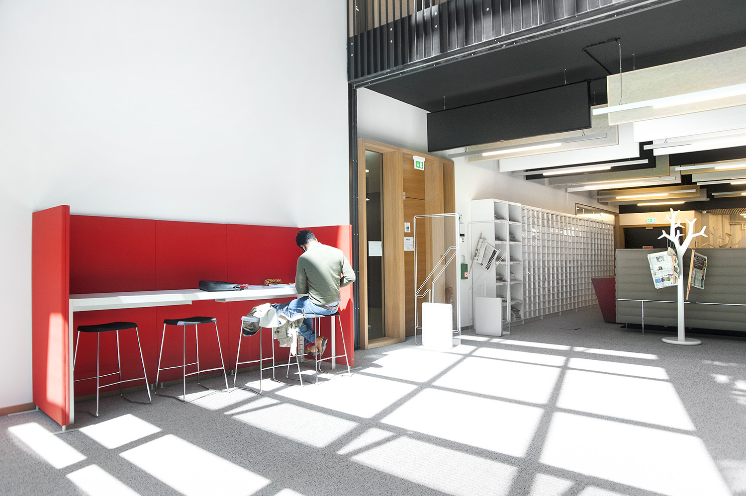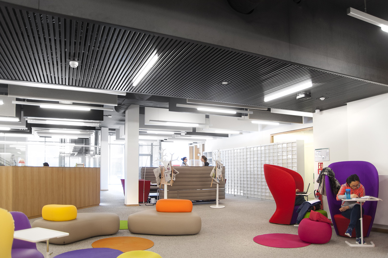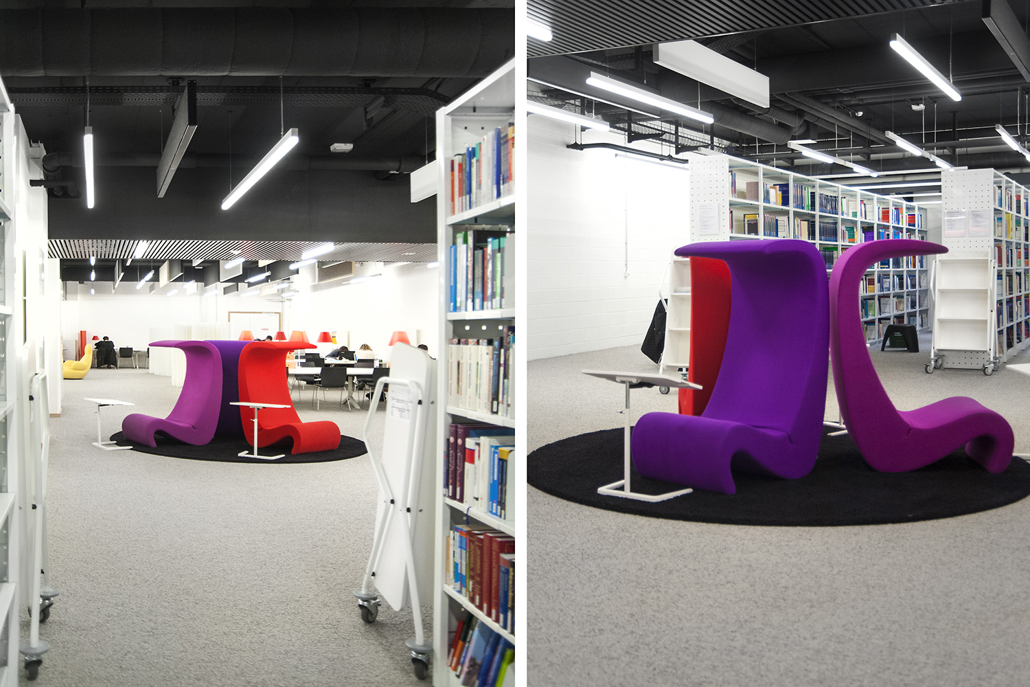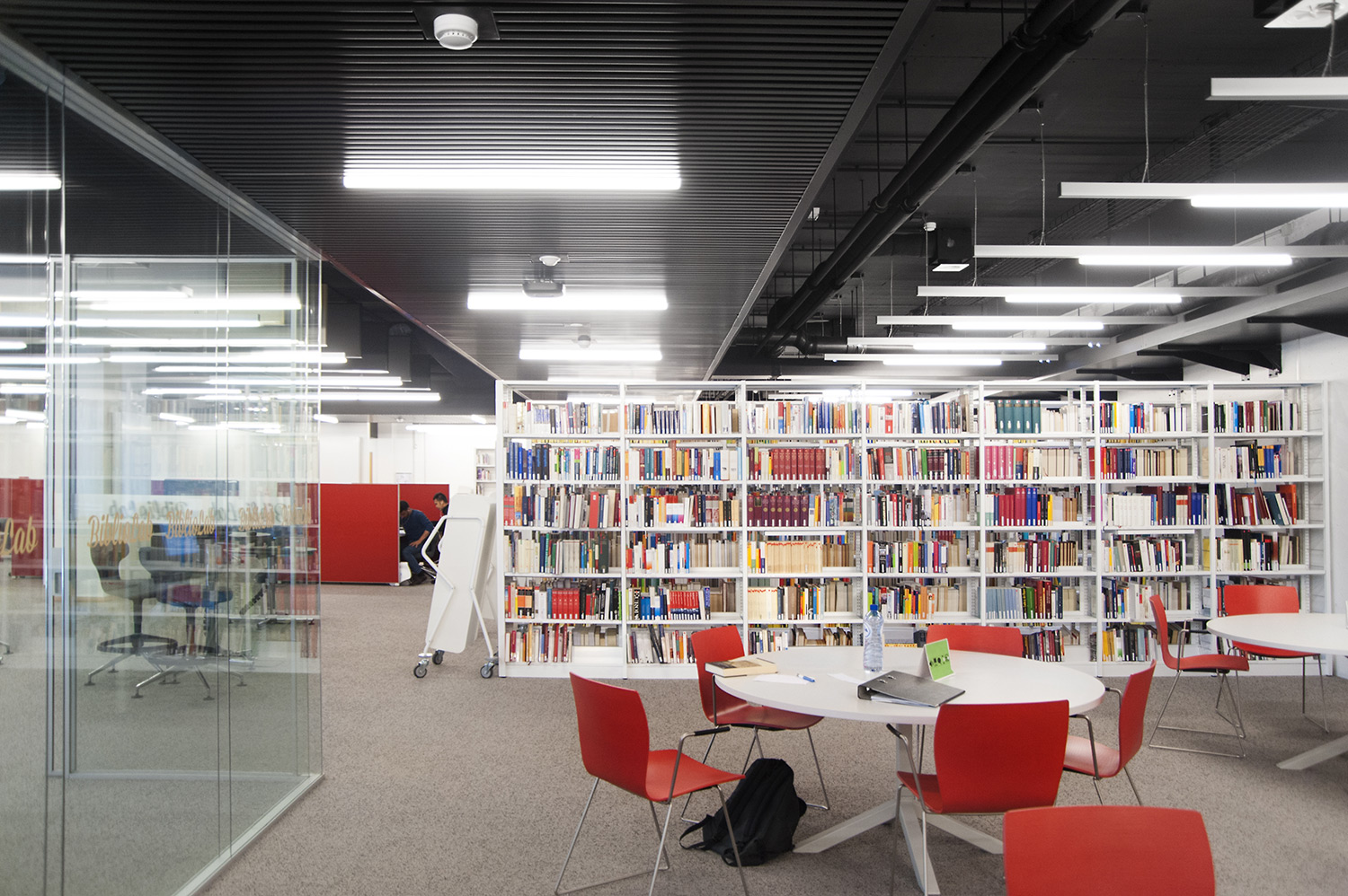 Hoewel het om tijdelijke huisvesting van de universiteitsbibliotheek van Campus Belval gaat, werd de ruimte nauwgezet ingericht volgens de noden en wensen van de studenten