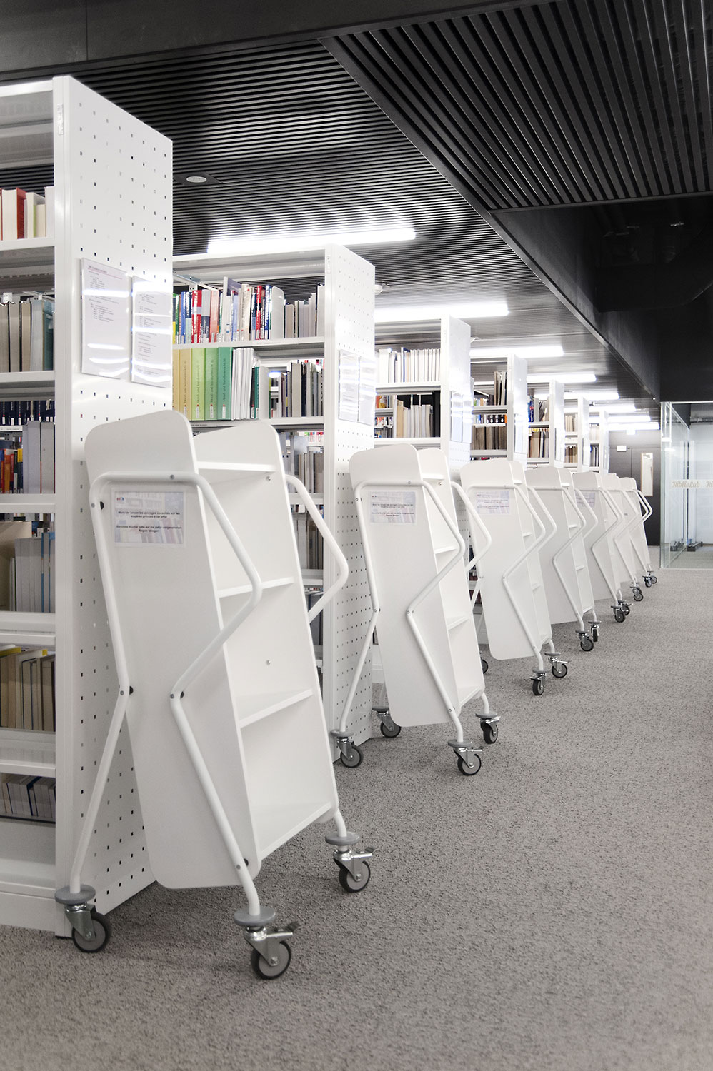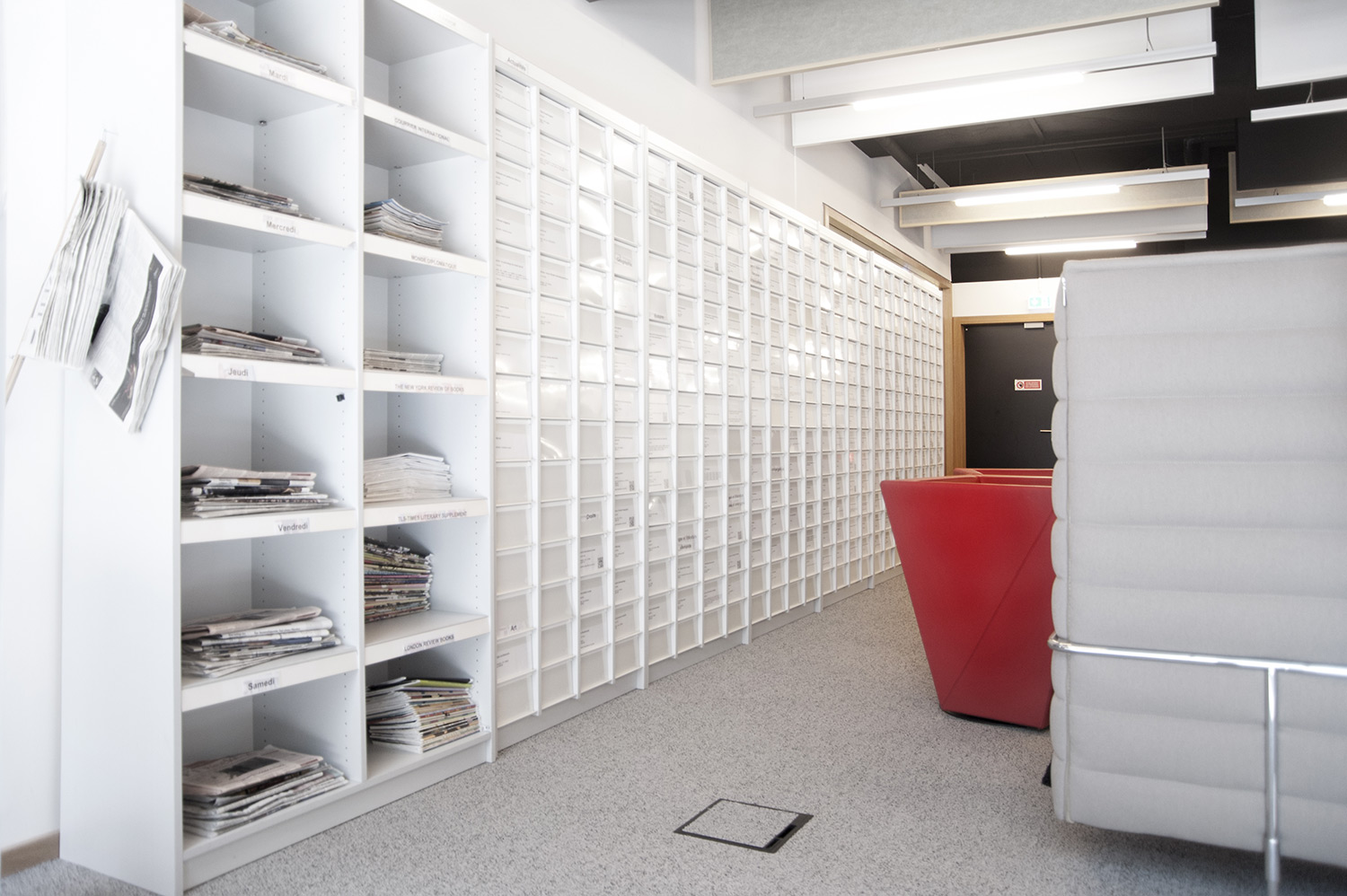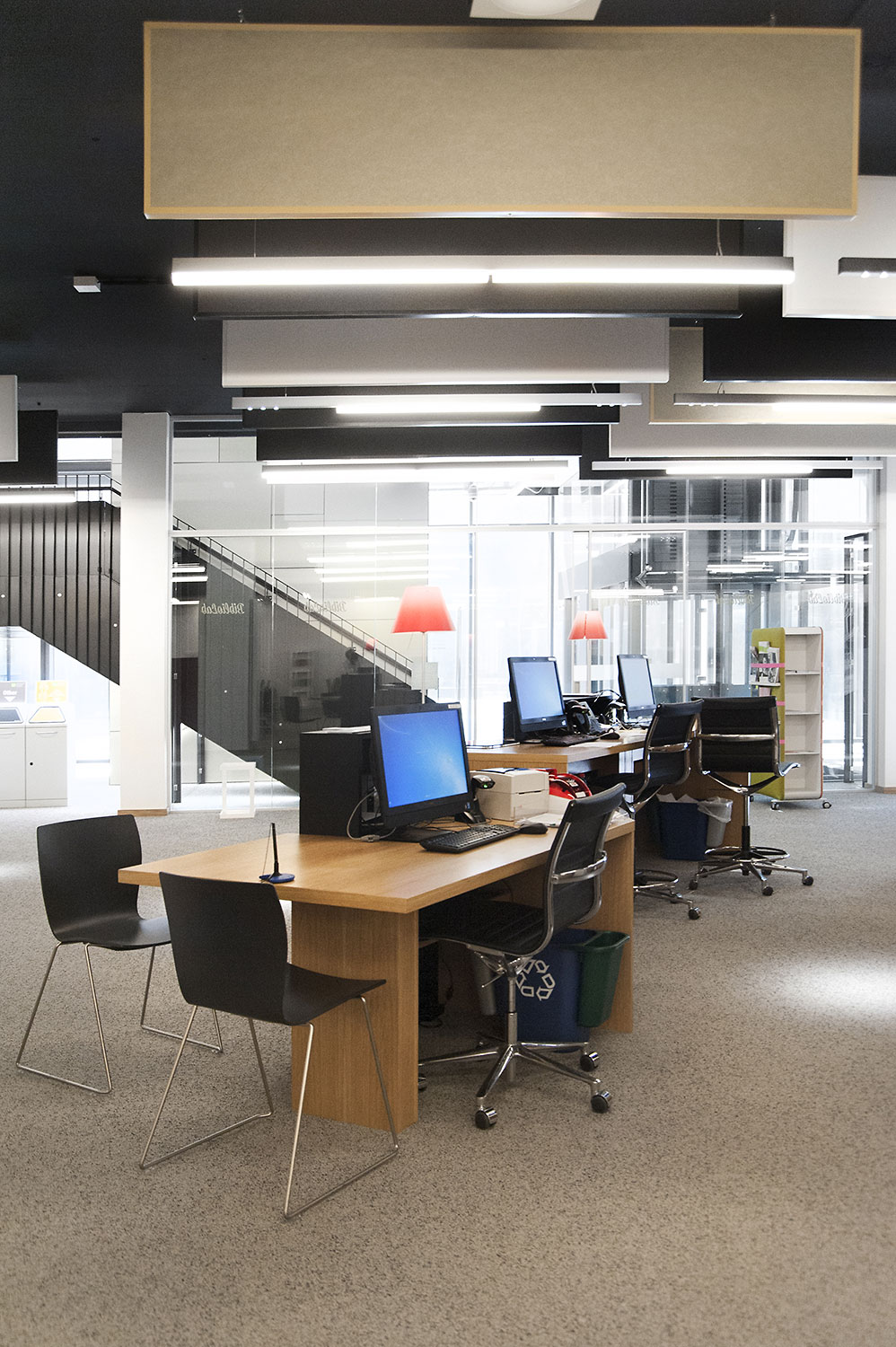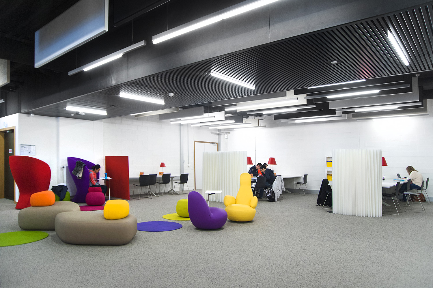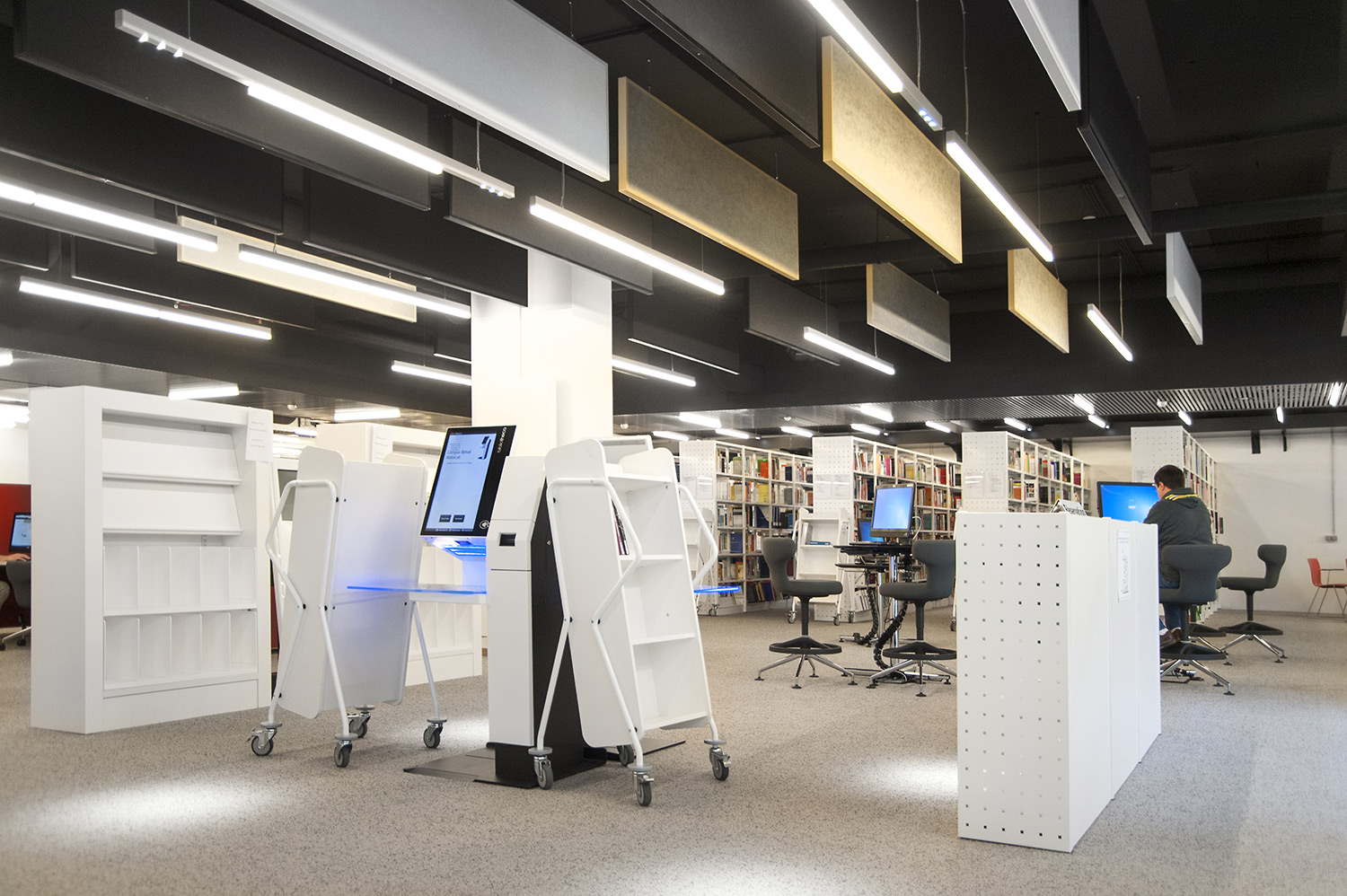 Hoewel het om tijdelijke huisvesting van de universiteitsbibliotheek van Campus Belval gaat, werd de ruimte nauwgezet ingericht volgens de noden en wensen van de studenten