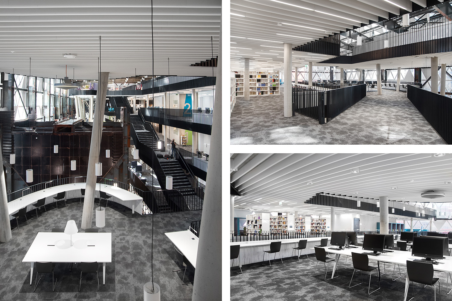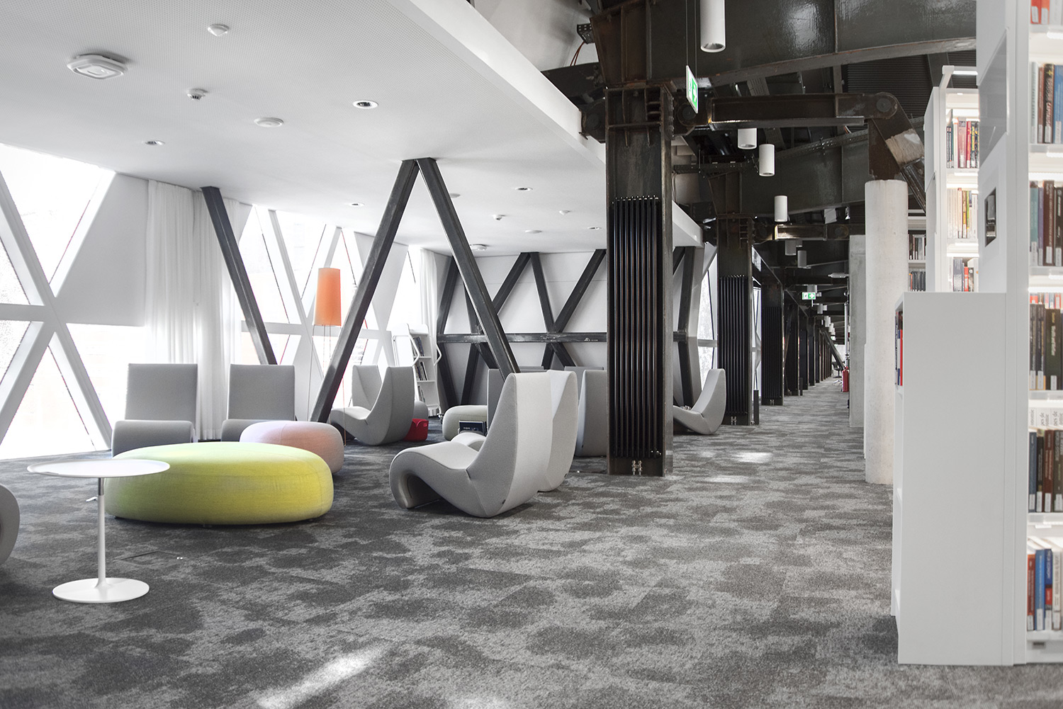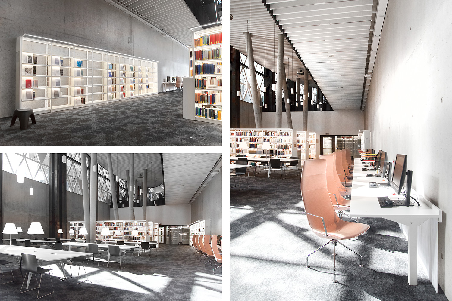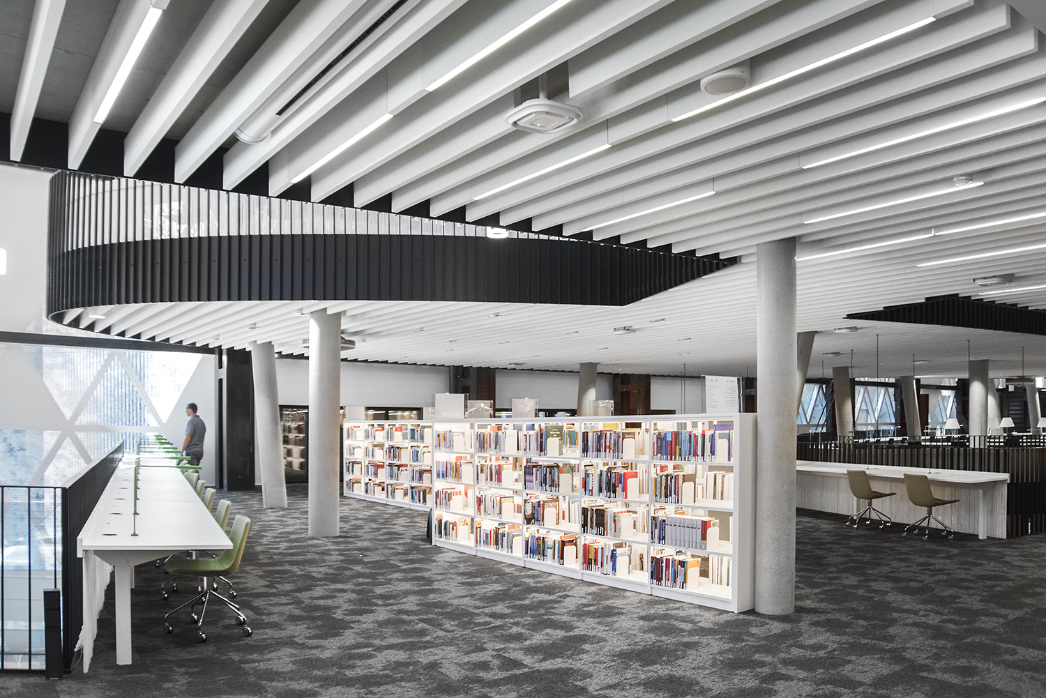 De verbluffende architectuur en het hoge kwaliteitsmeubilair vormen een aantrekkelijk en flexibel kader voor de wetenschappelijke bibliotheek en maken ze tot een aangename plek maken om te werken en kennis te delen.