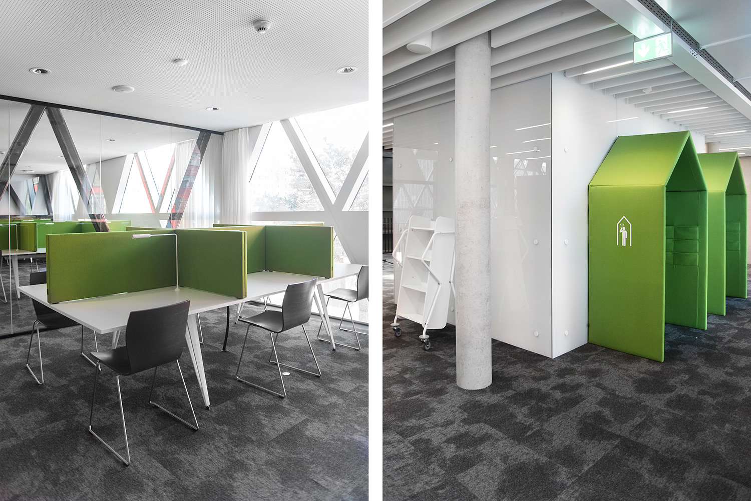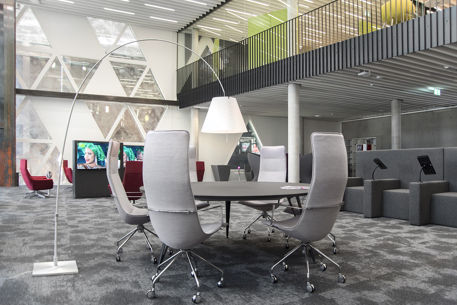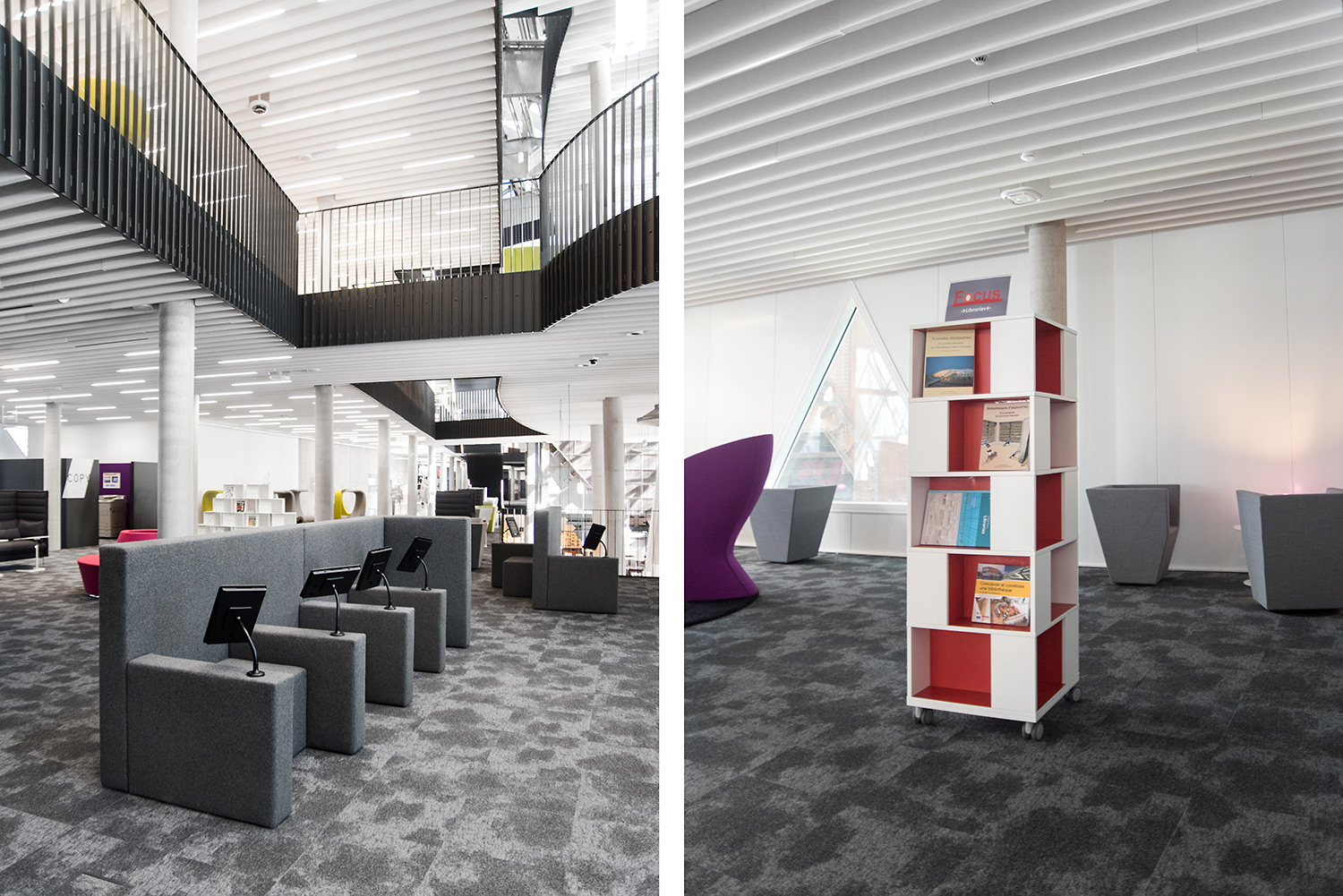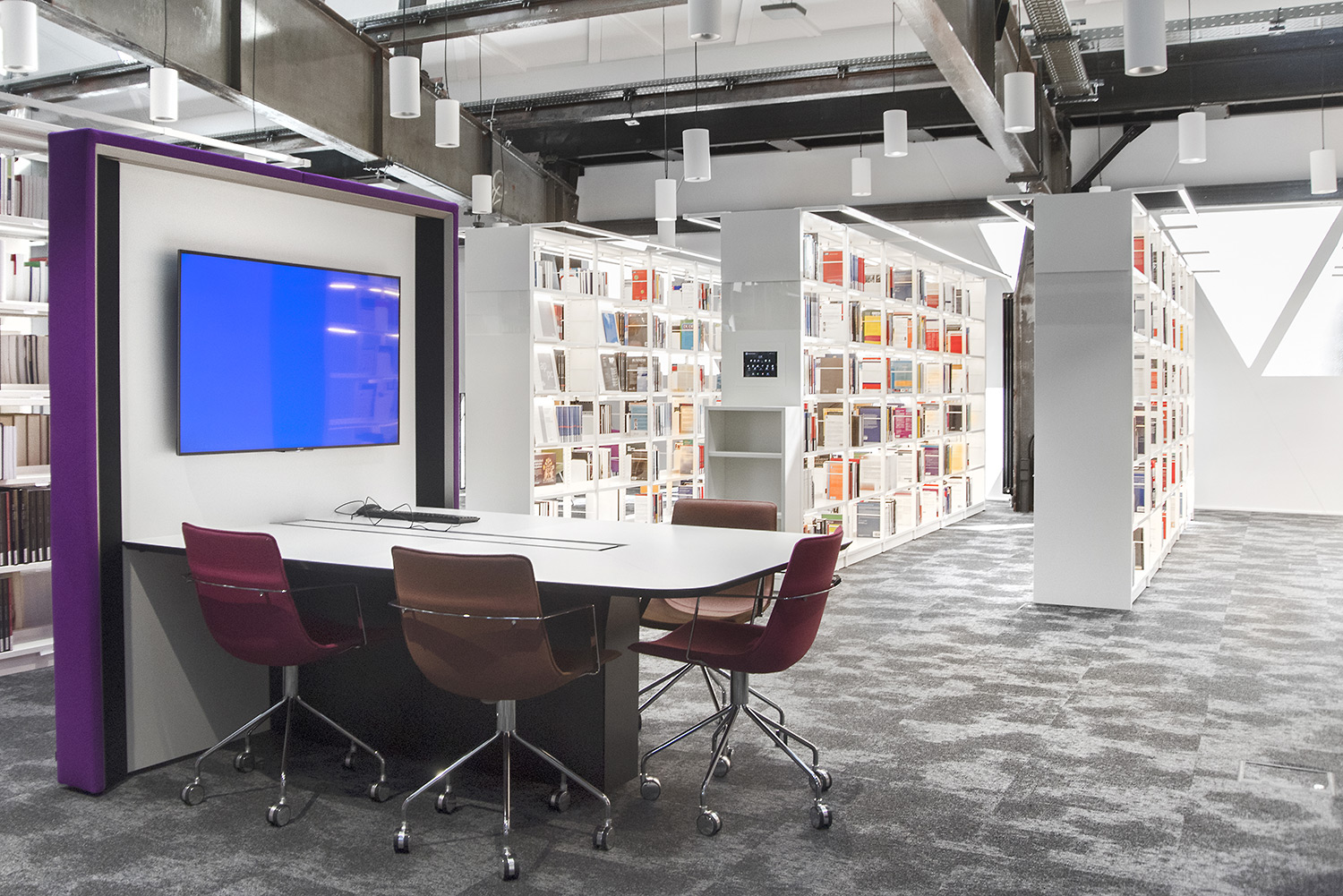 De verbluffende architectuur en het hoge kwaliteitsmeubilair vormen een aantrekkelijk en flexibel kader voor de wetenschappelijke bibliotheek en maken ze tot een aangename plek maken om te werken en kennis te delen.
