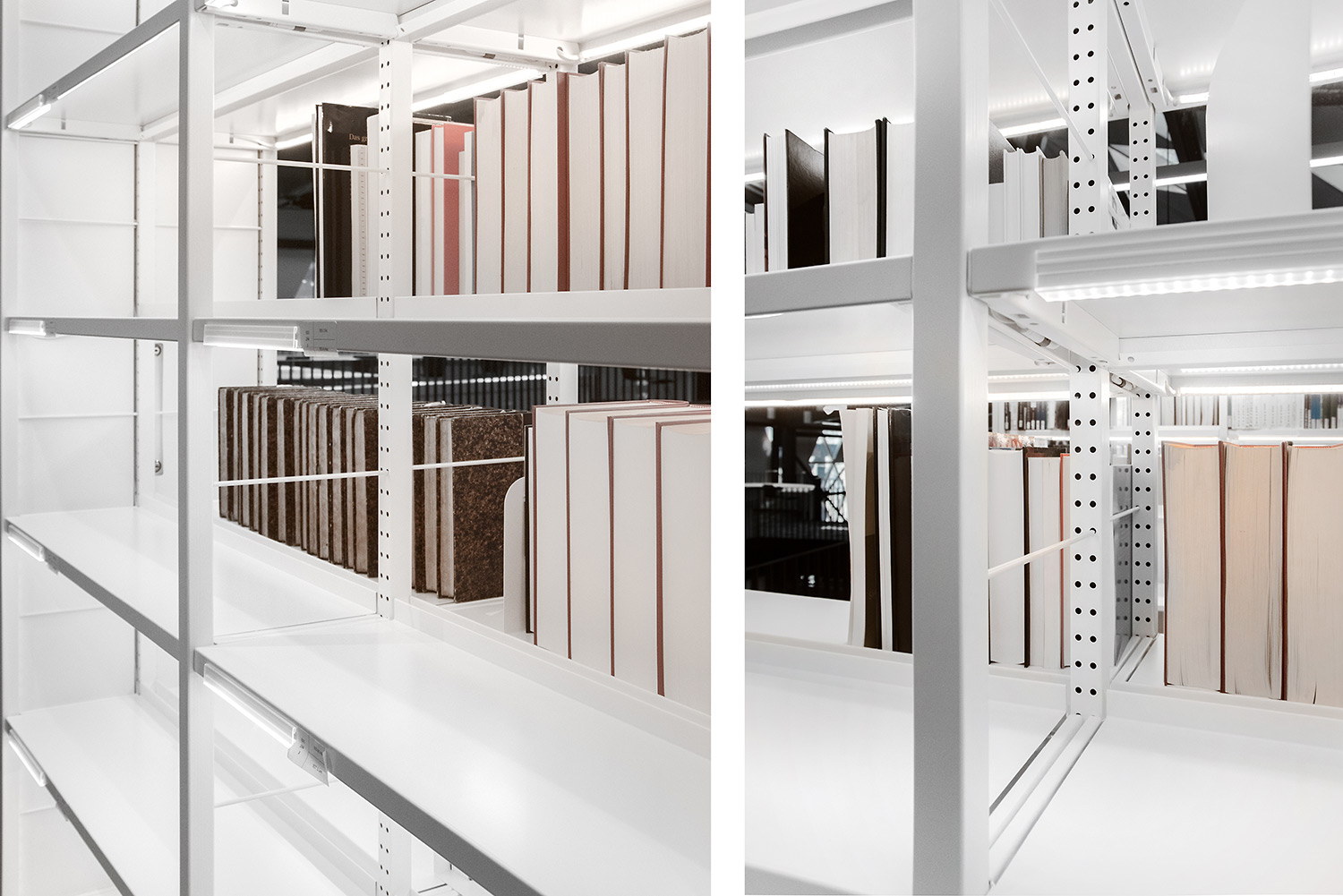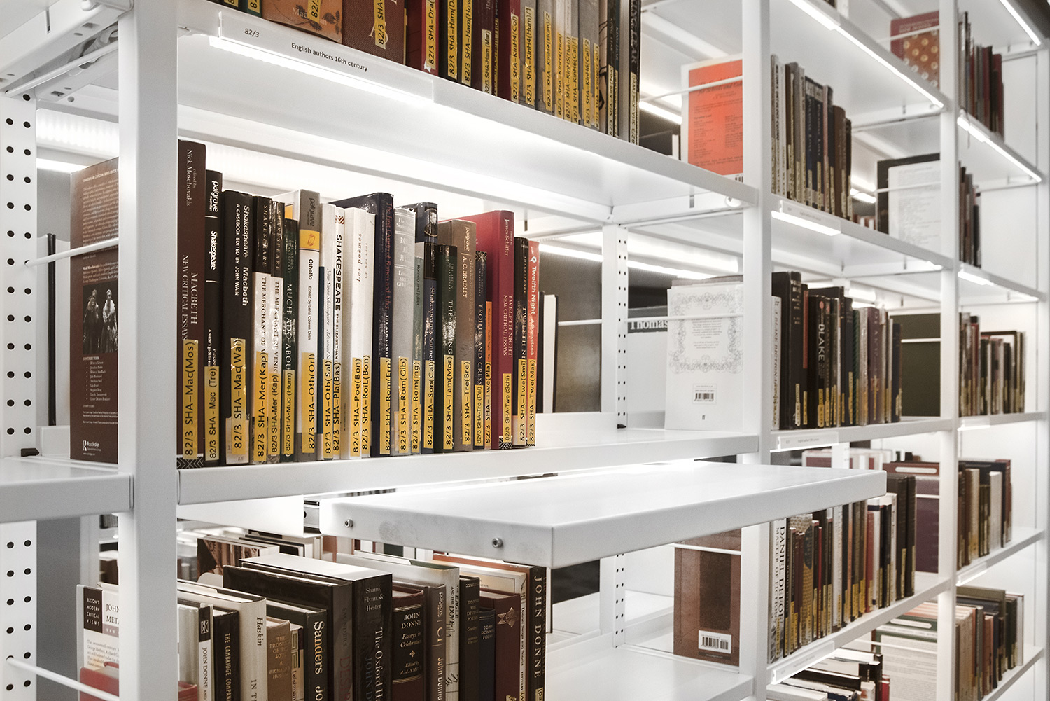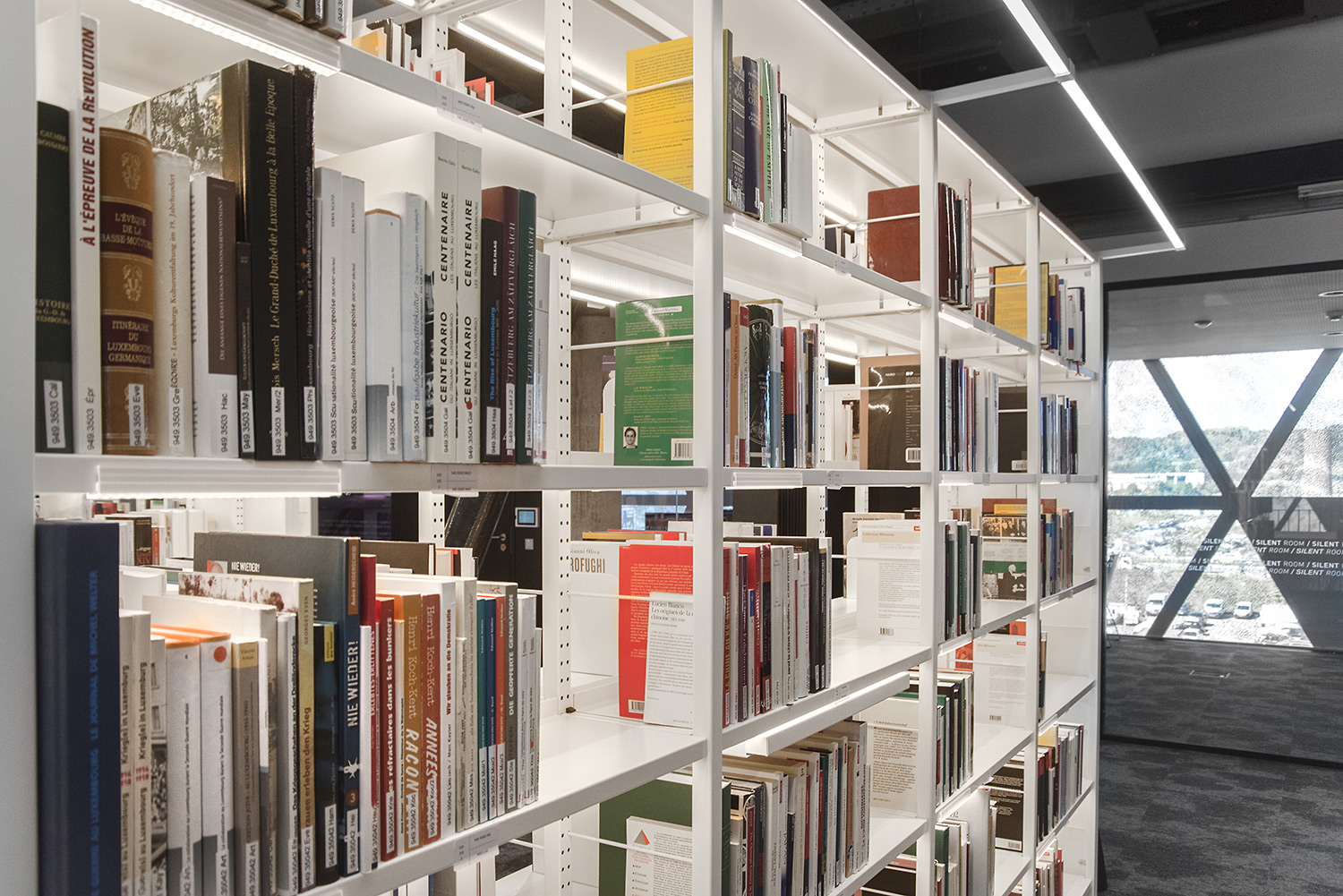 Helder in design, praktisch in gebruik, strekt ons Uniflex bibliotheekrek met geïntegreerde LED verlichting zich uit over 5 verdiepingen. Goed voor 10.7km aan legborden !