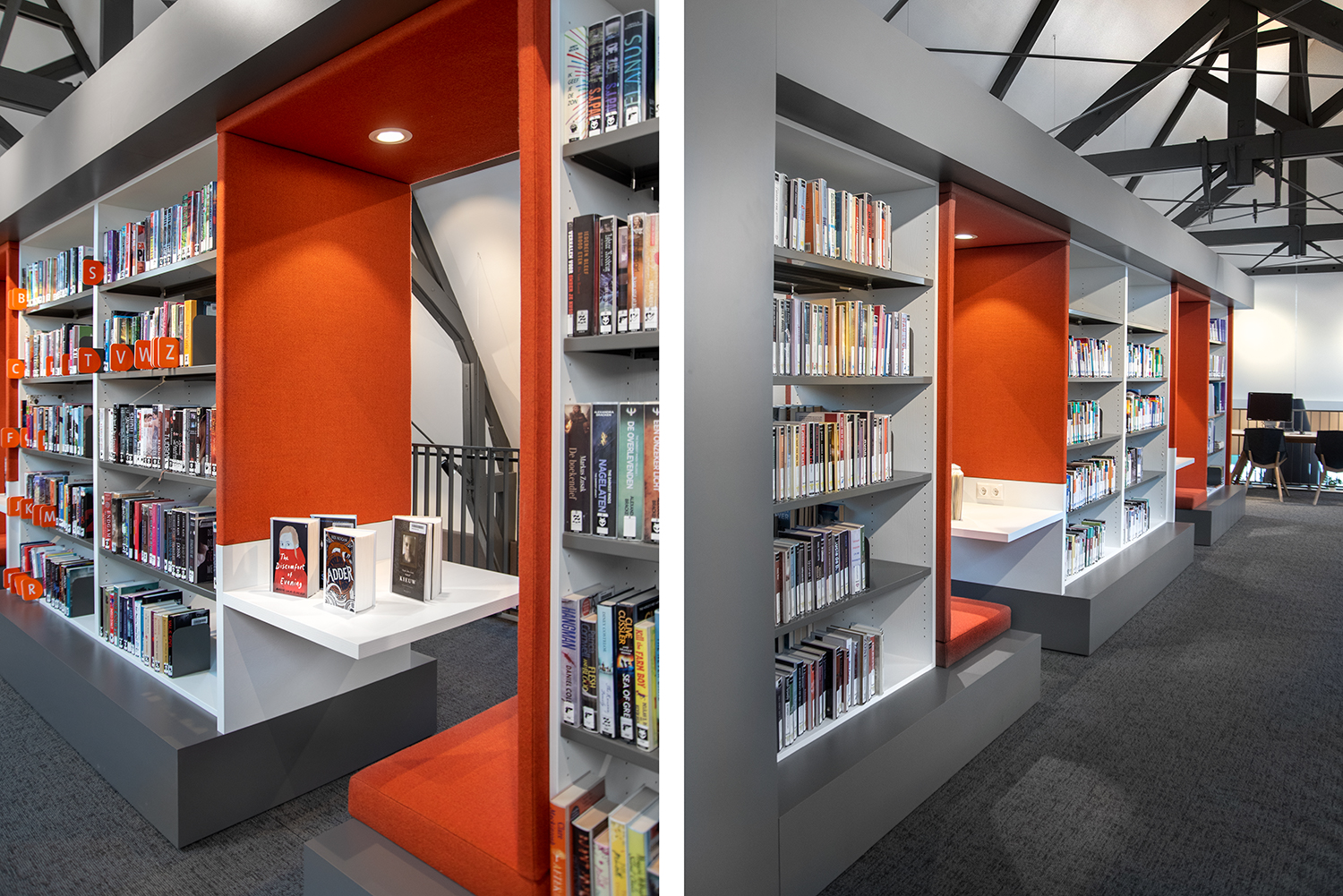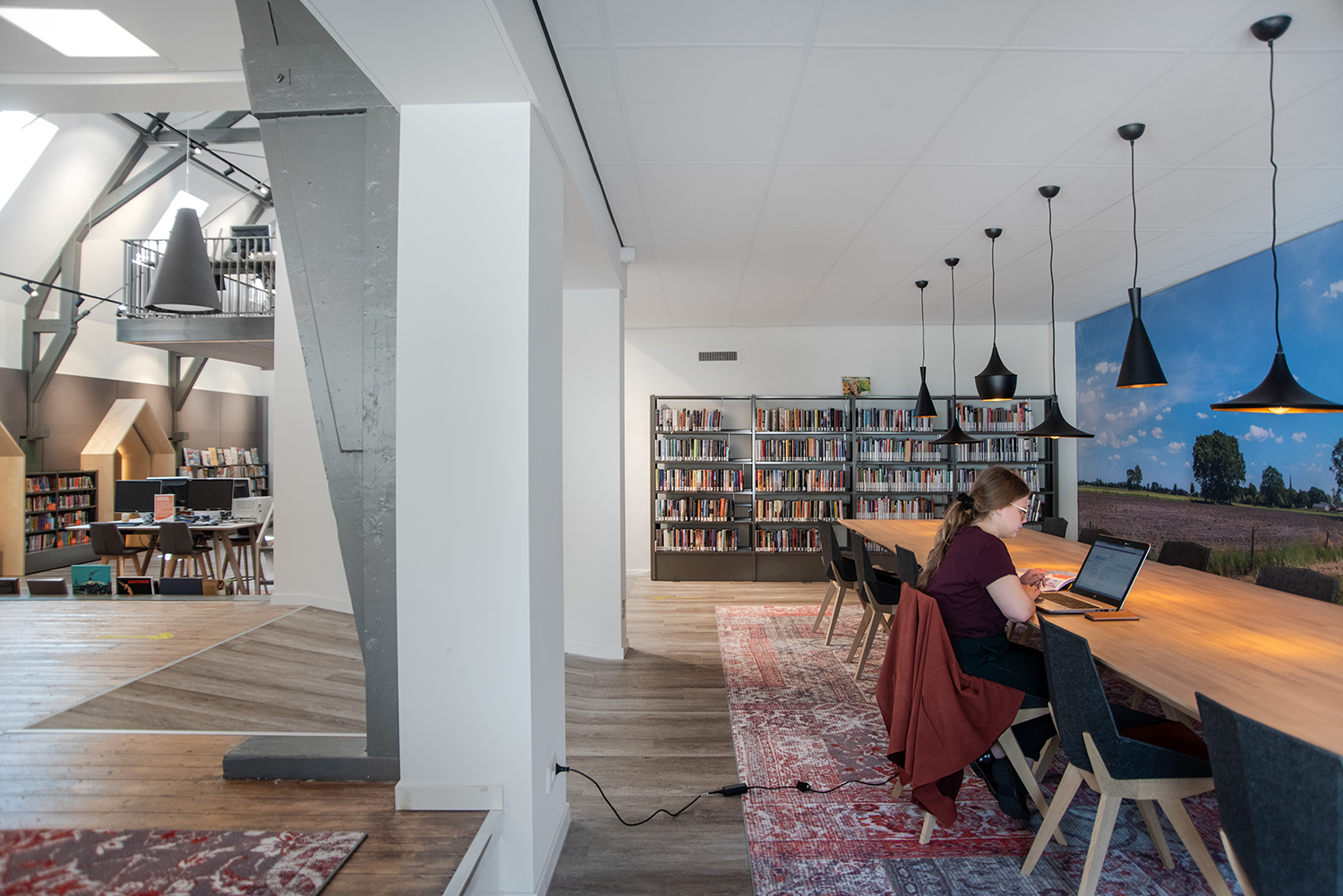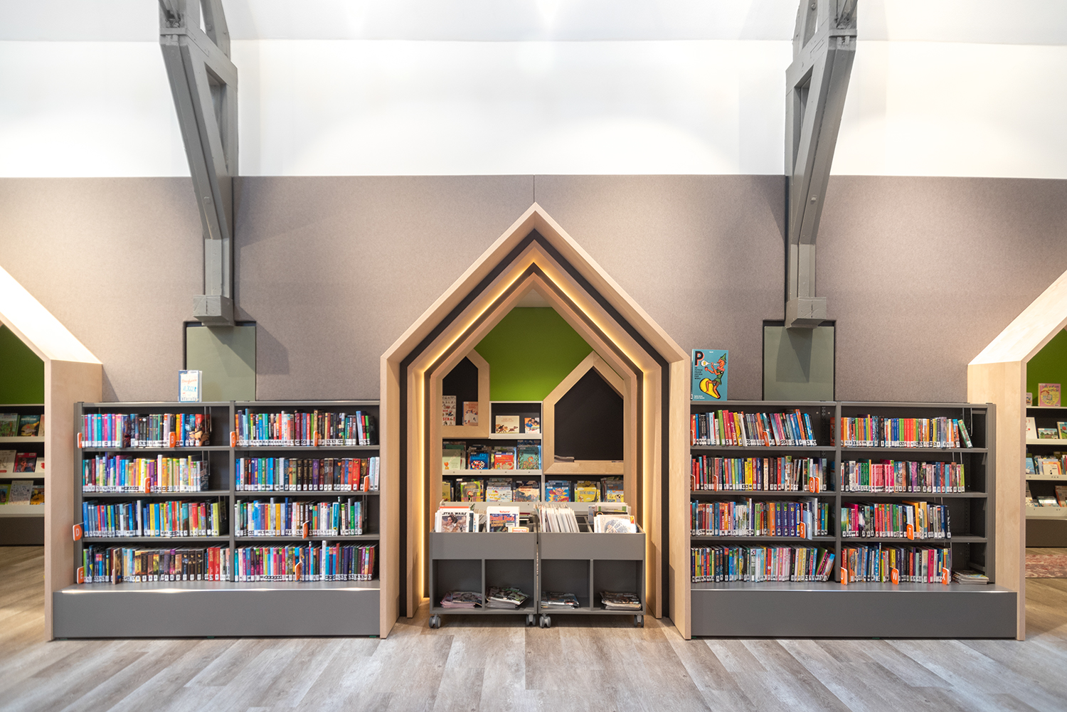 Het interieurontwerp, uitgewerkt door LA | Architecten Ingenieurs, van de bibliotheek voelt net aan als thuiskomen.