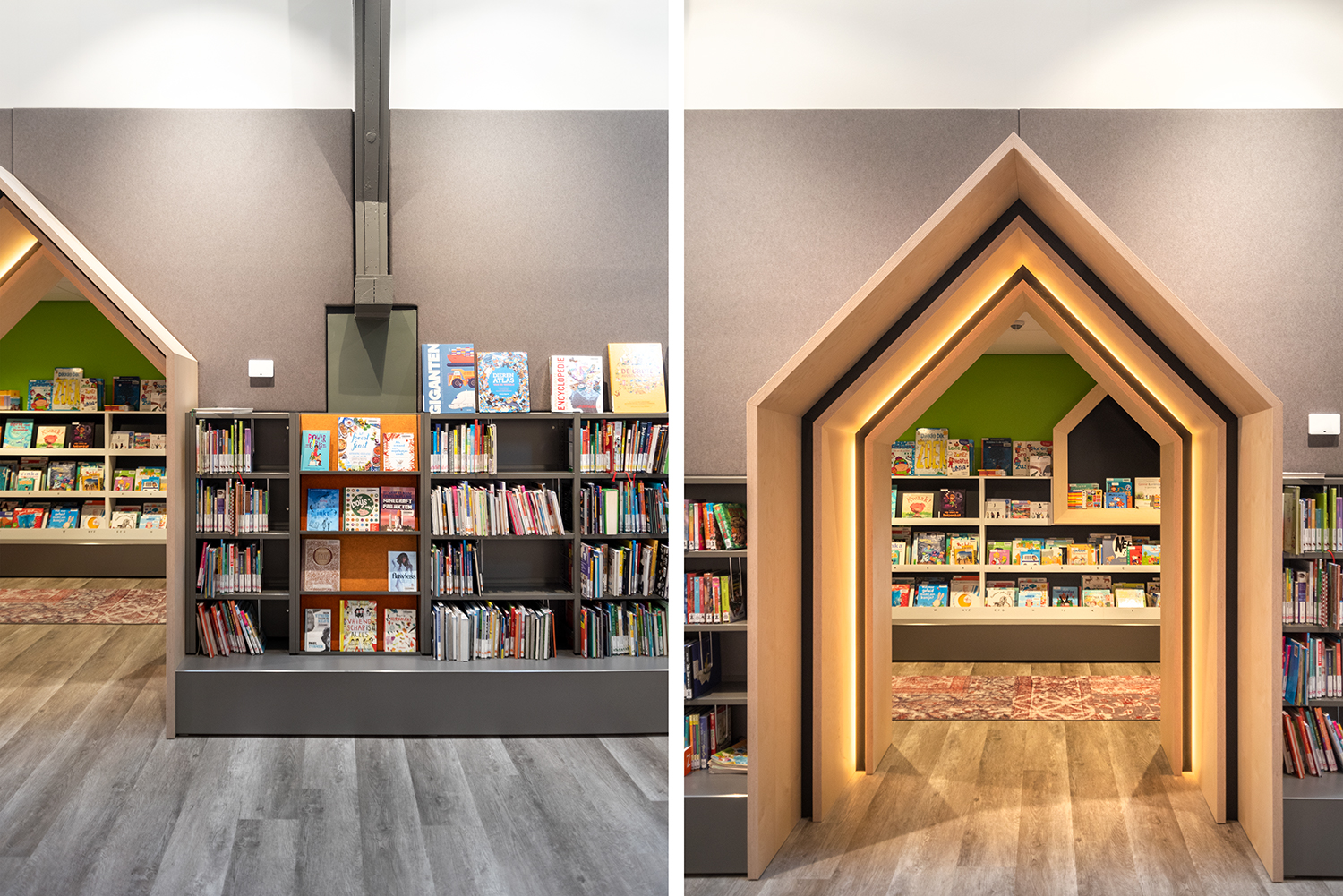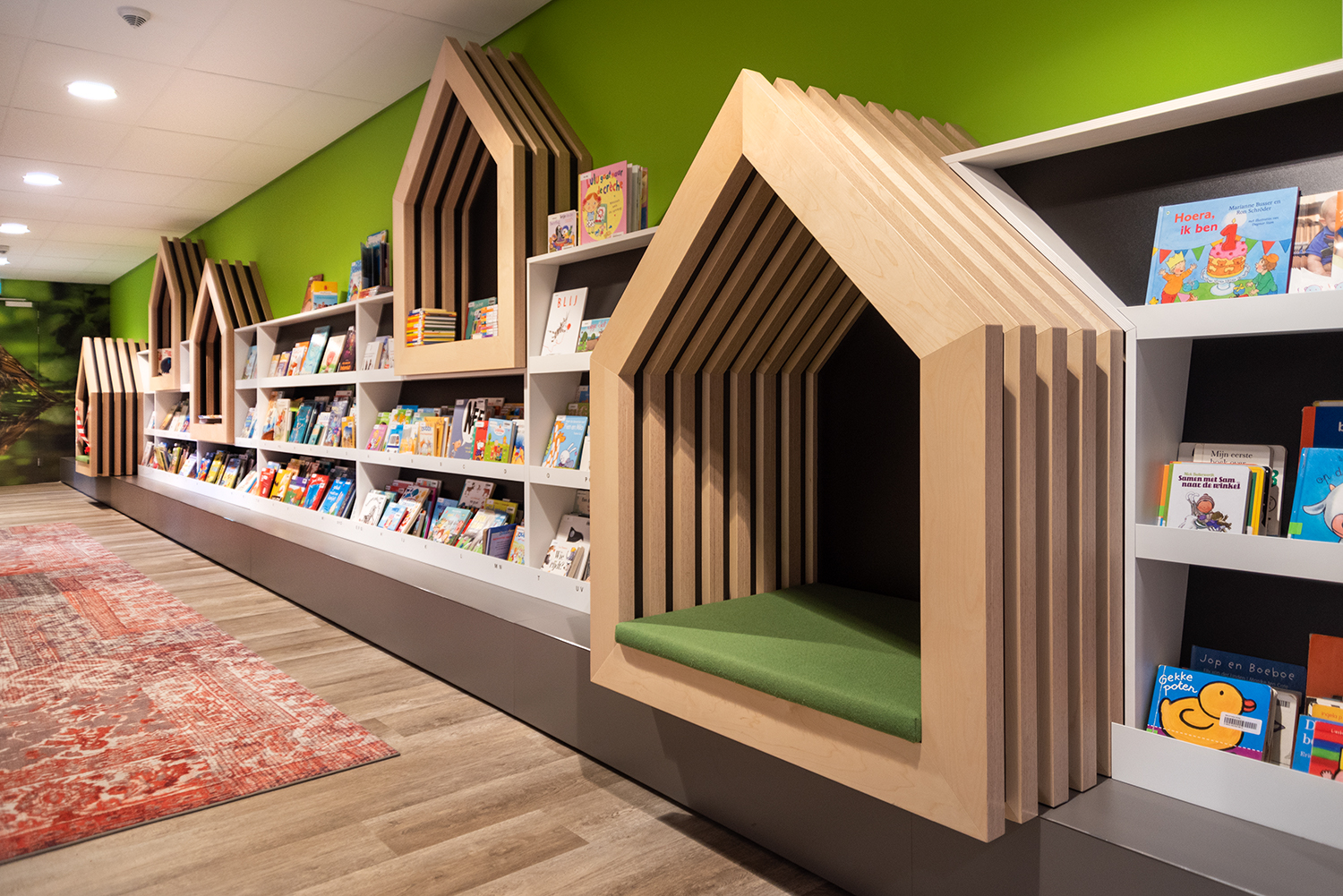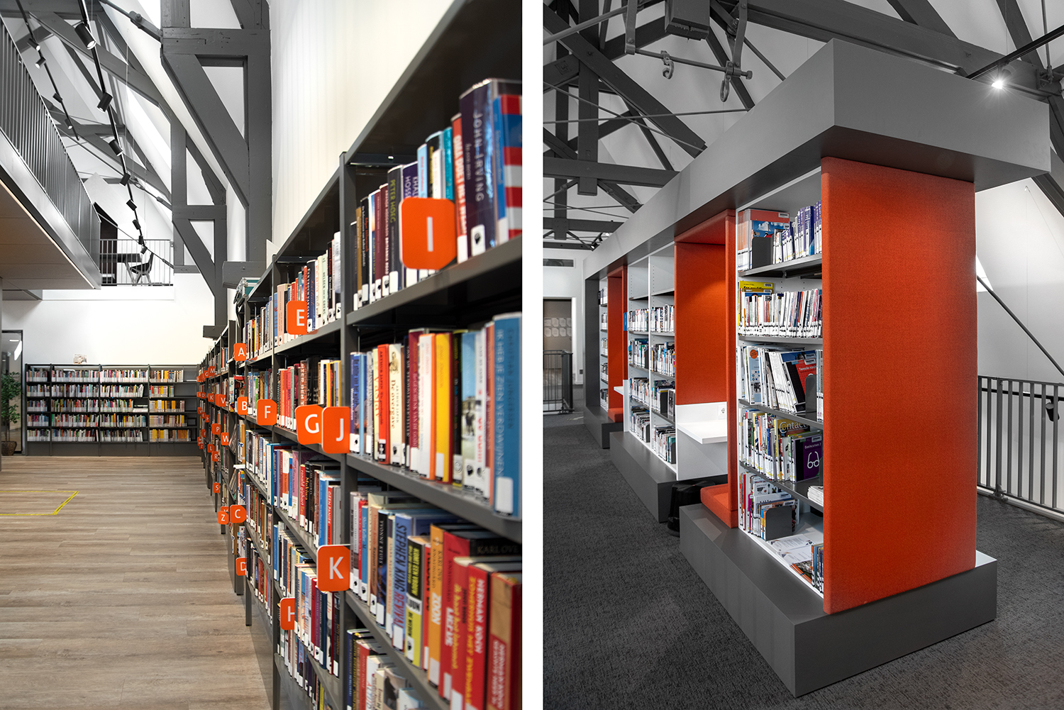 Het interieurontwerp, uitgewerkt door LA | Architecten Ingenieurs, van de bibliotheek voelt net aan als thuiskomen.