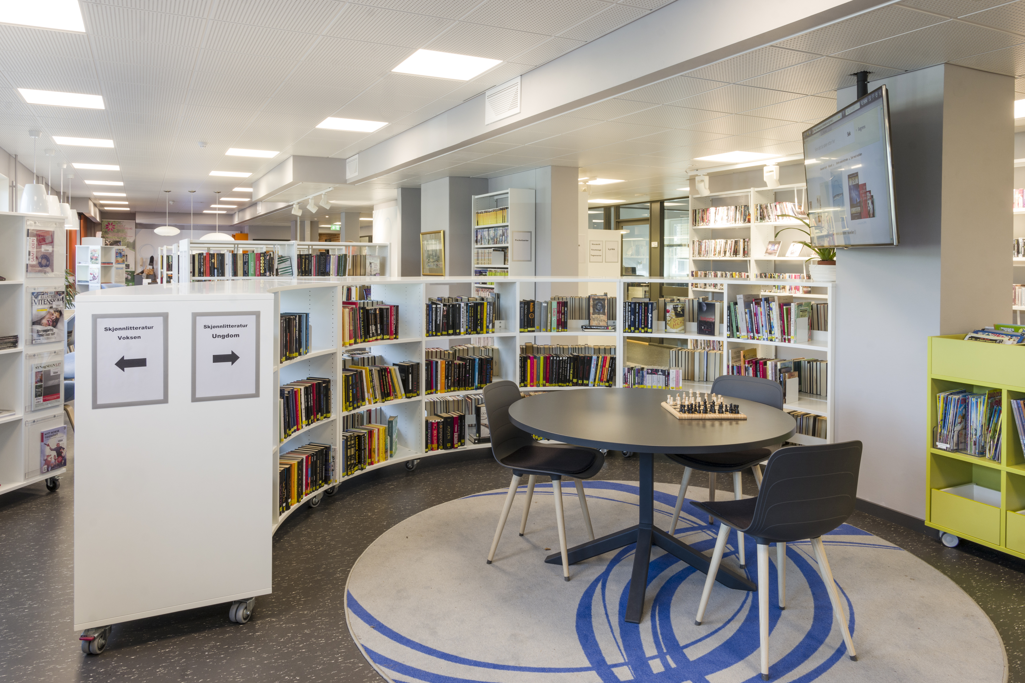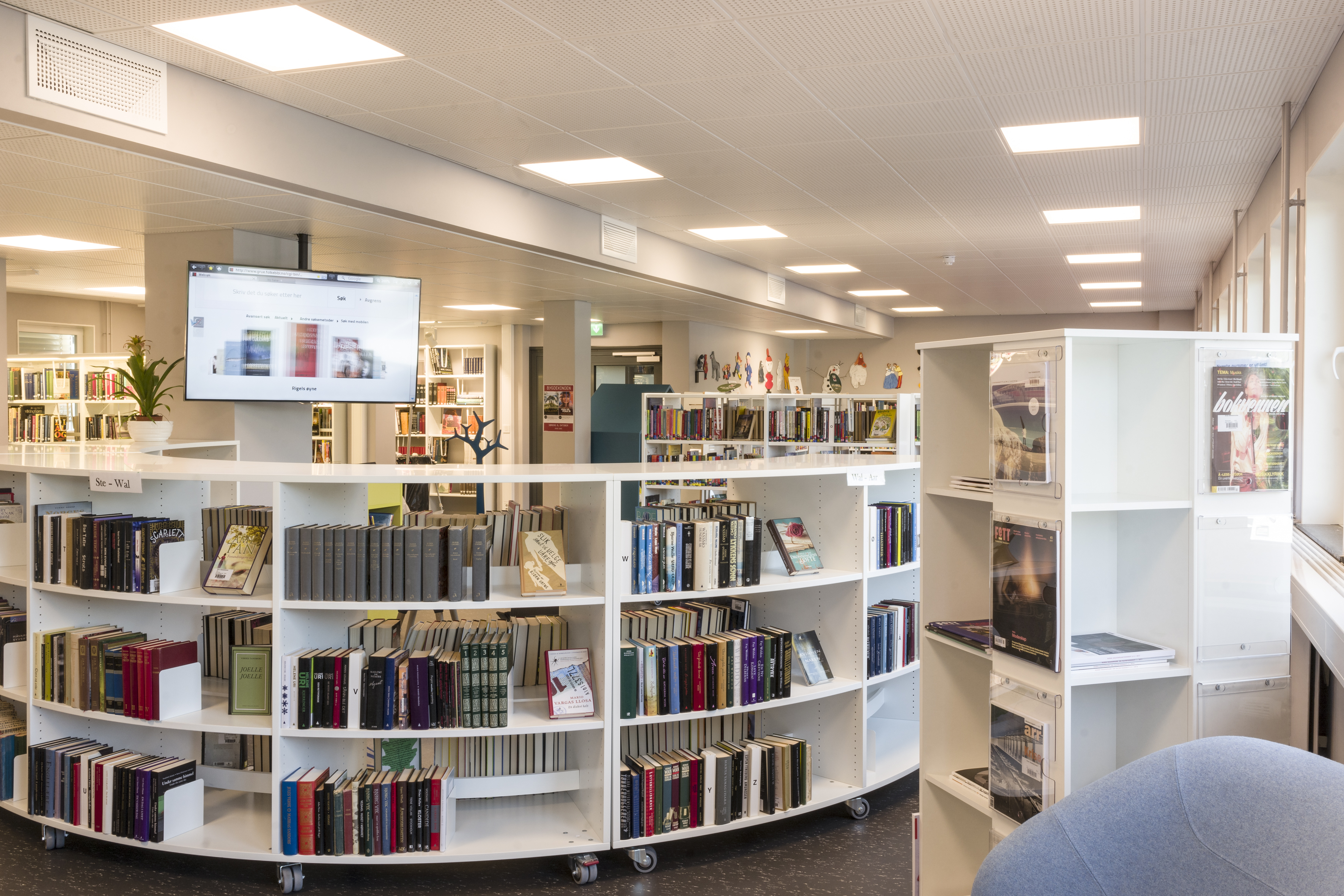 Producten die in de Openbare bibliotheek Grue, Noorwegen gebruikt worden