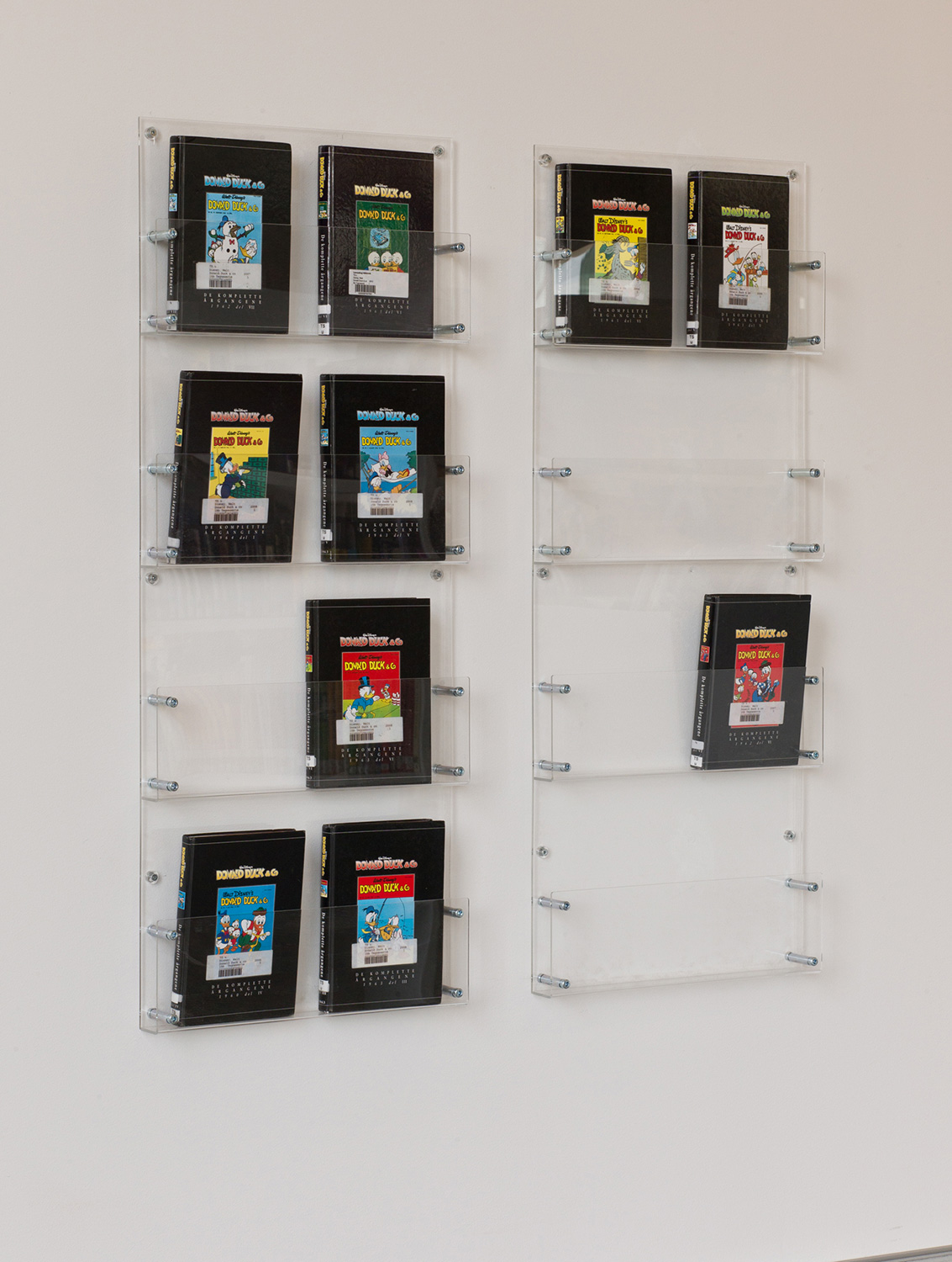 Bijkomend werd elk legbord enkele centimeters dieper geplaatst dan het onderliggende. Deze combinatie maakt het – samen met de LED verlichting – makkelijker om de collectie te ontdekken. Het visuele aspect is daarbij opmerkelijk geslaagd.