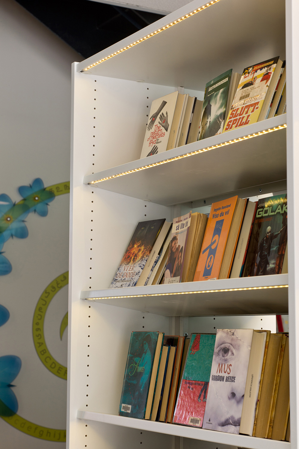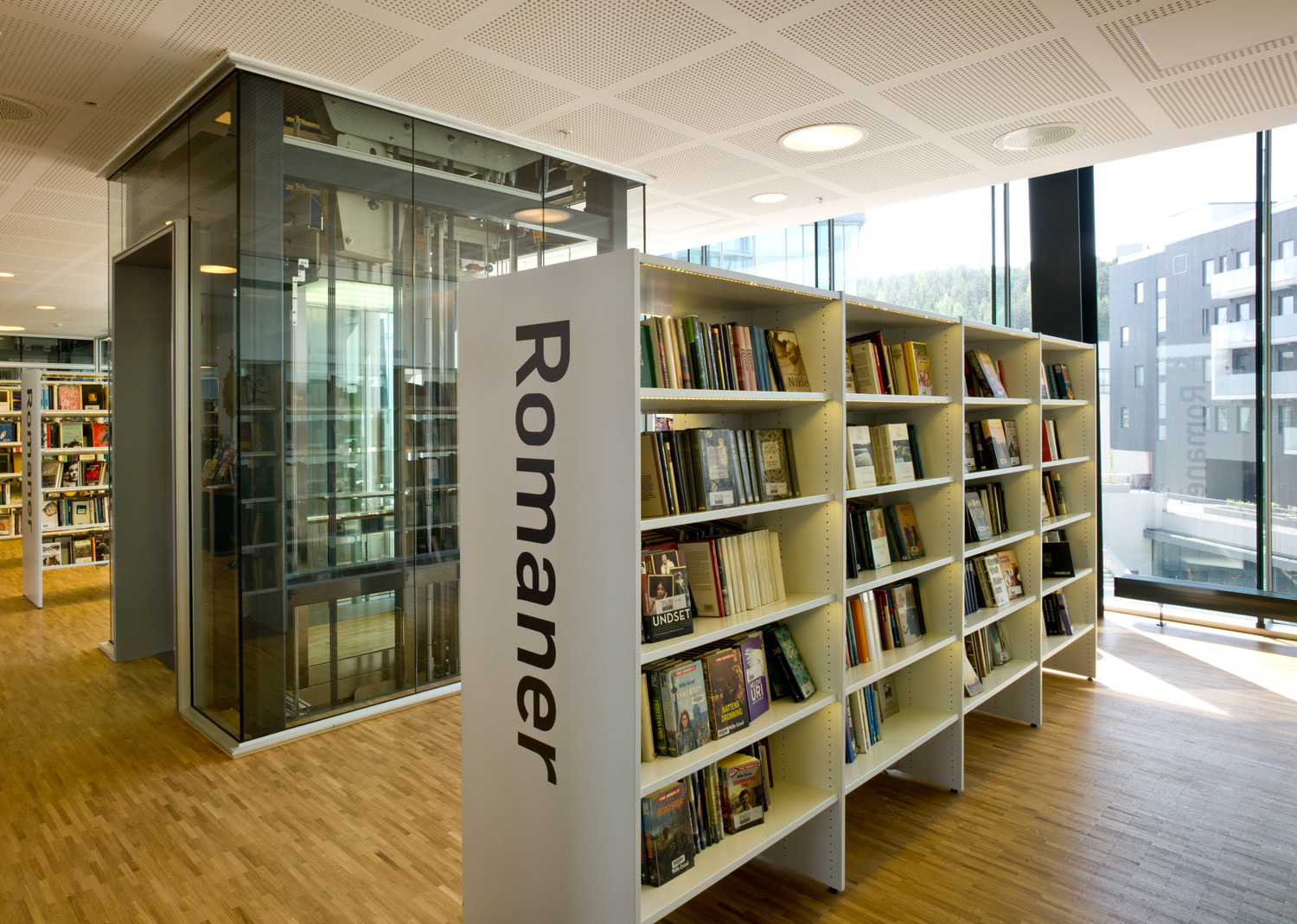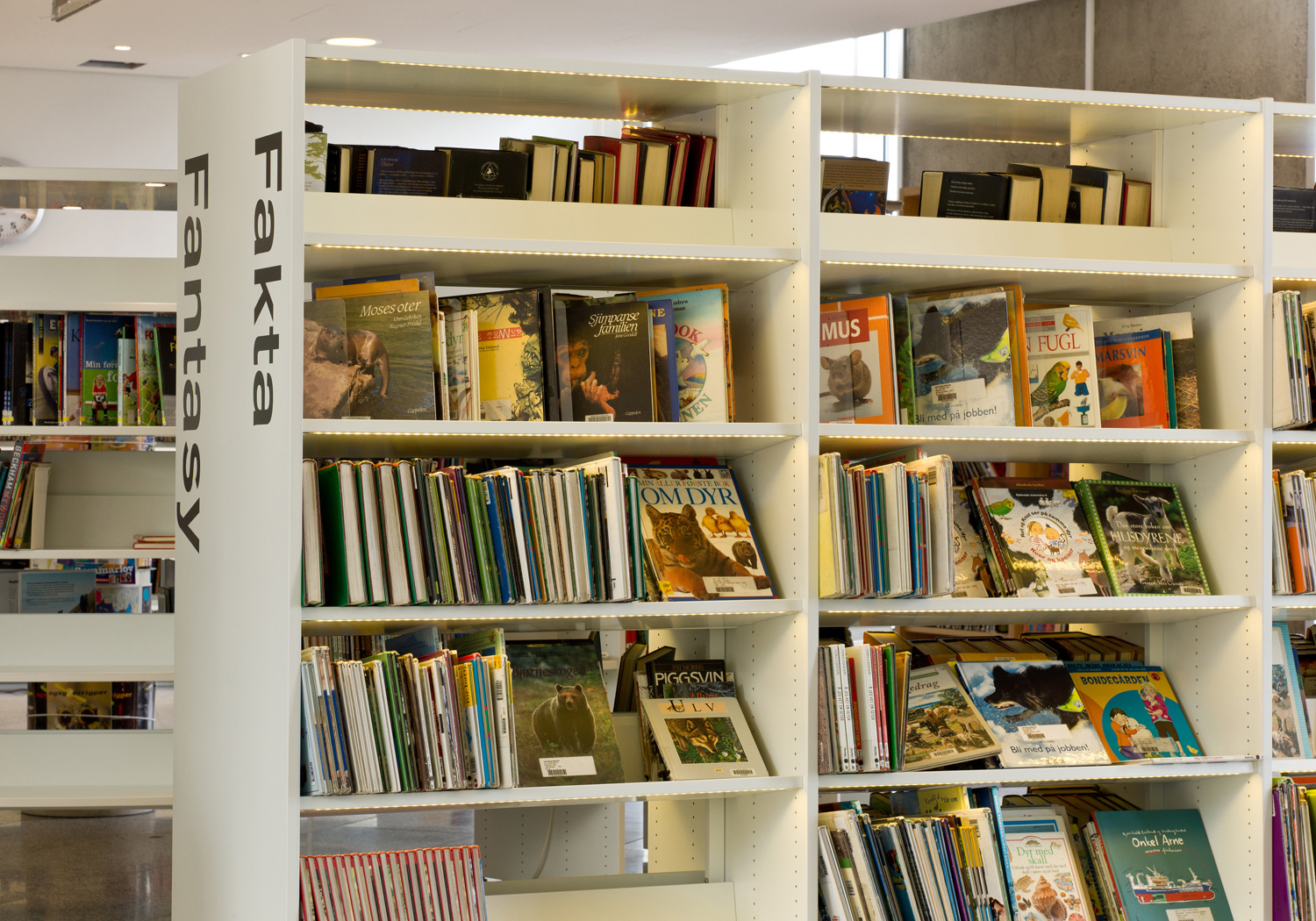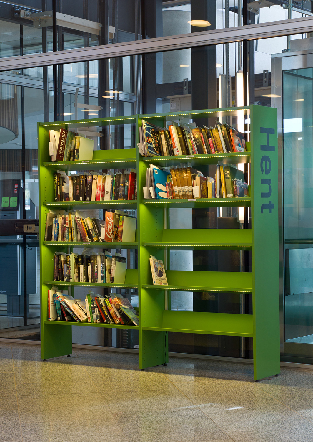 De architecten werden uitgedaagd door directeur Berit Bjørkild om haar gedroomde bibliotheekrek te ontwerpen – met legborden die de boeken kunnen ‘verkopen’, net als in boekenwinkels. Op maat gemaakte rekken en verlichting en een uniek interieur maken frontale presentatie van het boek mogelijk. De legborden zijn schuin achteroverhellend geplaatst zodat de boeken frontaal kunnen worden gepresenteerd zonder het risisco dat ze van het rek te vallen.