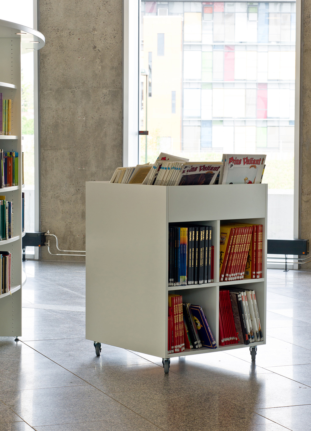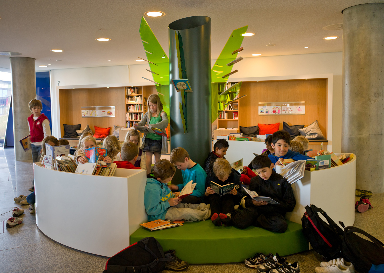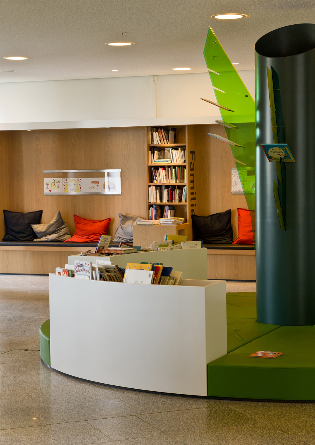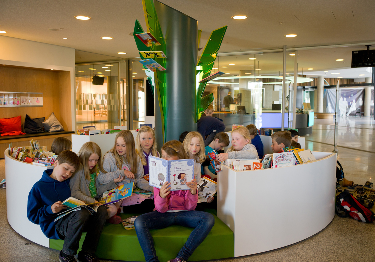 De architecten werden uitgedaagd door directeur Berit Bjørkild om haar gedroomde bibliotheekrek te ontwerpen – met legborden die de boeken kunnen ‘verkopen’, net als in boekenwinkels. Op maat gemaakte rekken en verlichting en een uniek interieur maken frontale presentatie van het boek mogelijk. De legborden zijn schuin achteroverhellend geplaatst zodat de boeken frontaal kunnen worden gepresenteerd zonder het risisco dat ze van het rek te vallen.