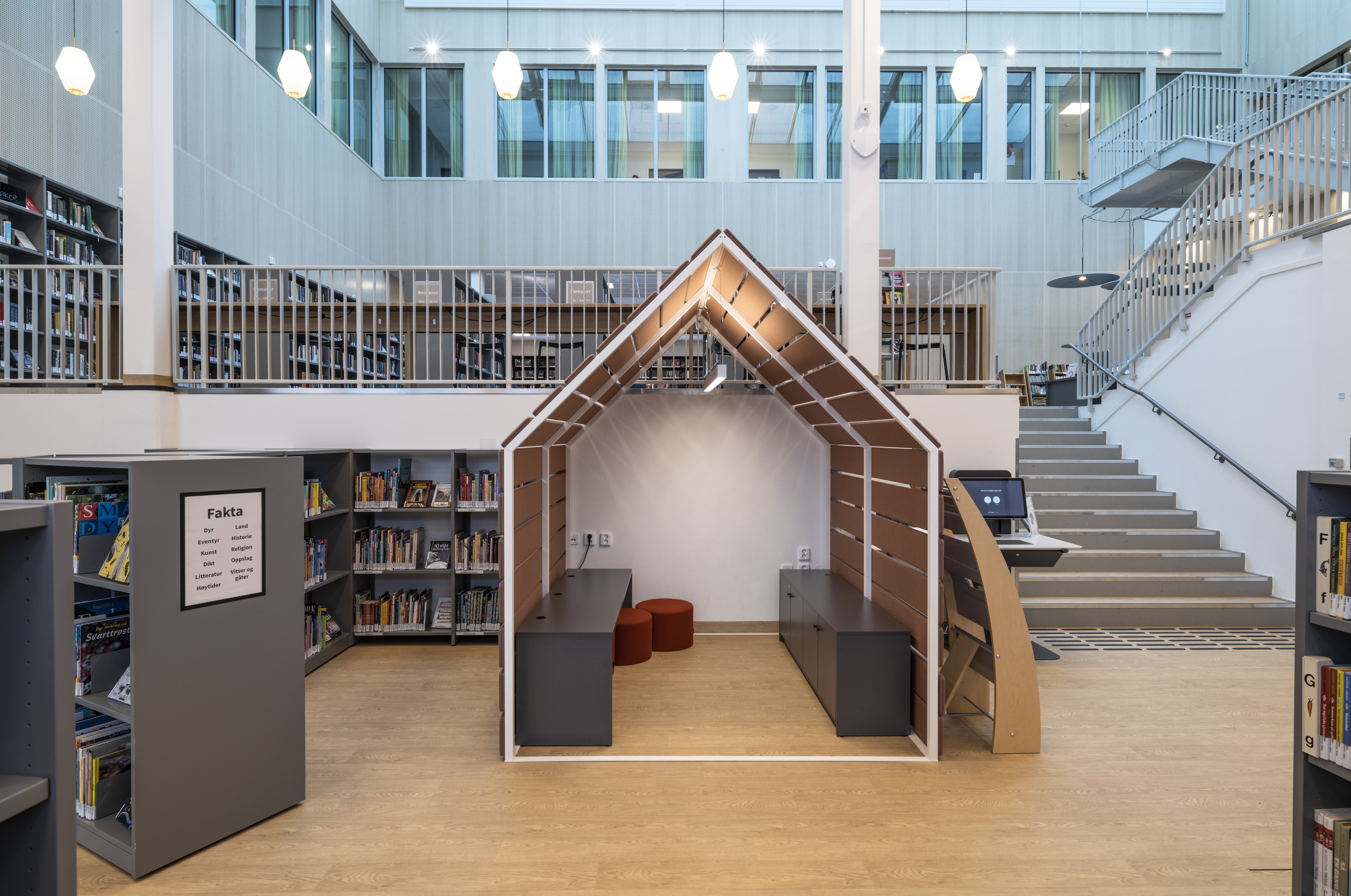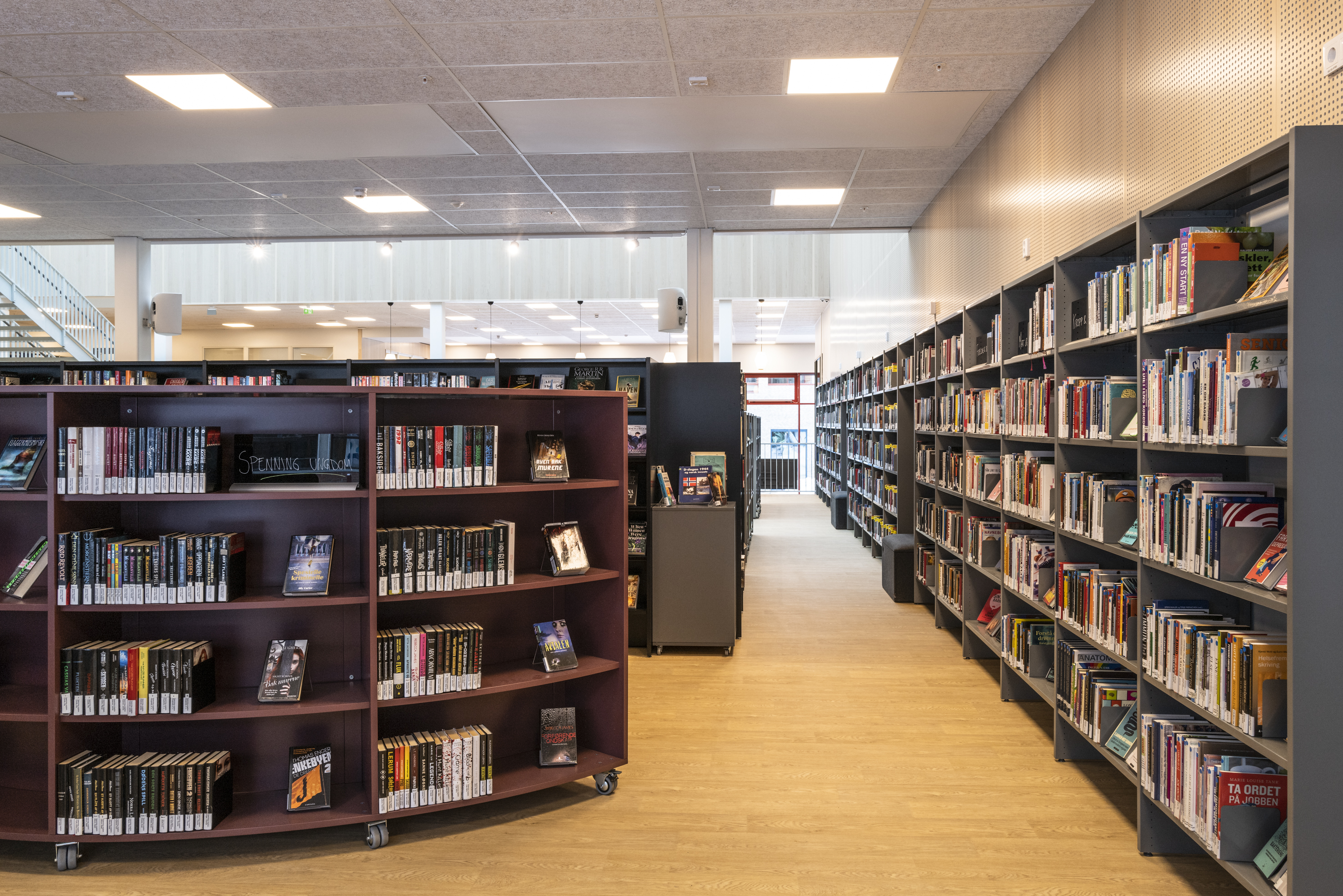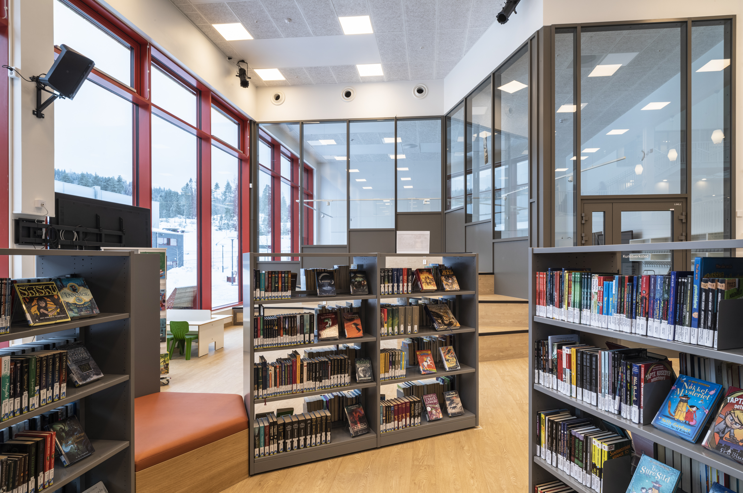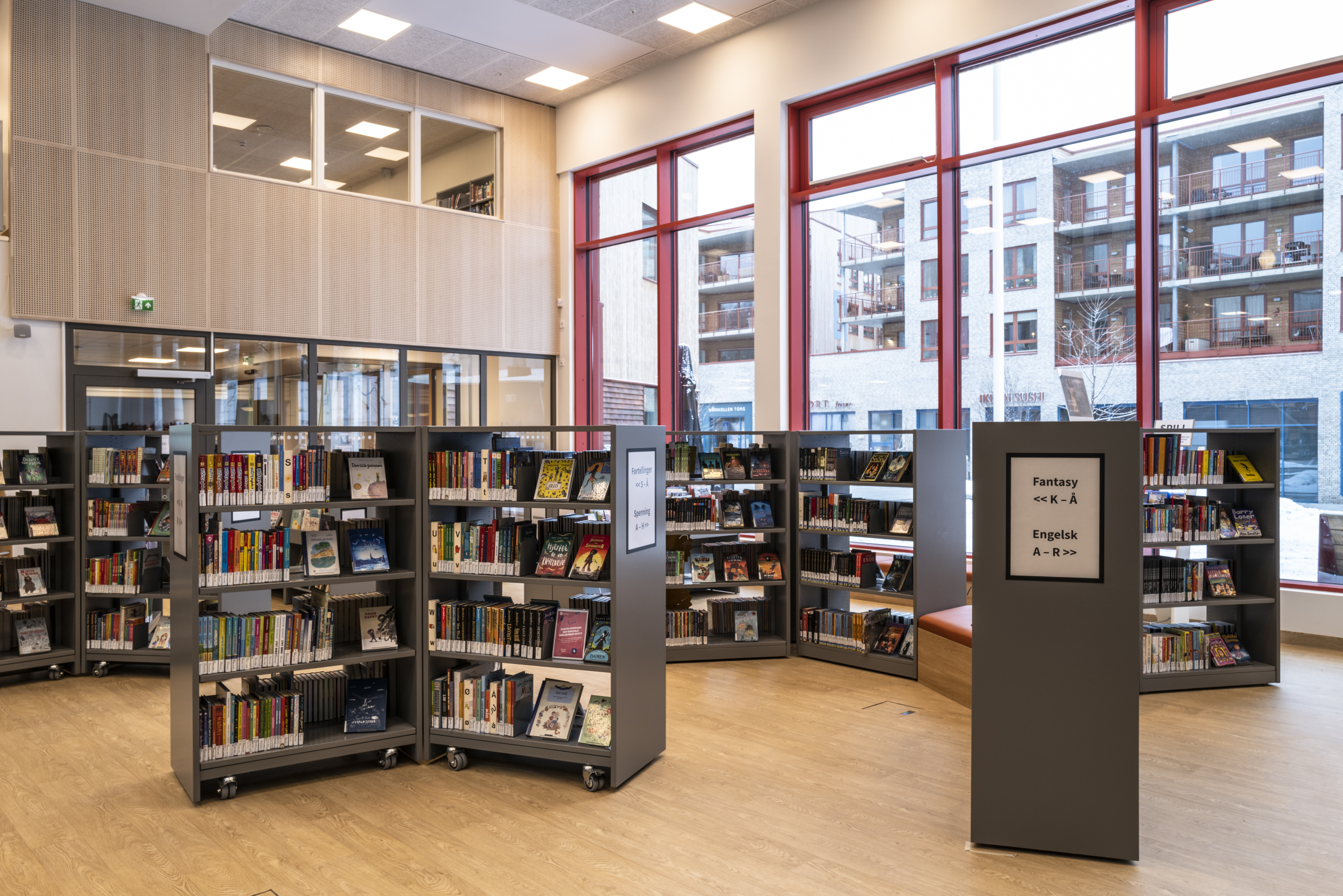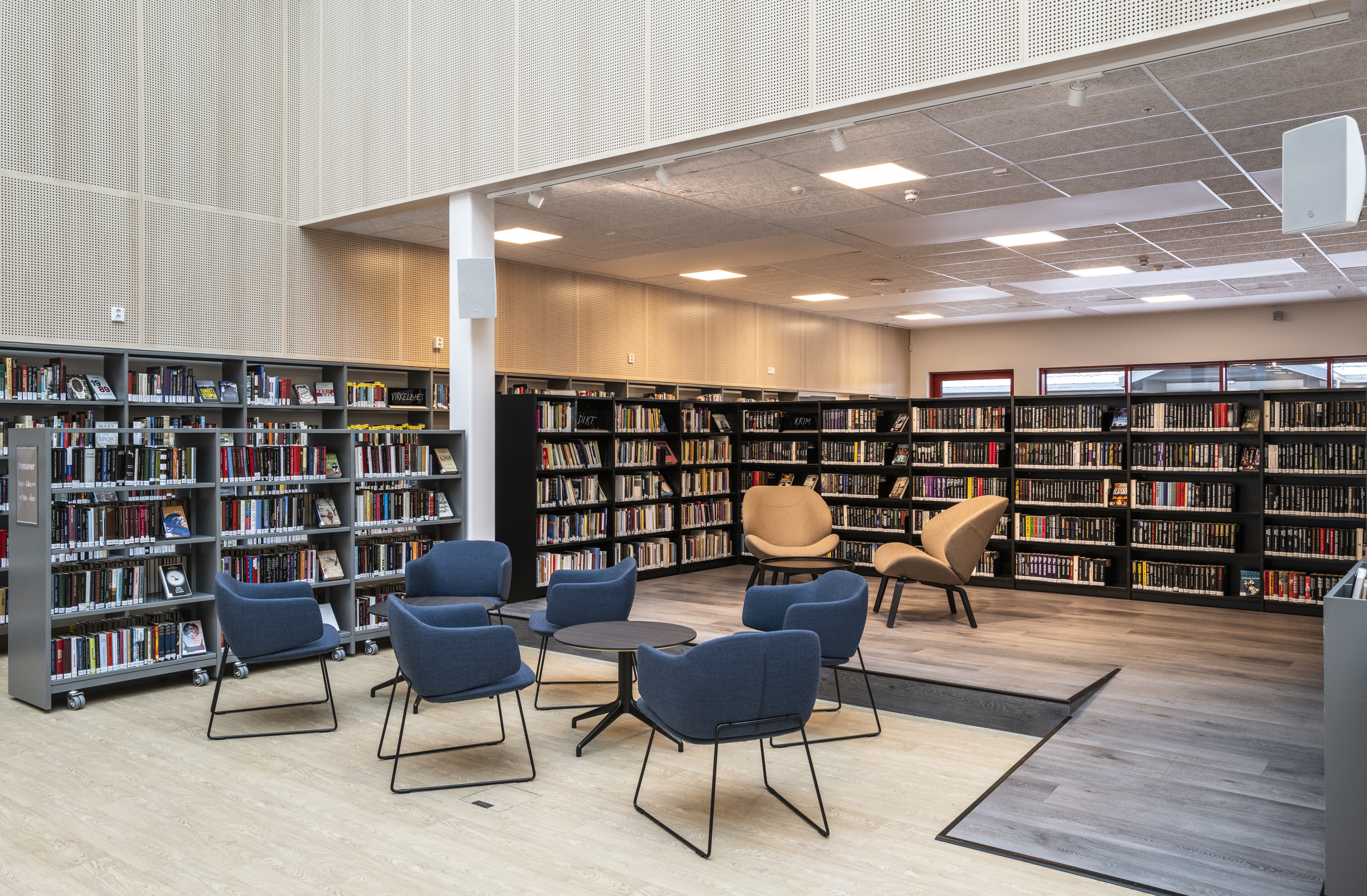 Het Noorse BS Eurobib mocht onder meer de rekkensystemen, de balies, het zitmeubilair en de tafels leveren voor de nieuwe bibliotheek.