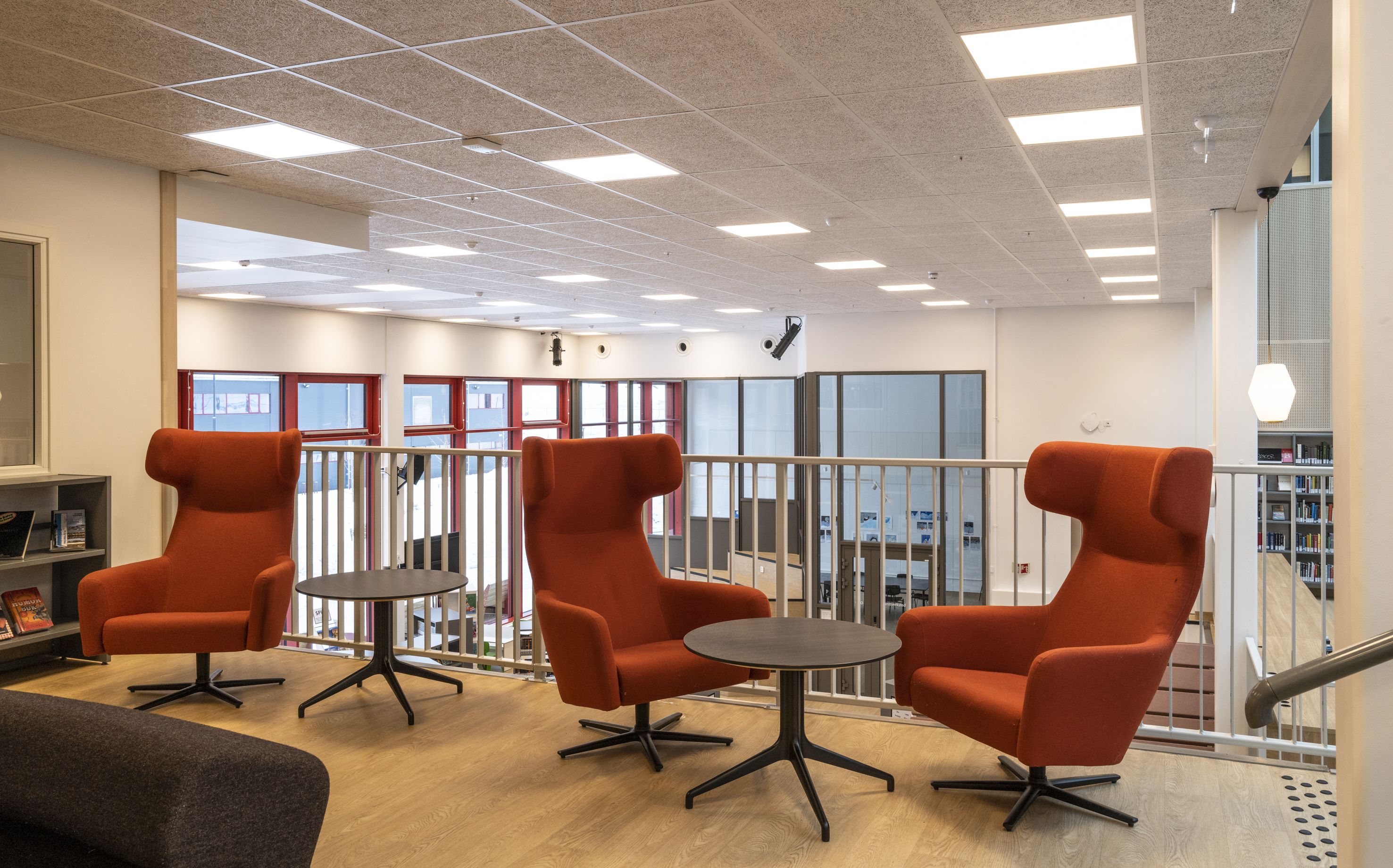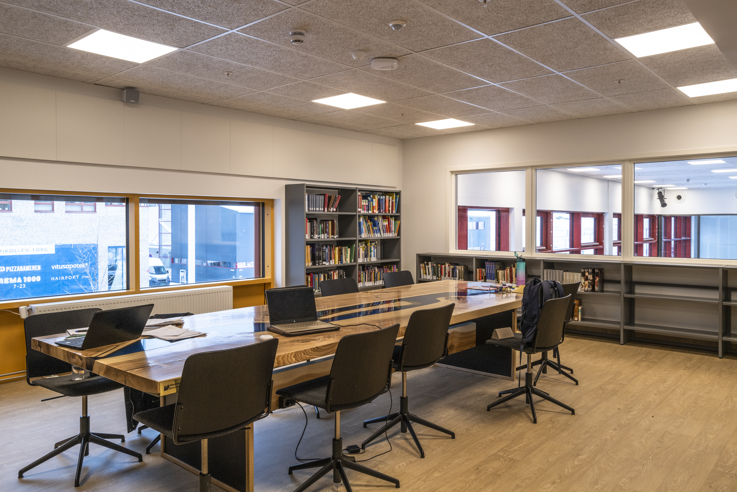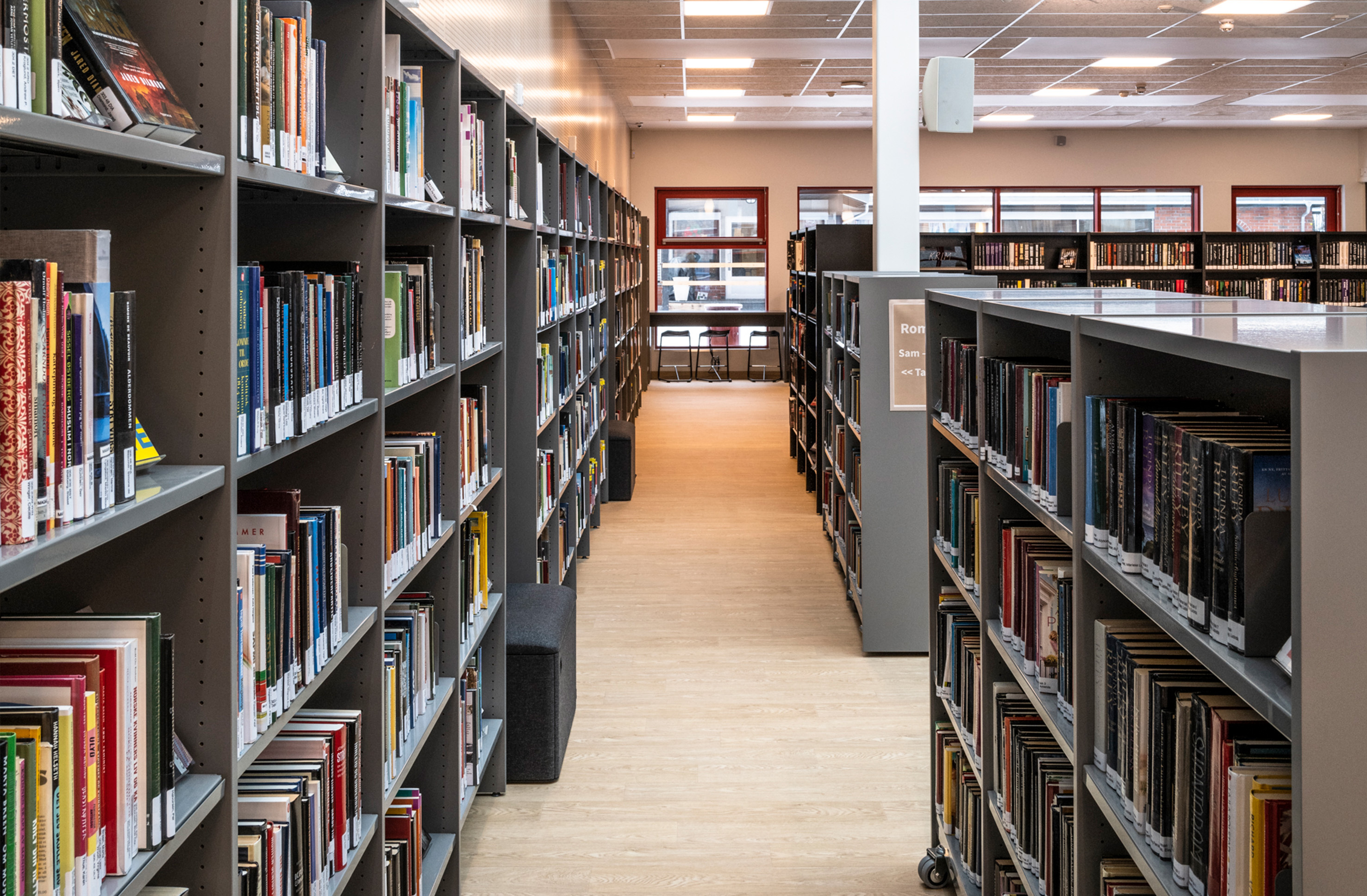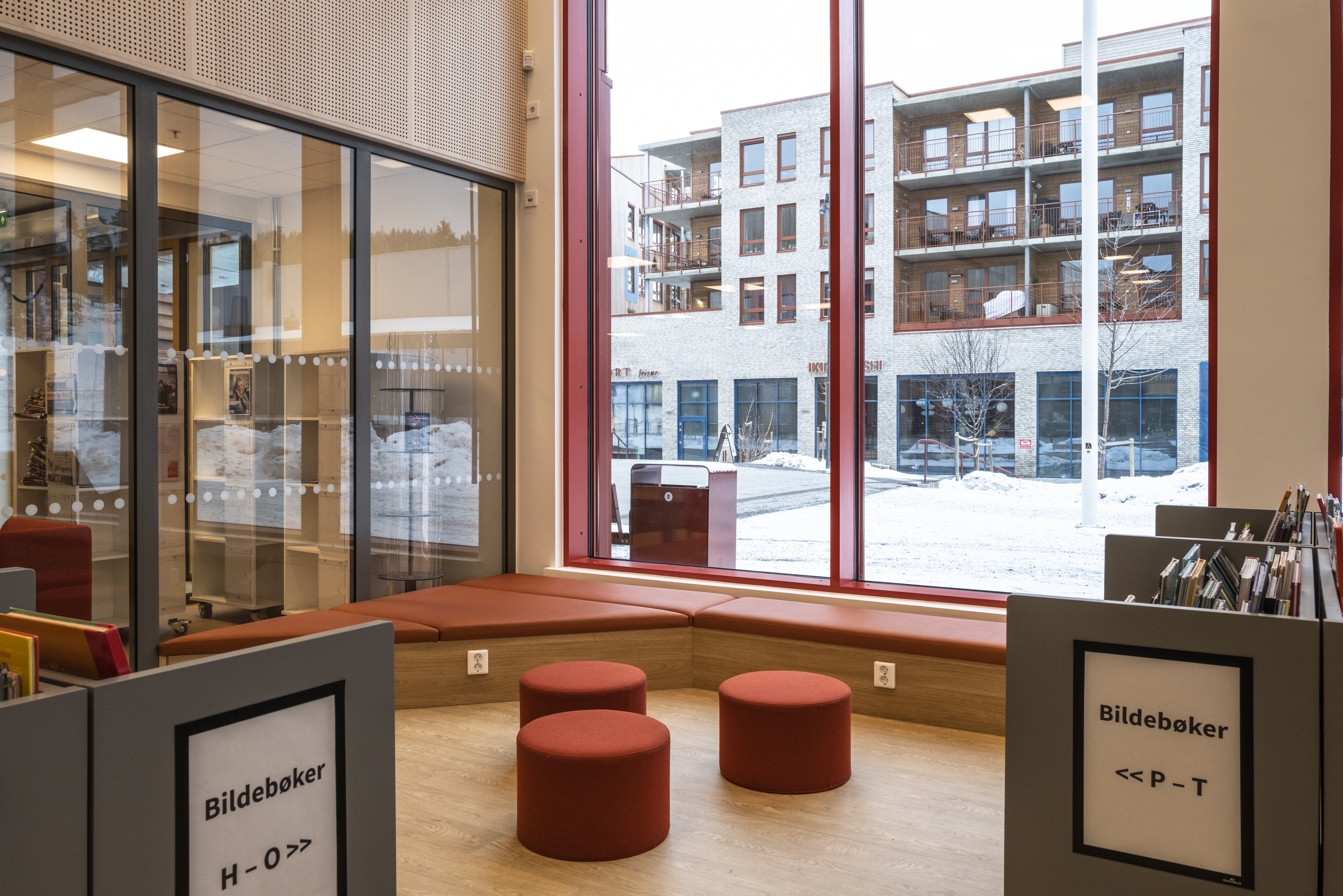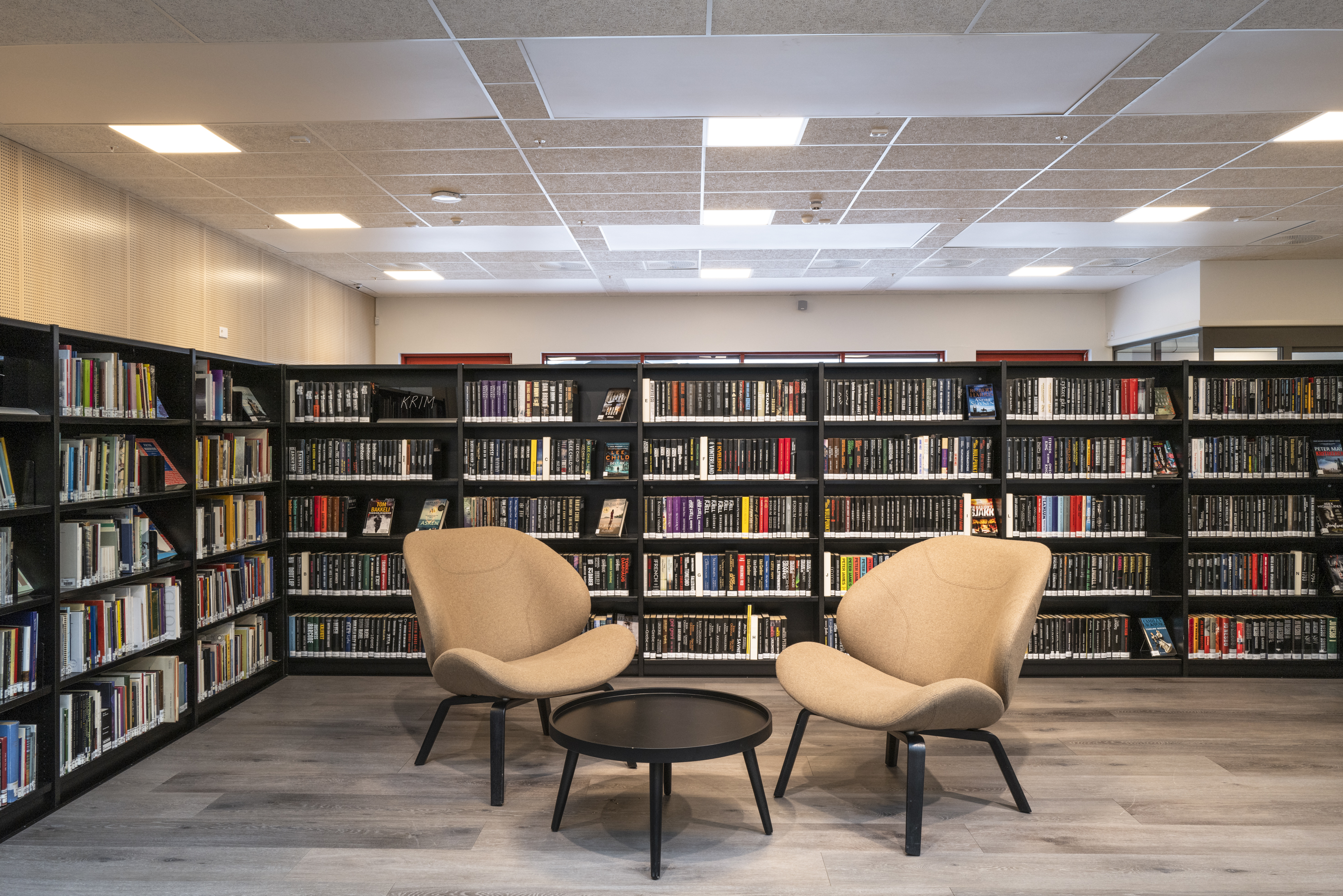 Het Noorse BS Eurobib mocht onder meer de rekkensystemen, de balies, het zitmeubilair en de tafels leveren voor de nieuwe bibliotheek.