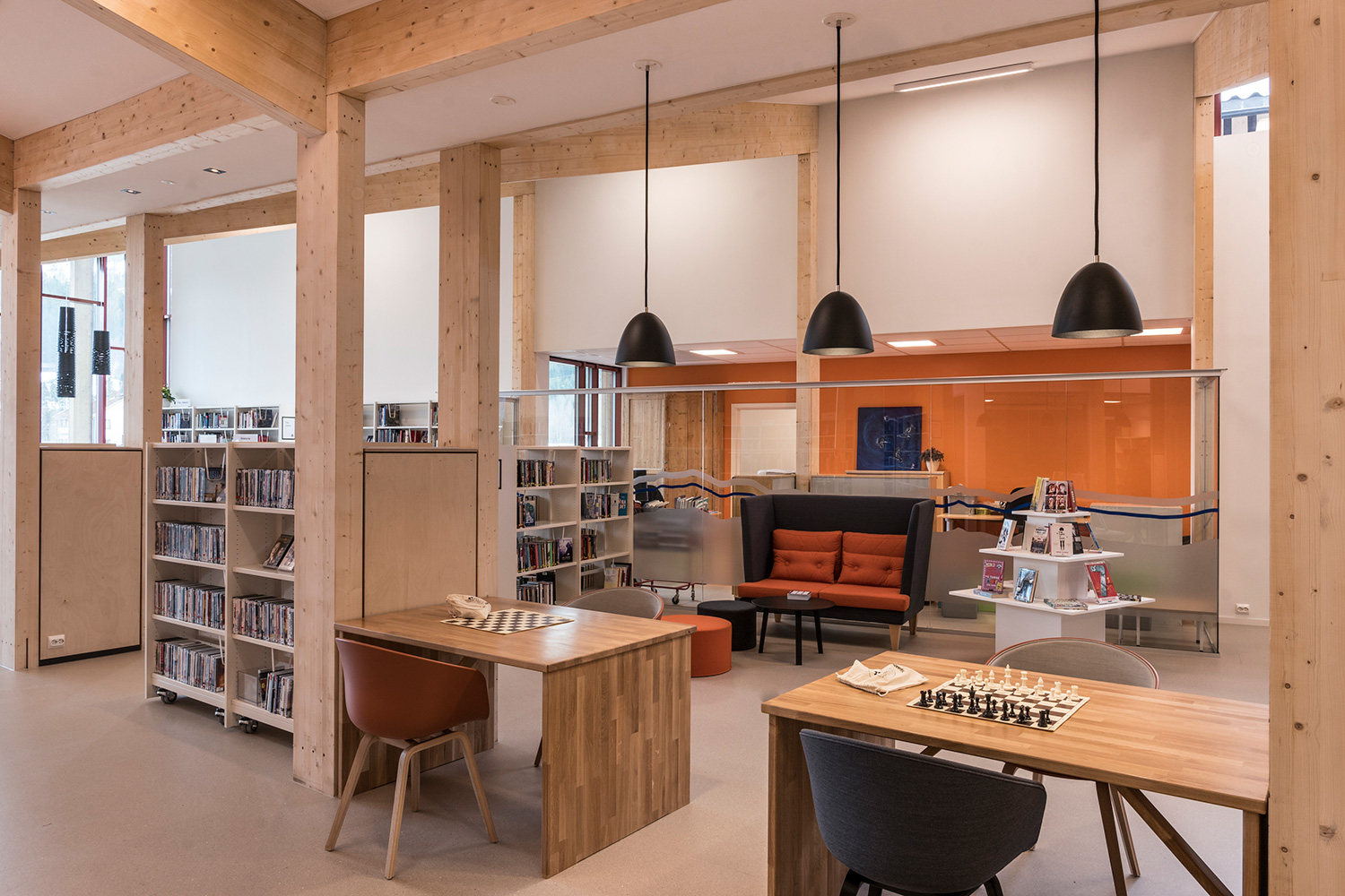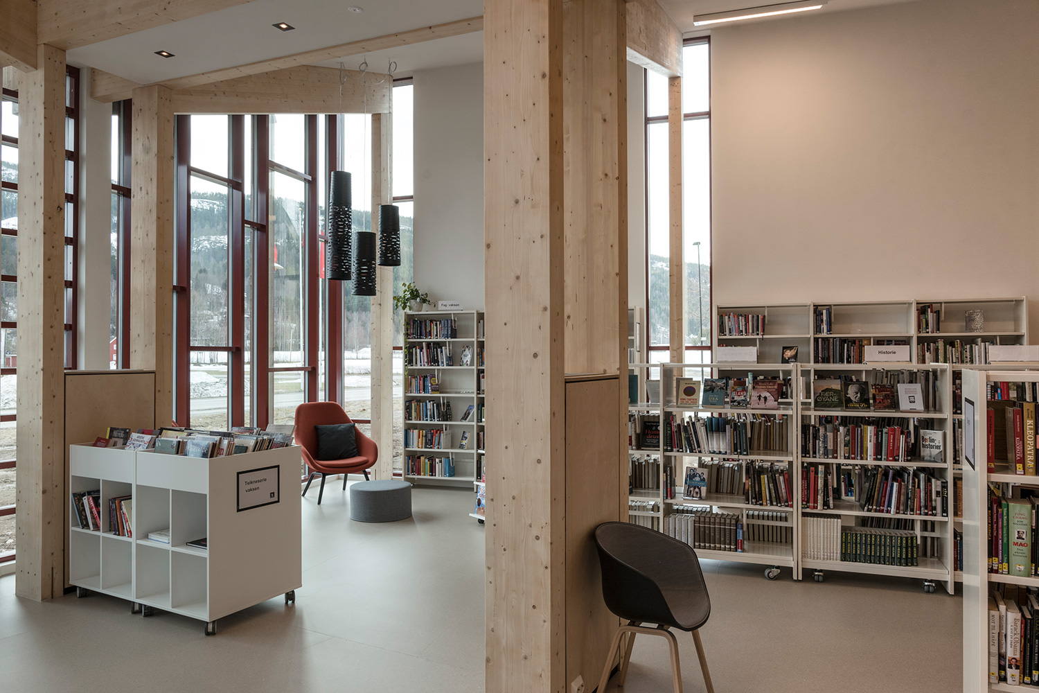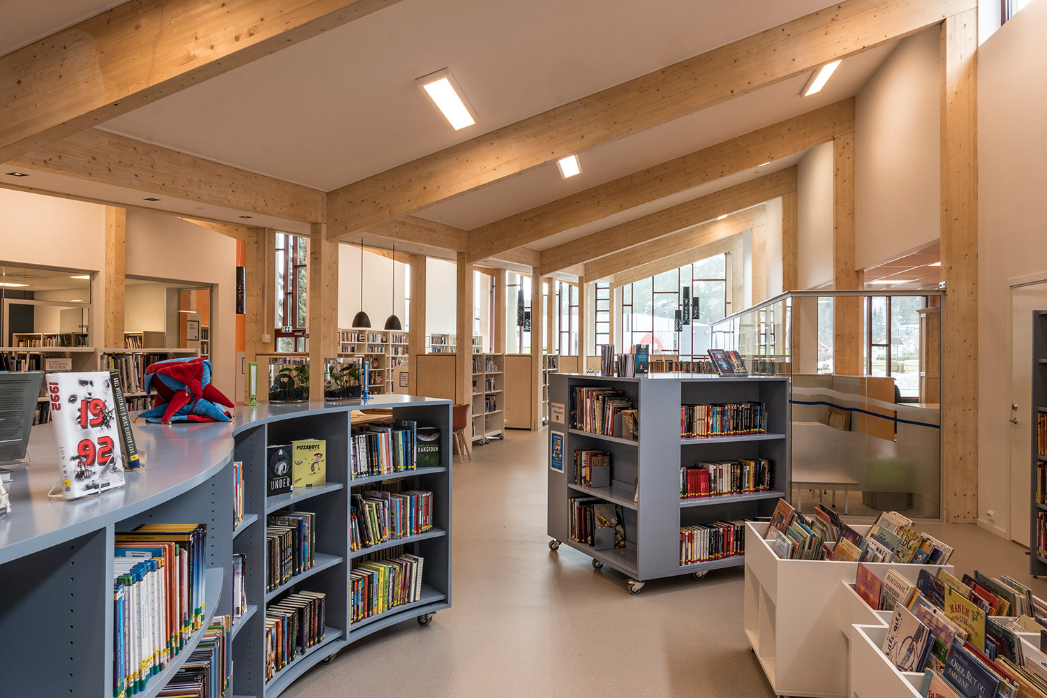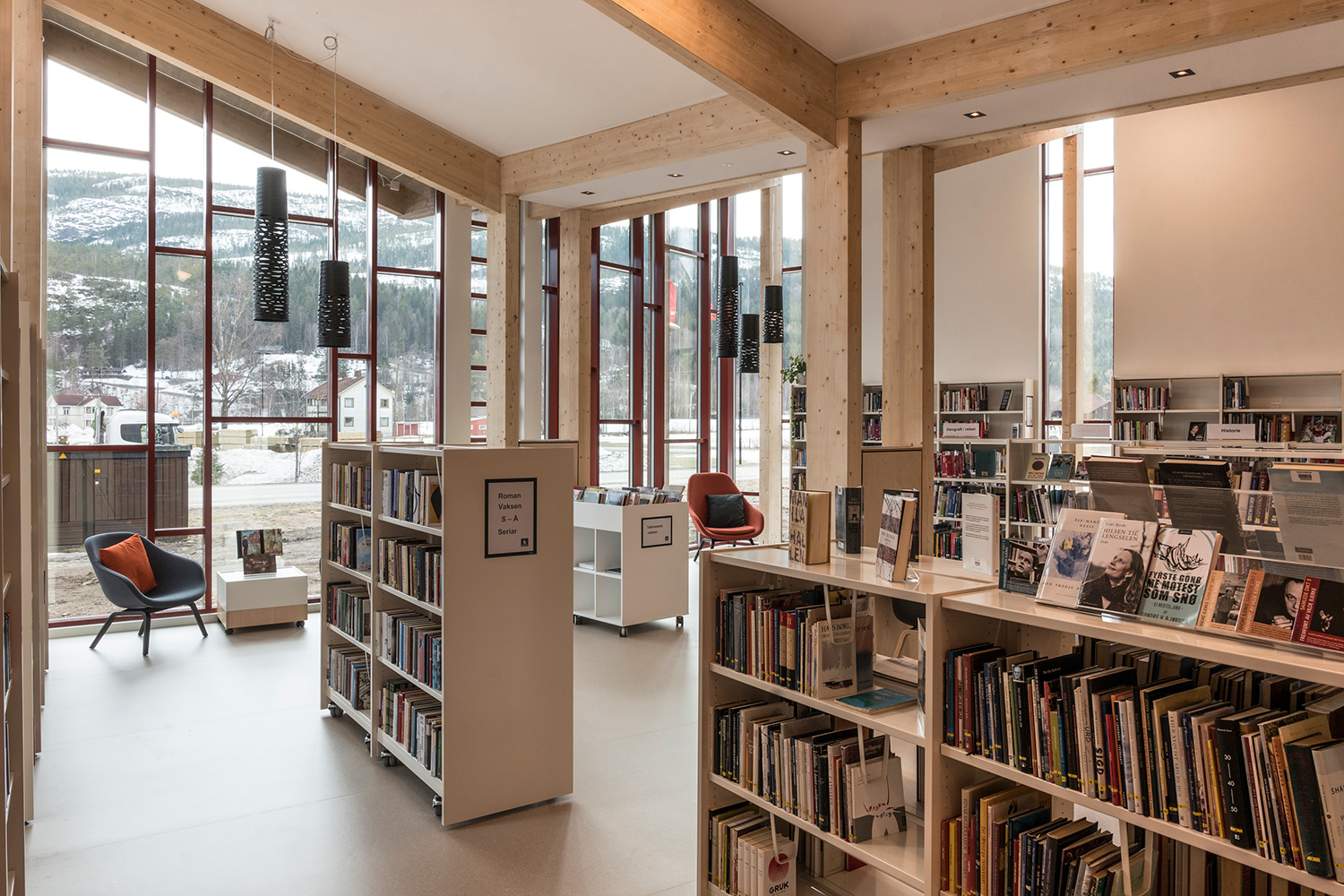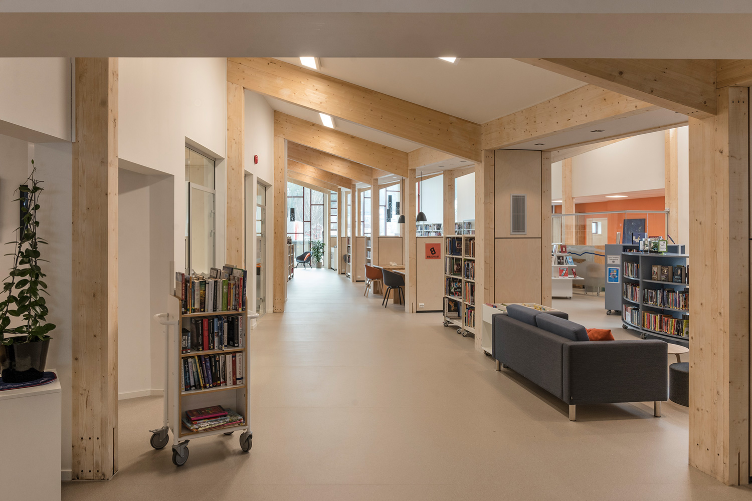 Producten die in de Openbare bibliotheek Seljord, Noorwegen gebruikt worden
